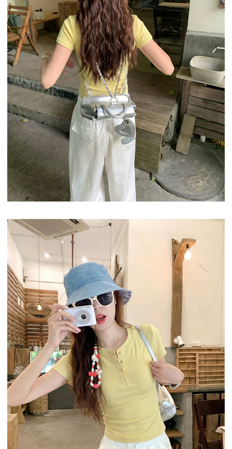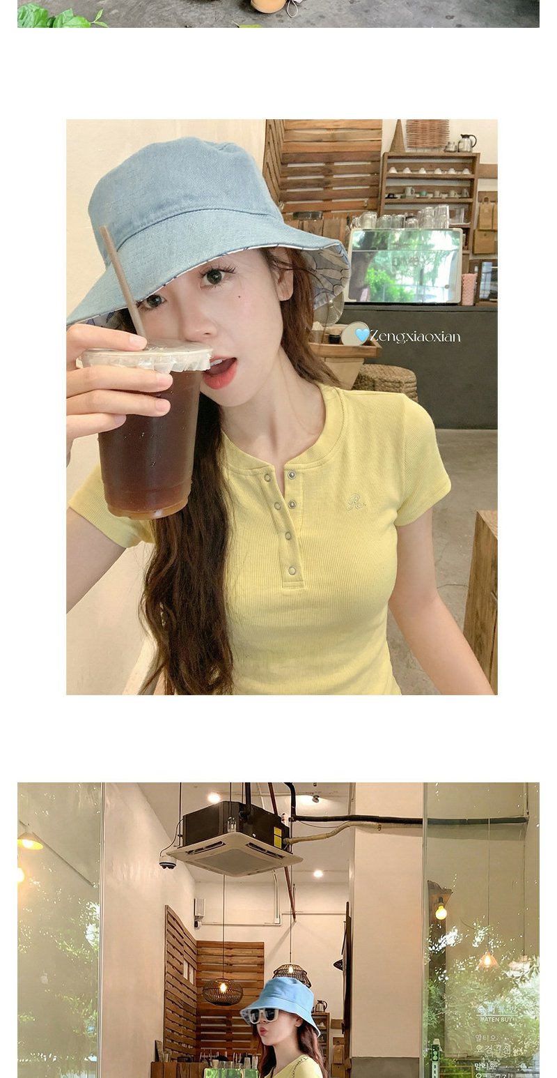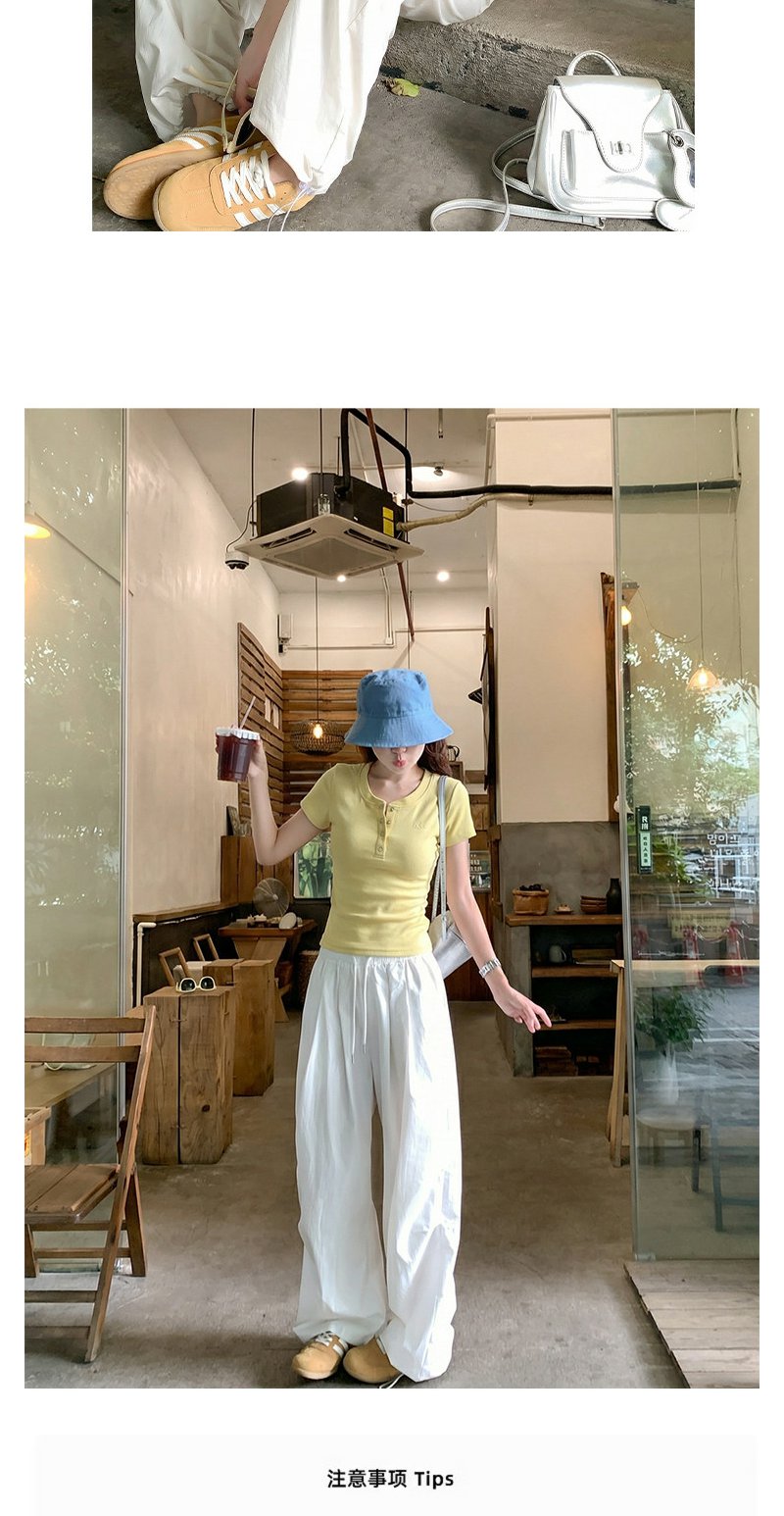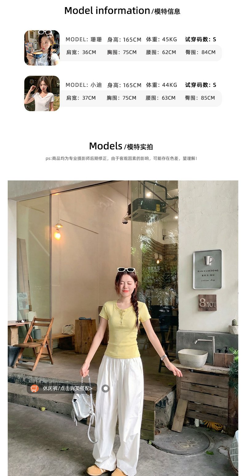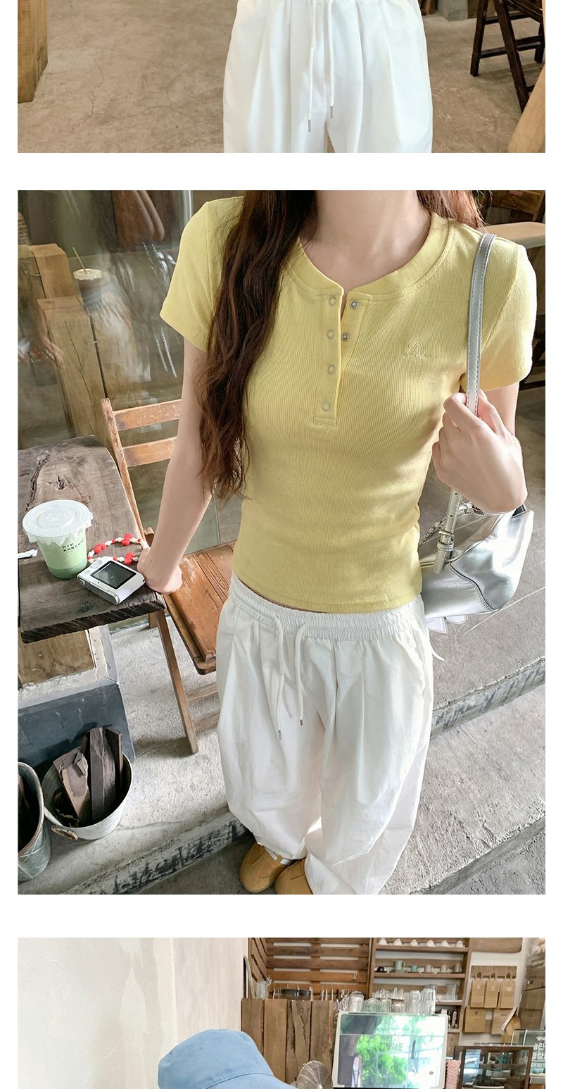<曾小咸推荐>韩系亨利领刺绣修身短袖t恤女【预售款,预计3-15天!!】