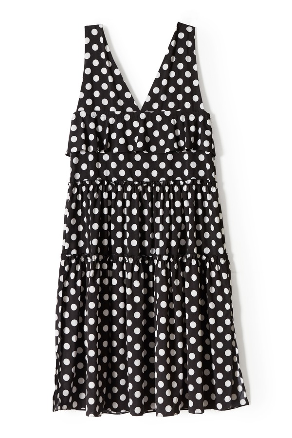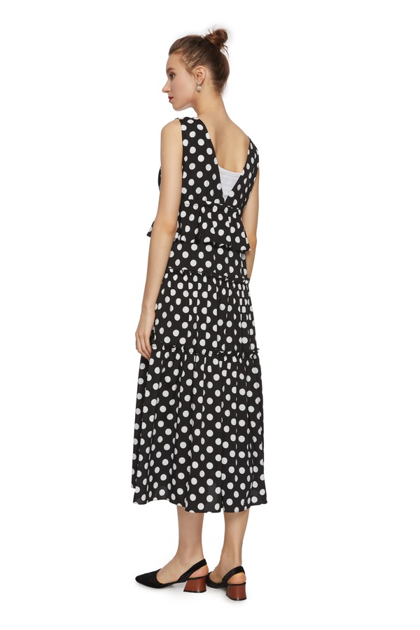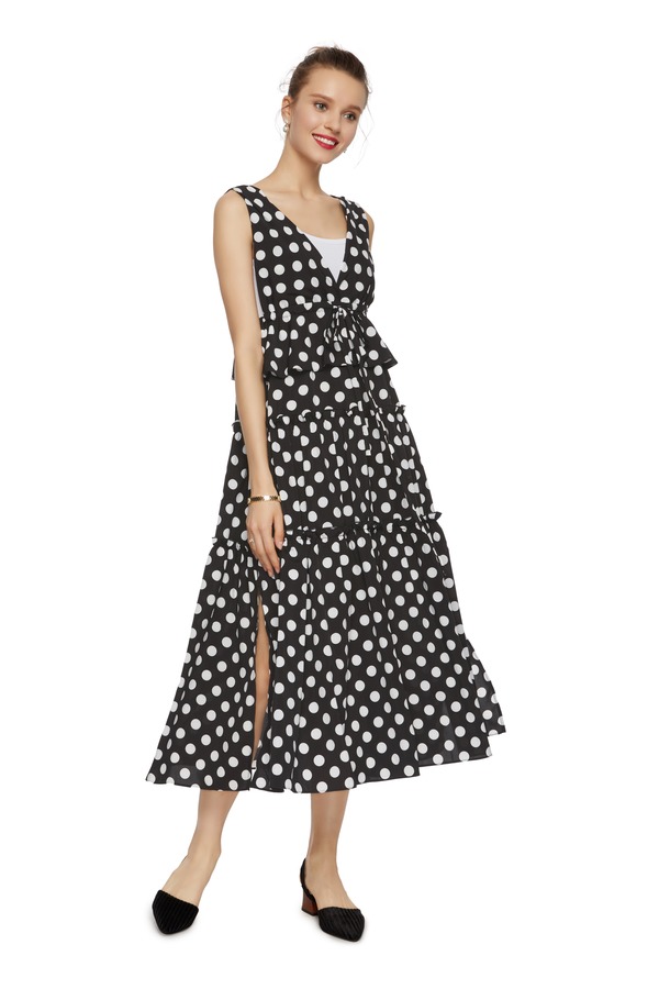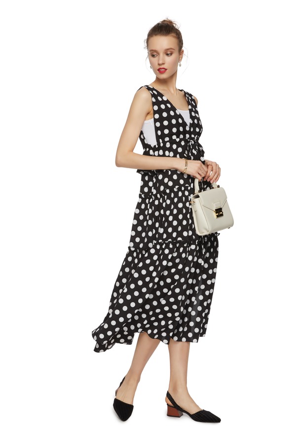 AVA 黑白波点开衩背心裙 6286
