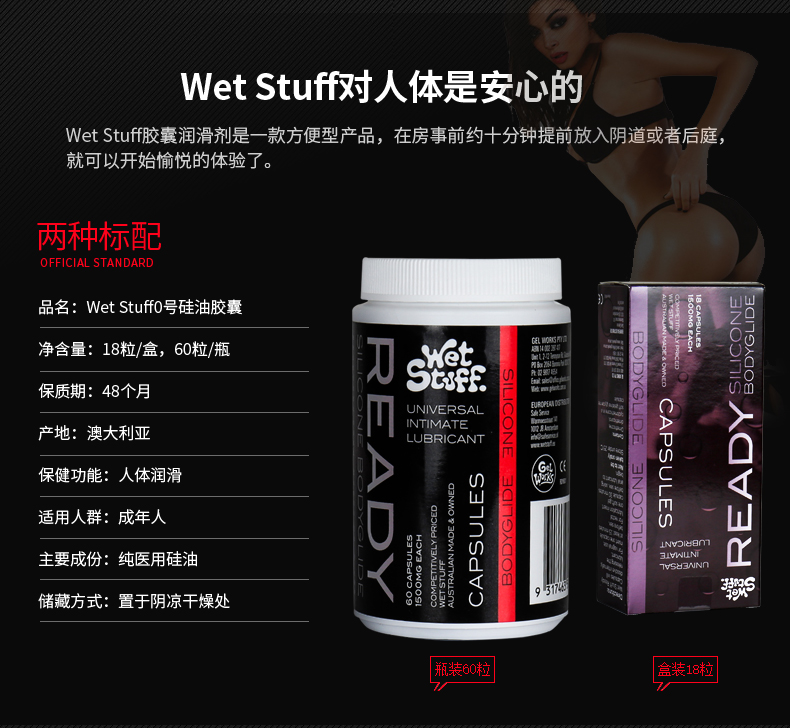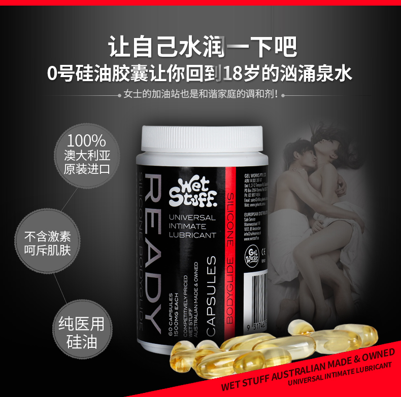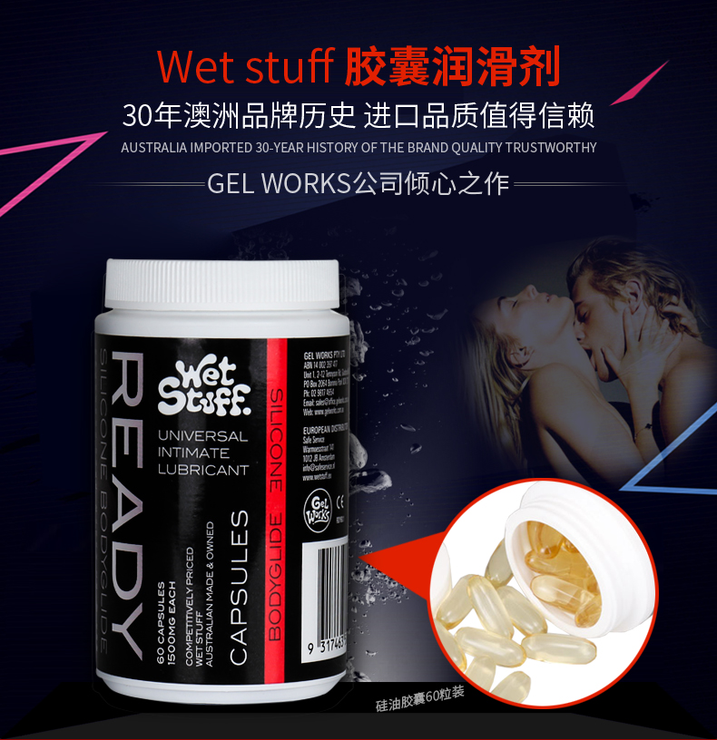 【Ready胶囊润滑!!】澳洲进口WET STUFF人体润滑剂胶囊后庭油性润滑液夫妻情趣用品18粒60粒