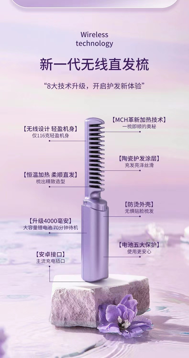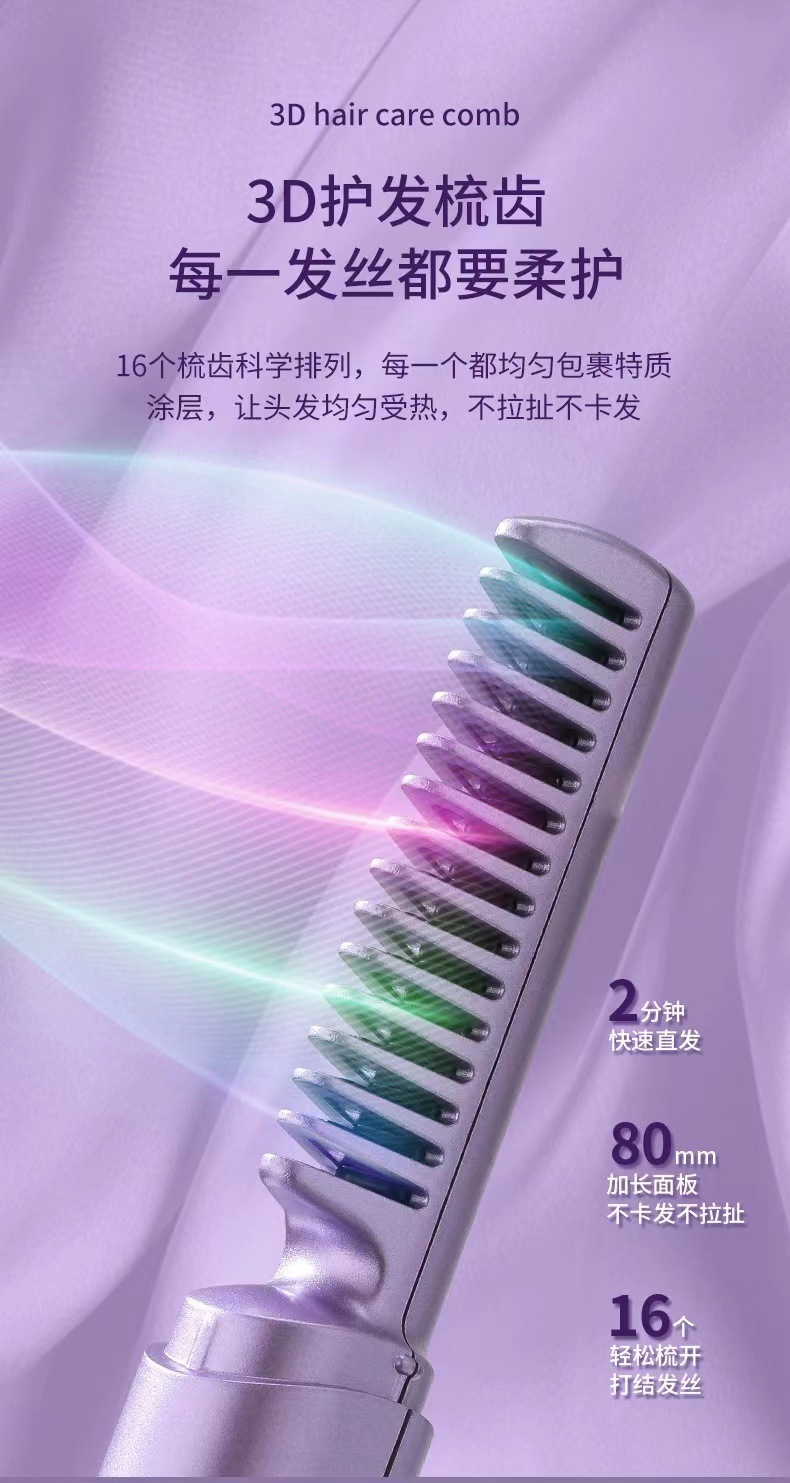「19.9包邮!小H书同款」科技懒人直发梳移动直发器 迷你USB充电便携旅行卷直两用移动生活电器