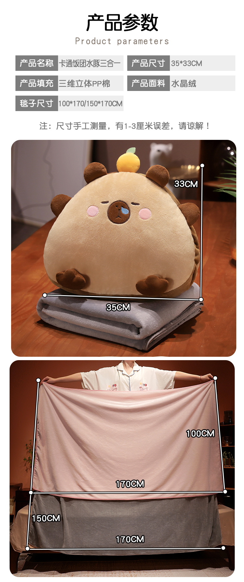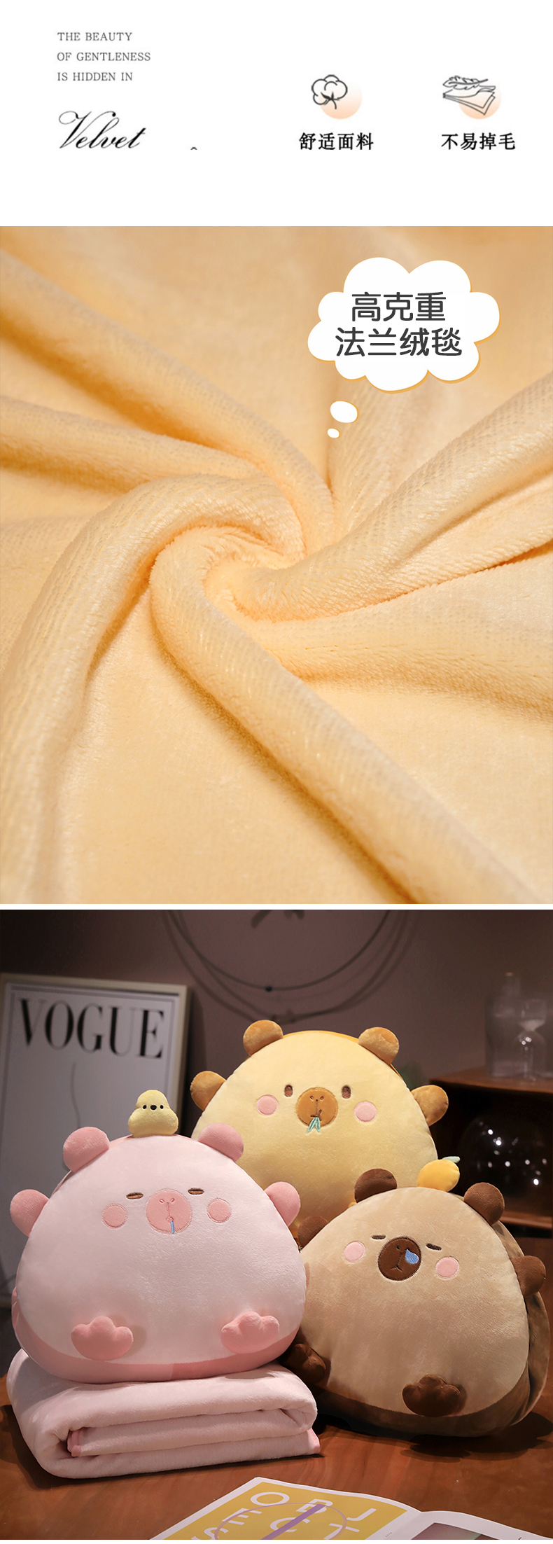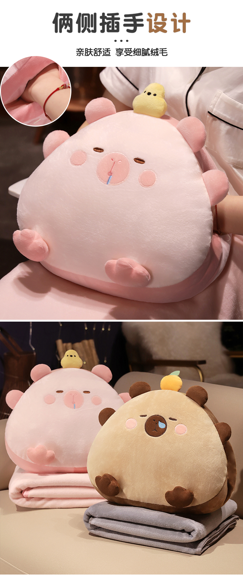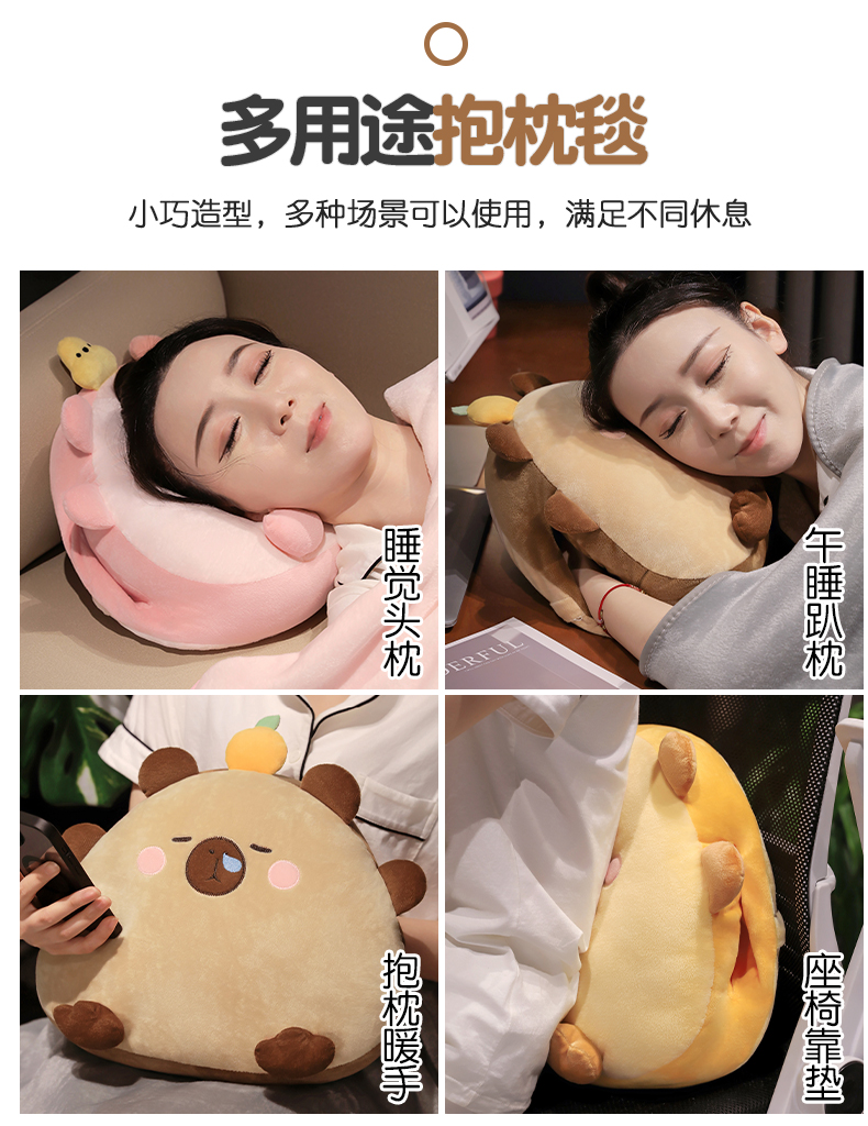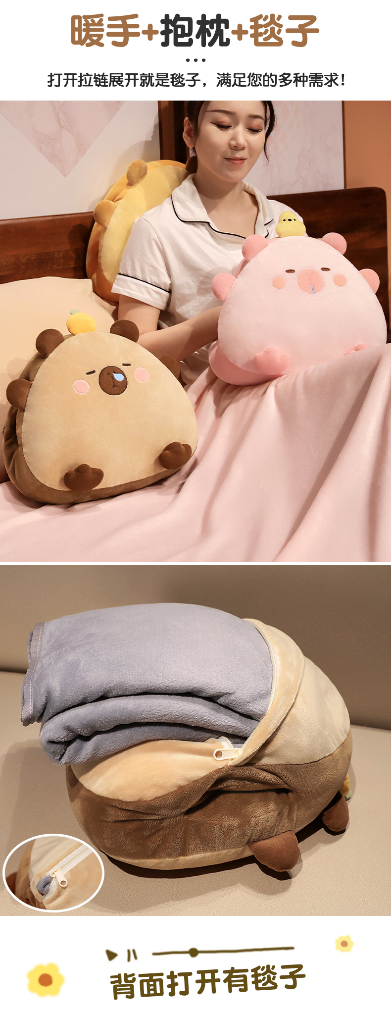 自然醒饭团水豚三合一抱枕毯办公室暖手抱枕午睡神器枕头车用睡觉女生珊瑚绒毯子QYL