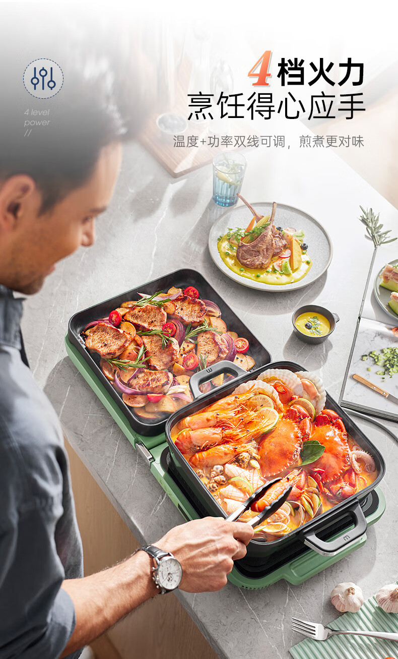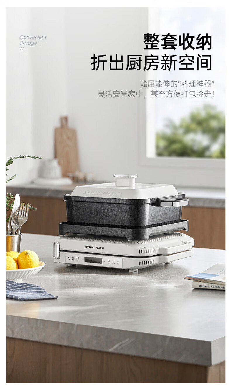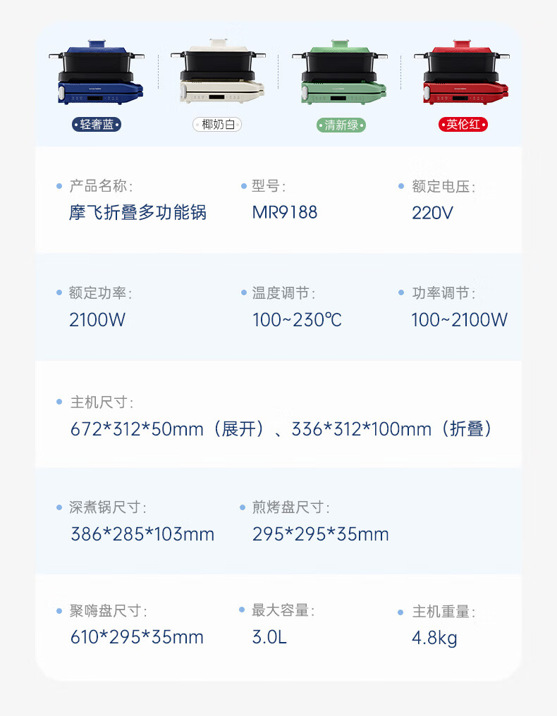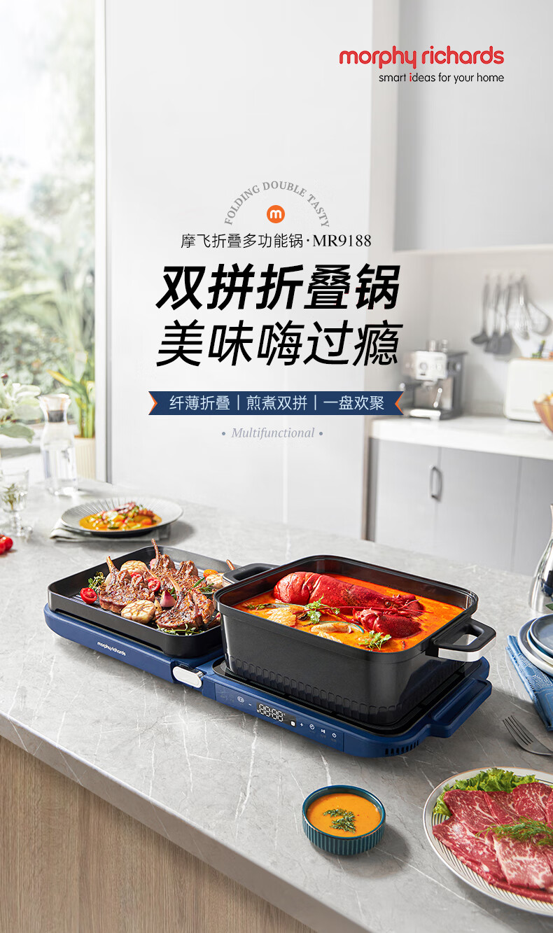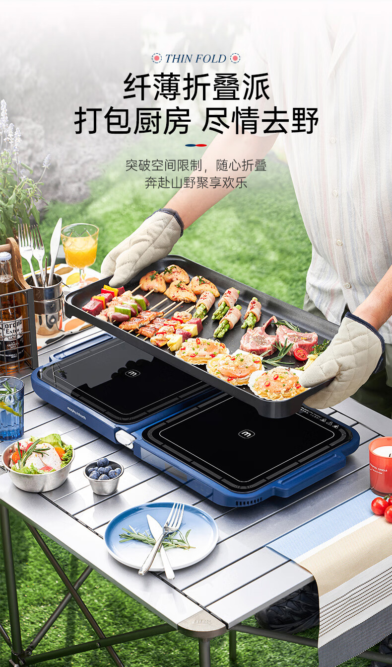 【小家电】摩飞电器MR9188折叠多功能锅 家用聚会嗨吃电火锅电烧烤炉