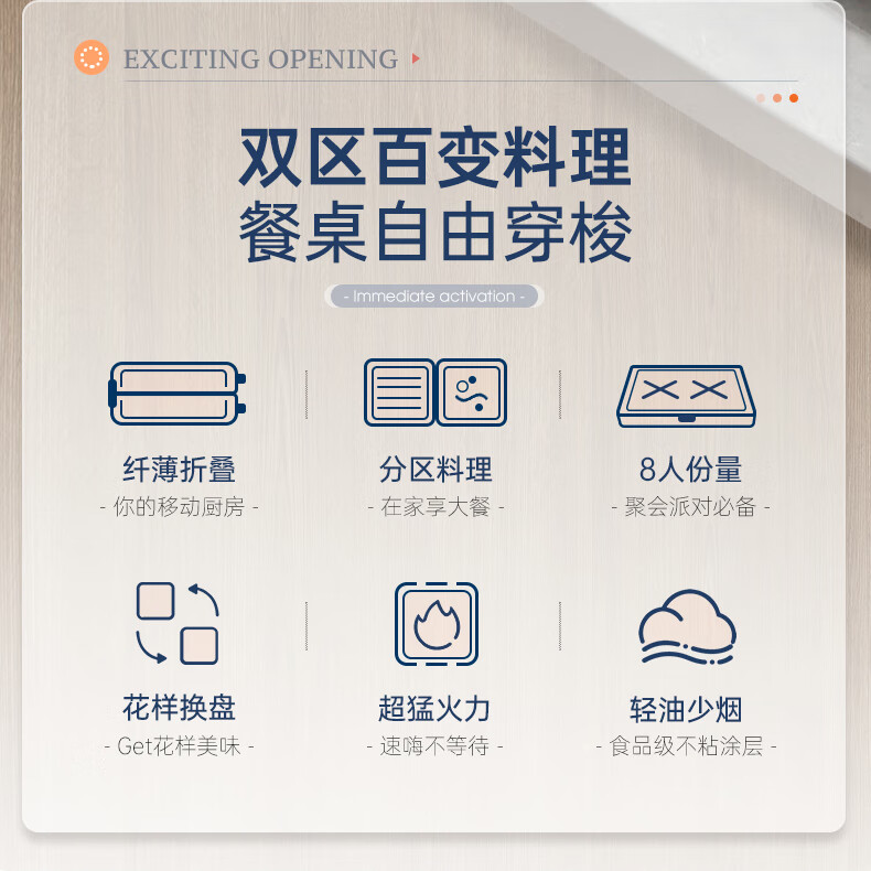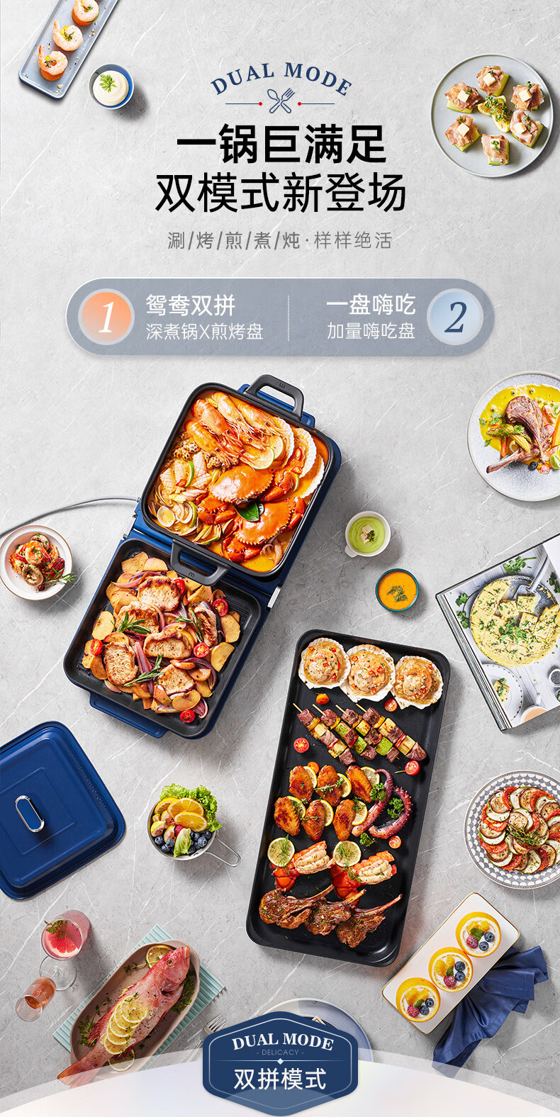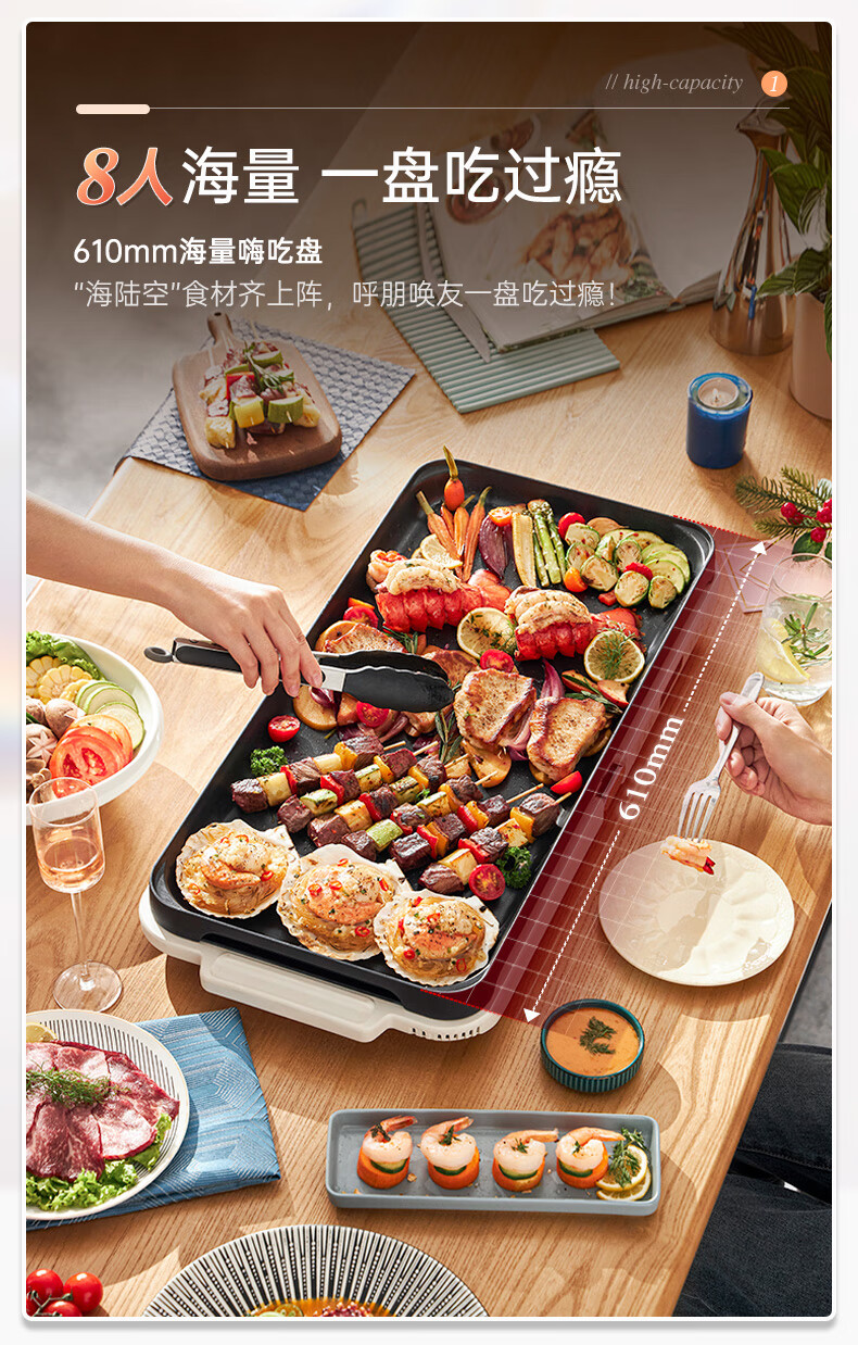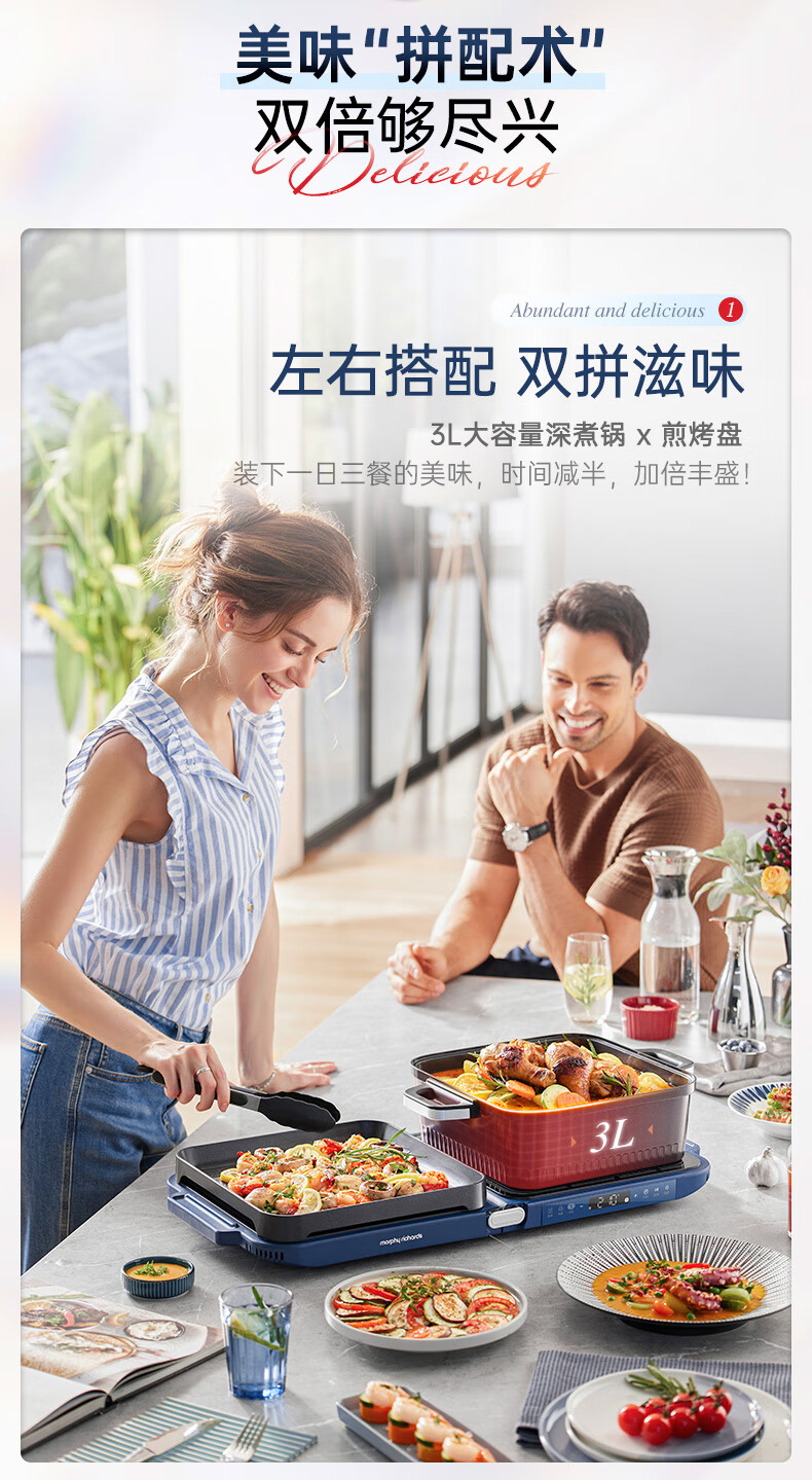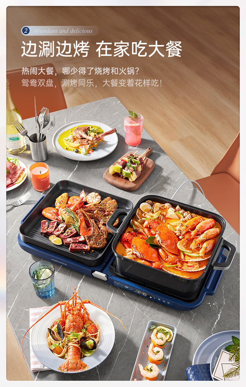 【小家电】摩飞电器MR9188折叠多功能锅 家用聚会嗨吃电火锅电烧烤炉