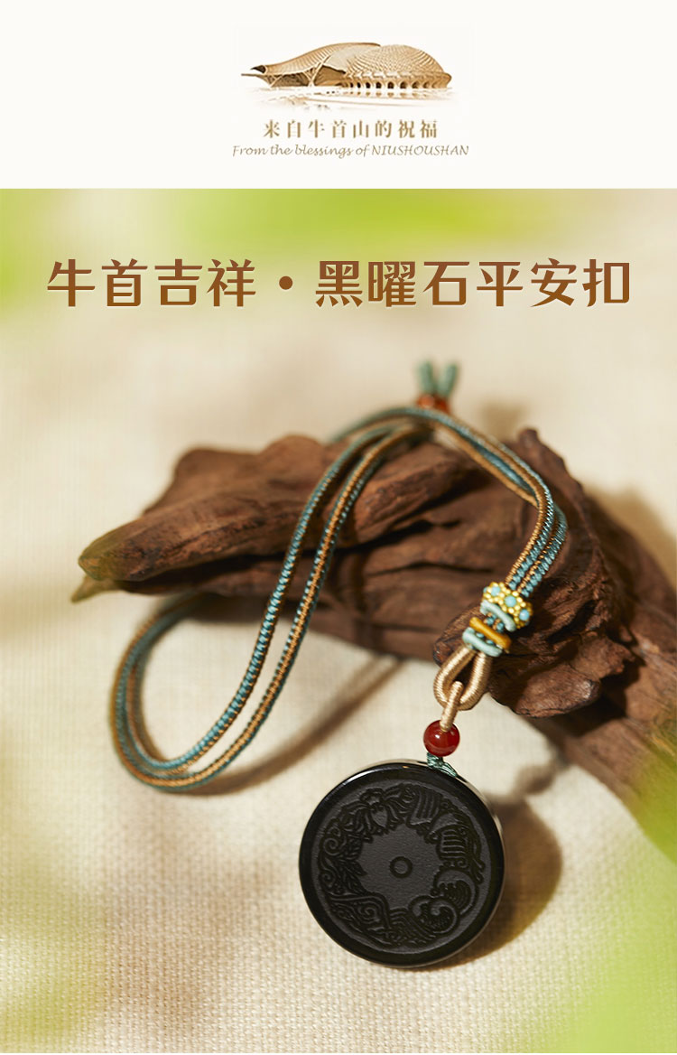 牛首山牛首吉祥黑曜石平安扣吊坠男女本命年送人礼物项链
