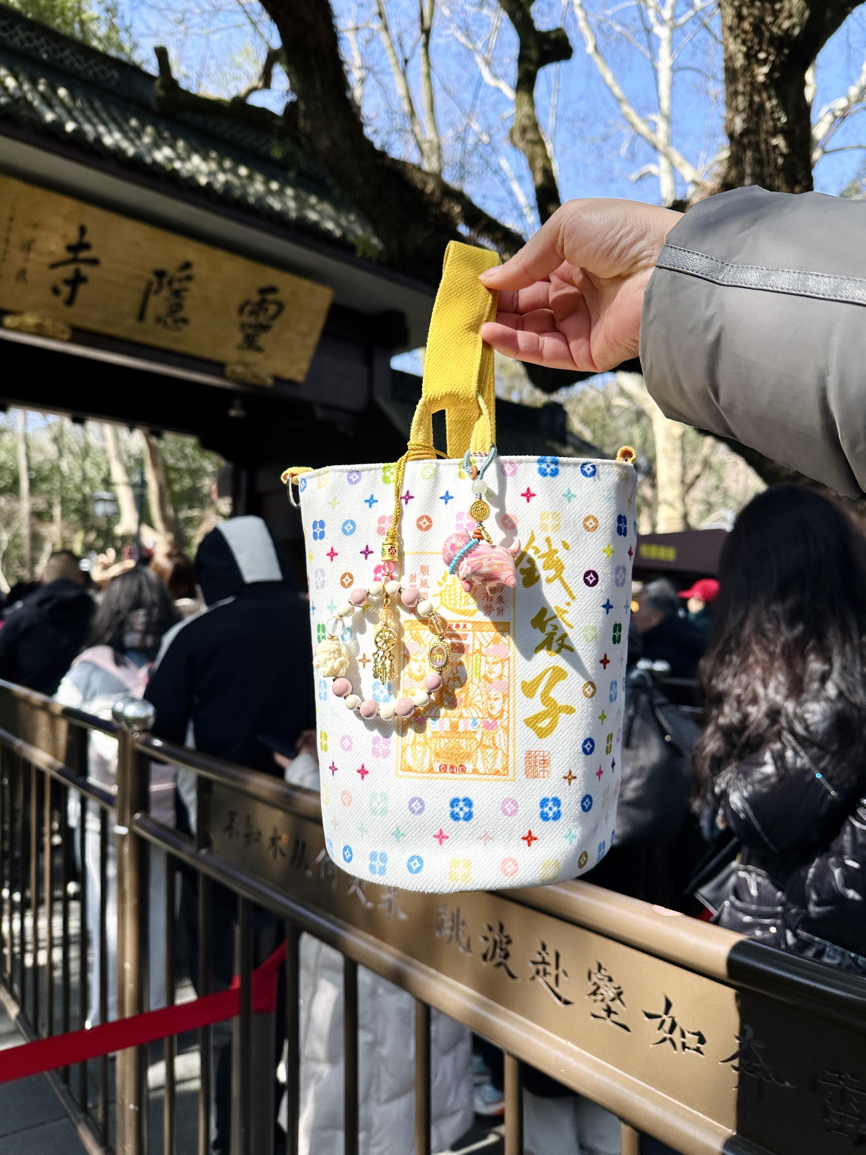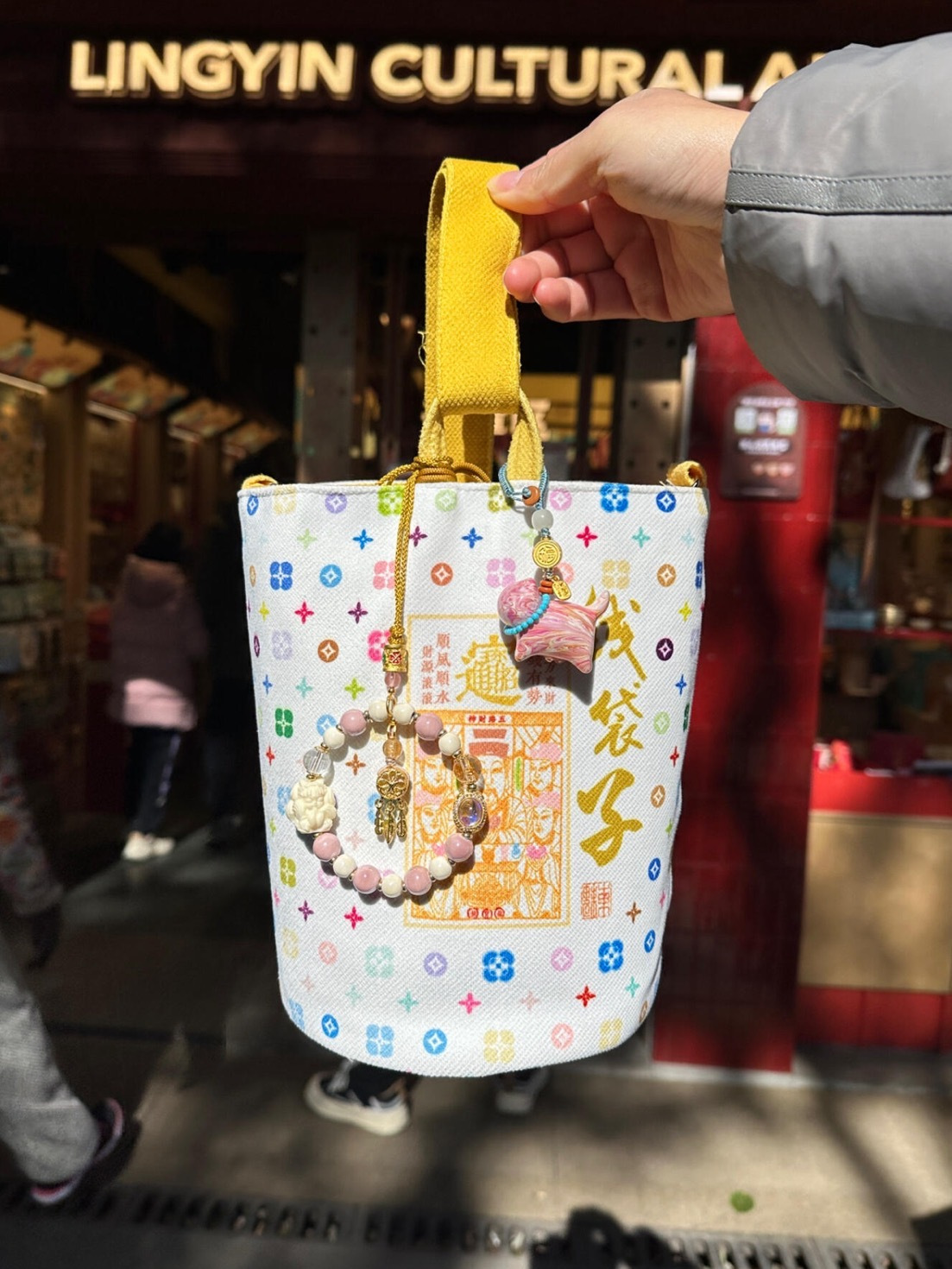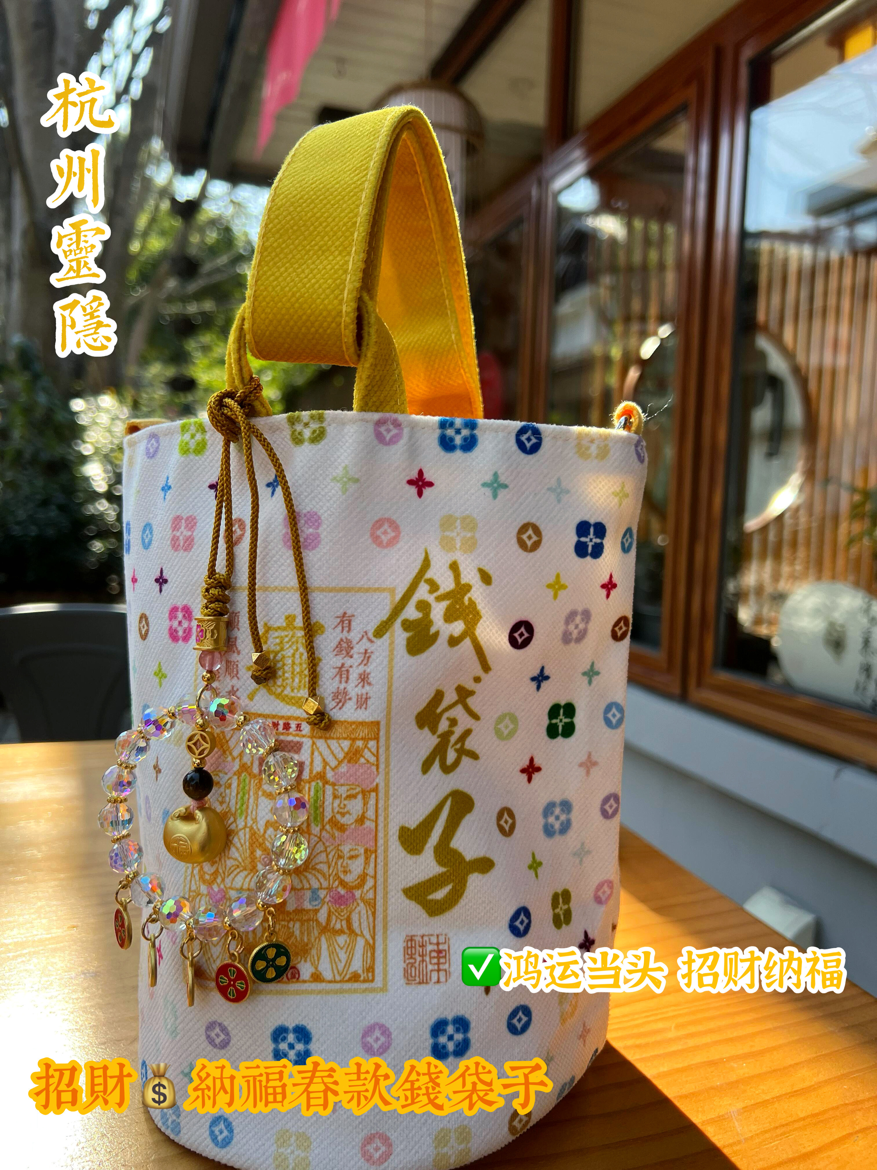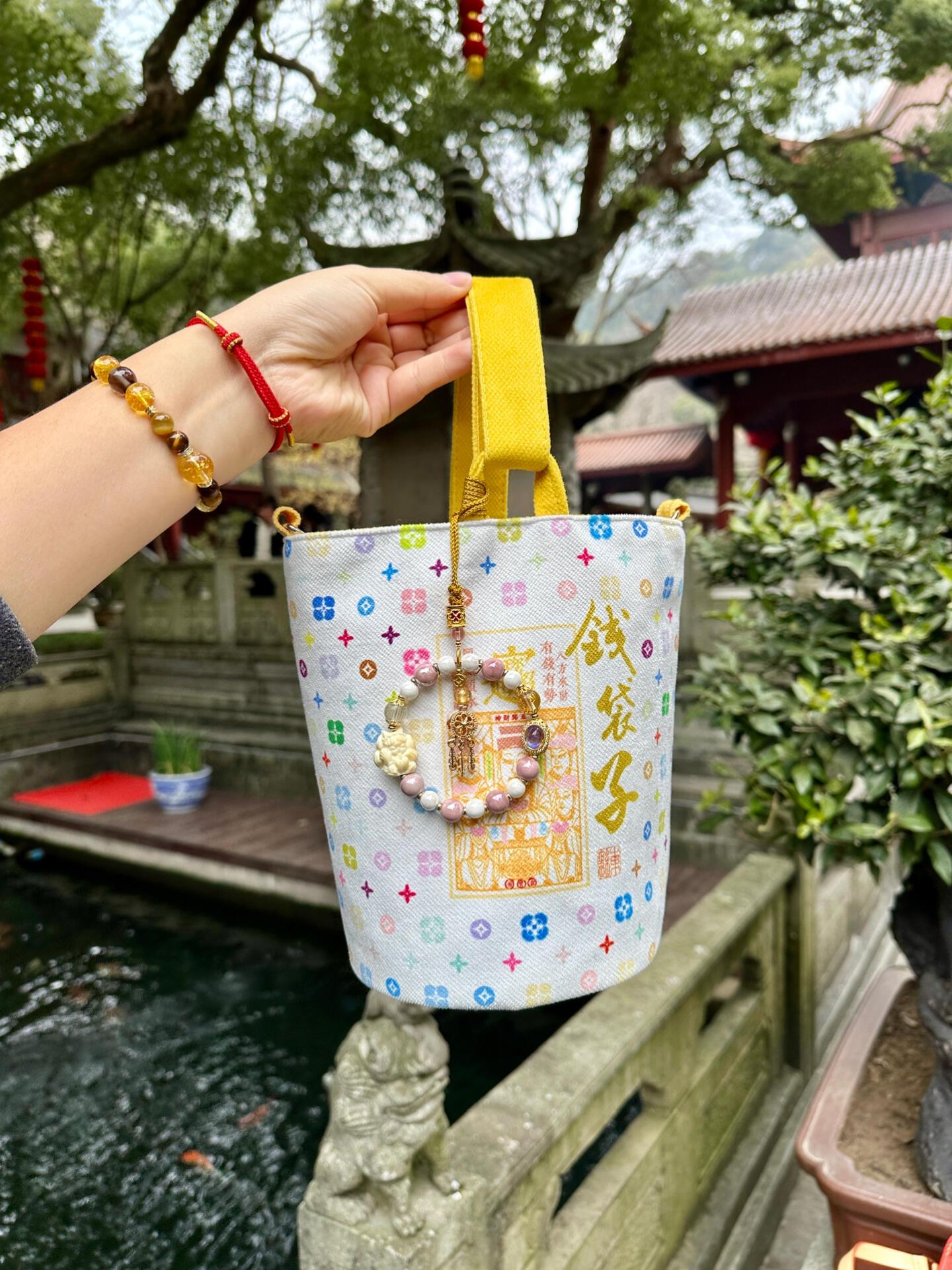 灵隐超火钱袋子【三彩招财钱袋子】老花包包 三种背法 可手提/斜挎/单肩 白三彩设计+五路图案