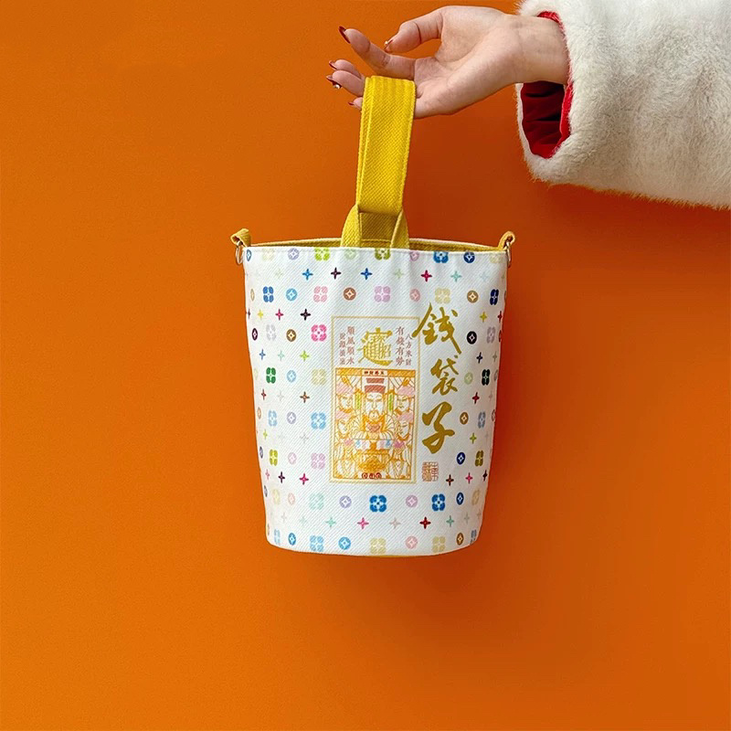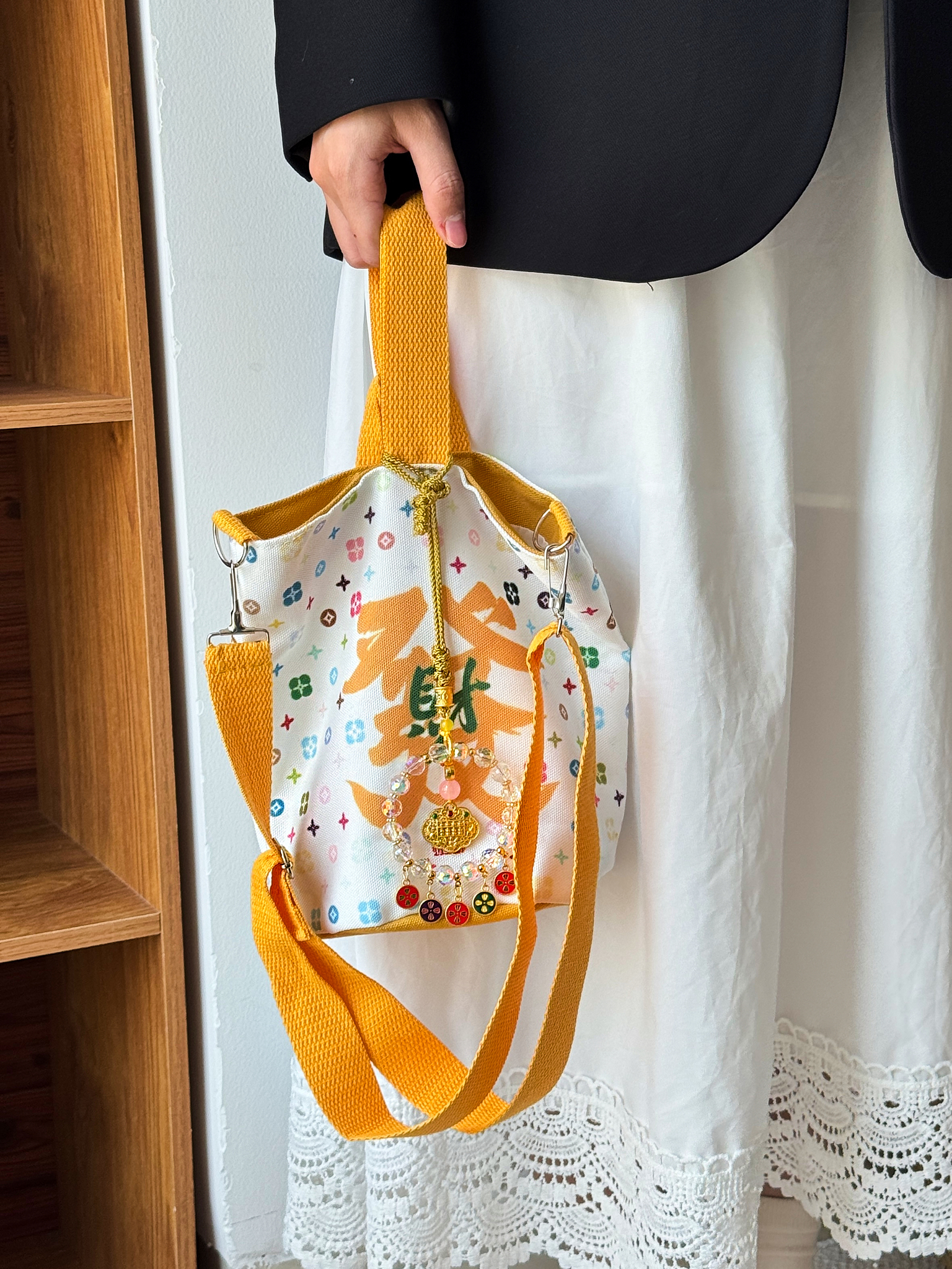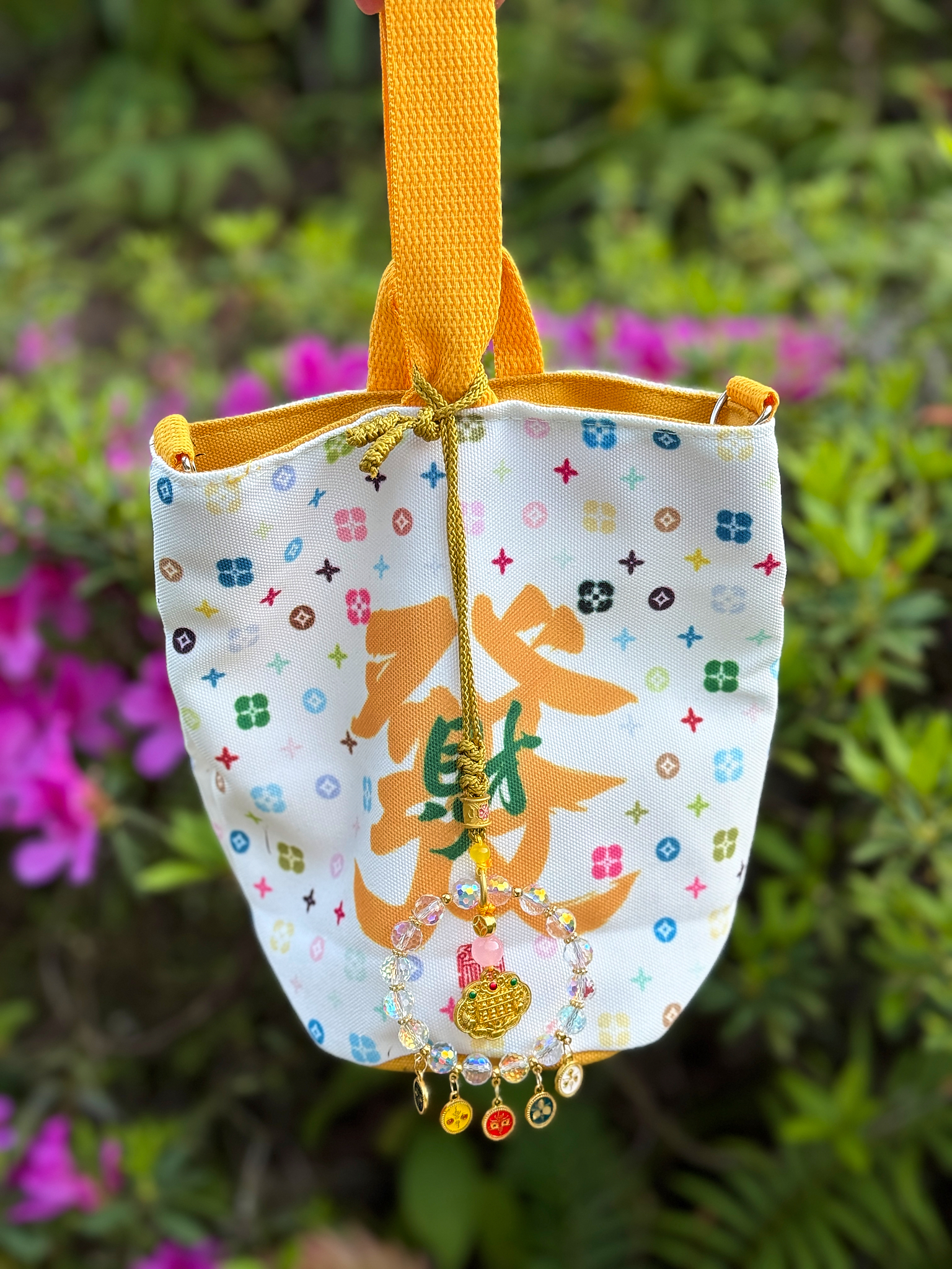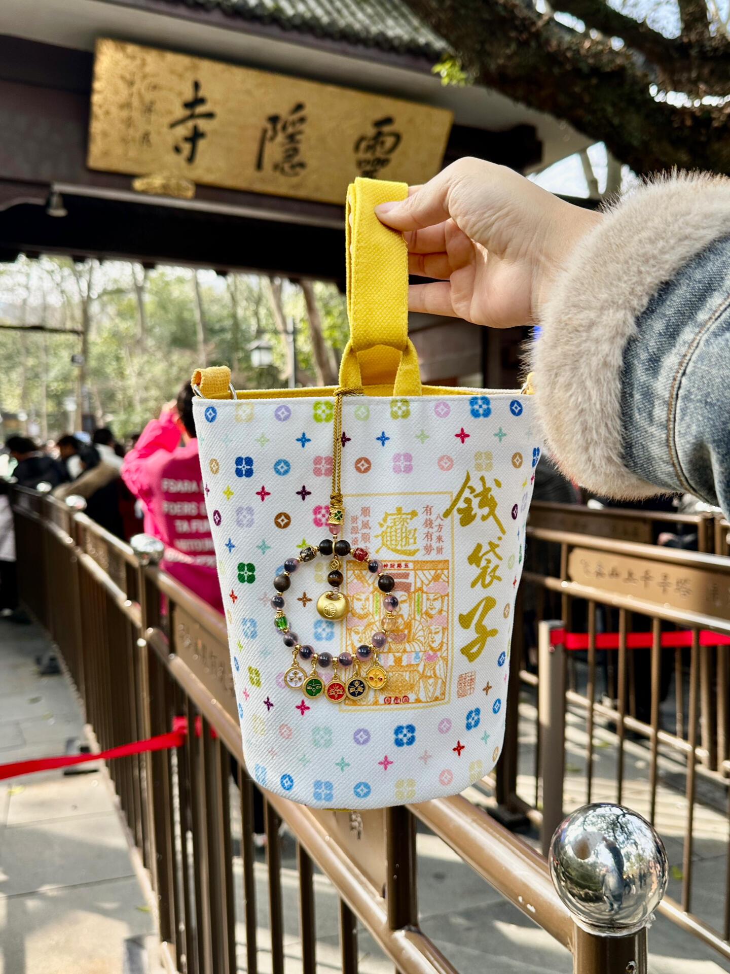 灵隐超火钱袋子【三彩招财钱袋子】老花包包 三种背法 可手提/斜挎/单肩 白三彩设计+五路图案