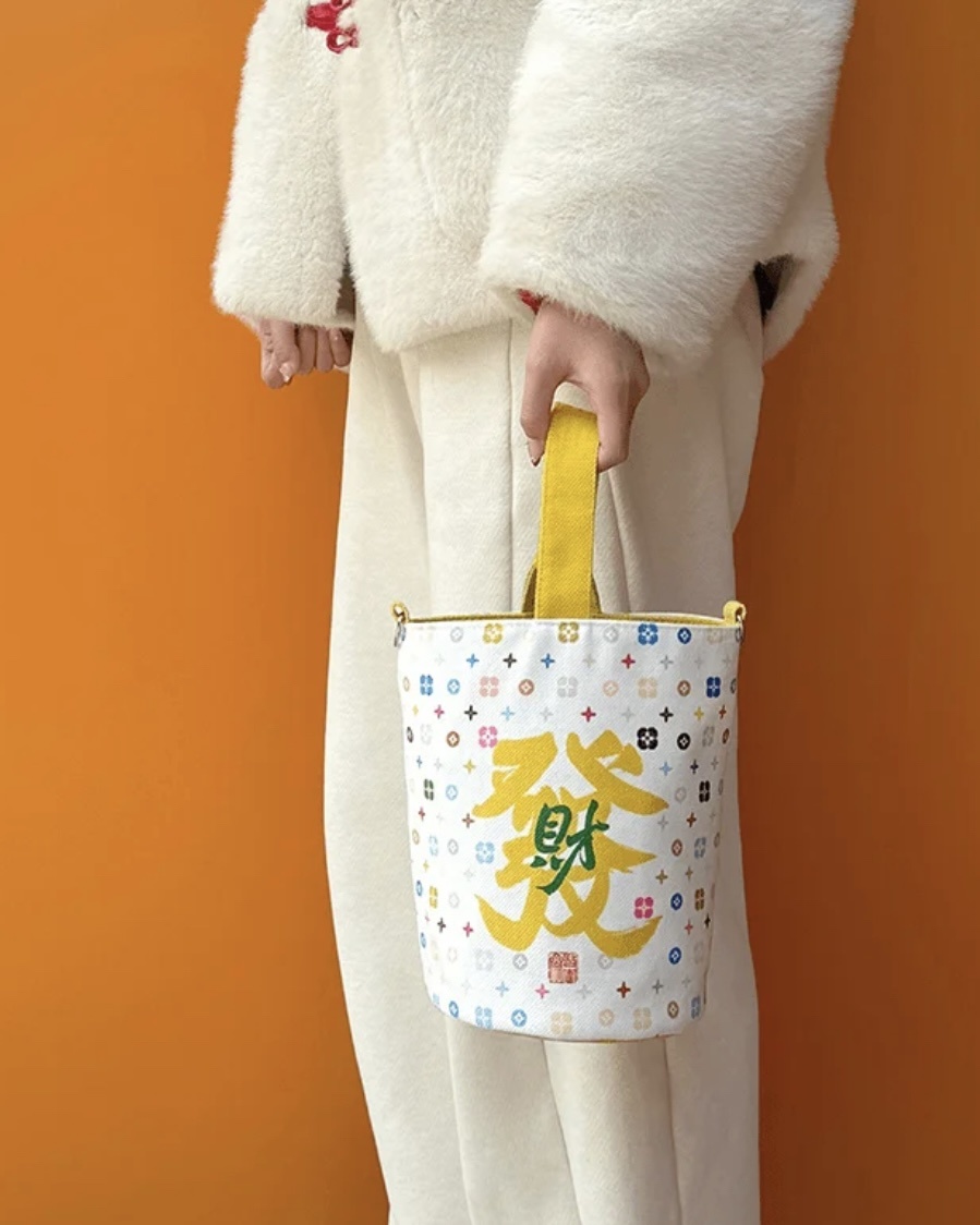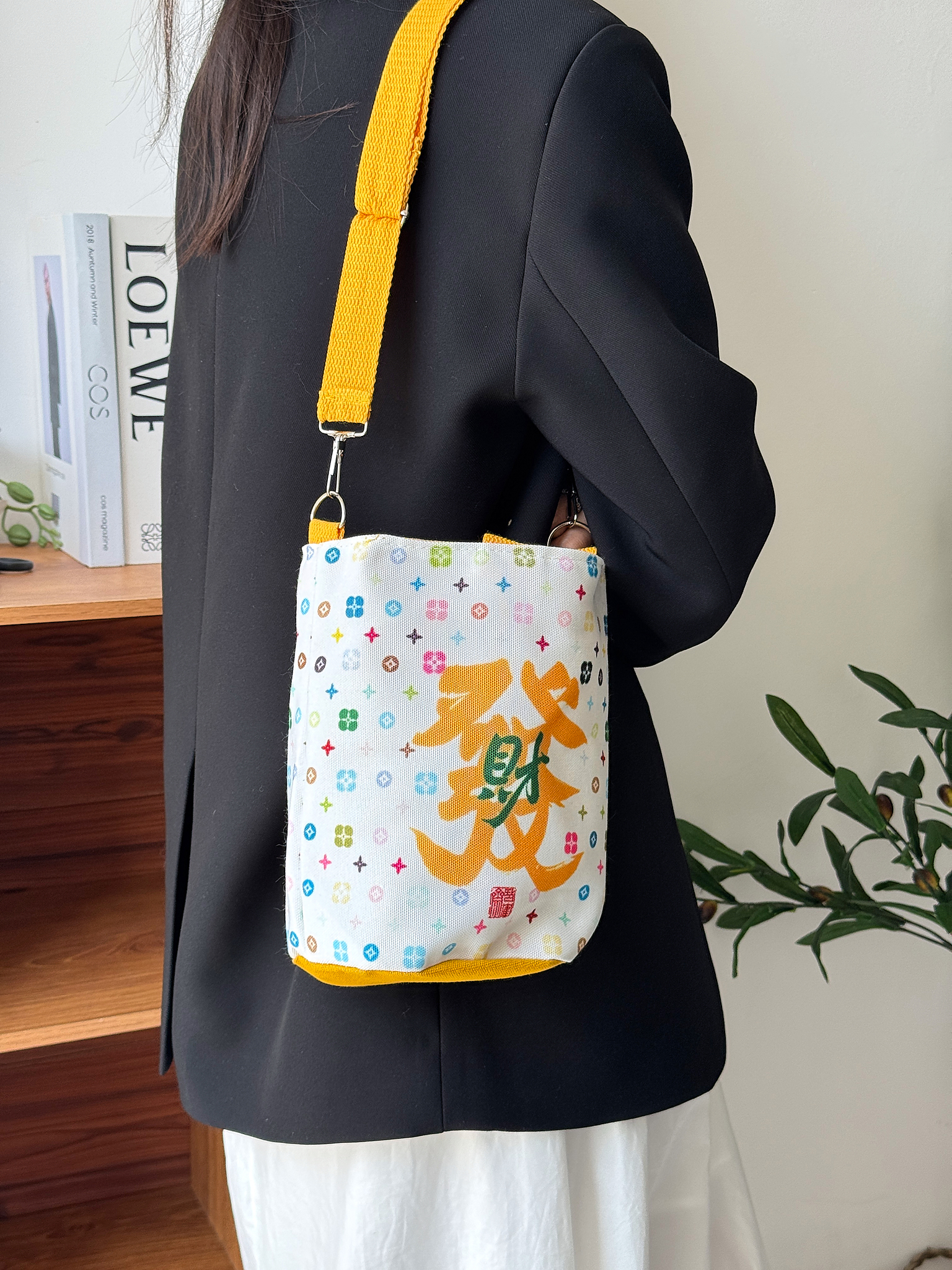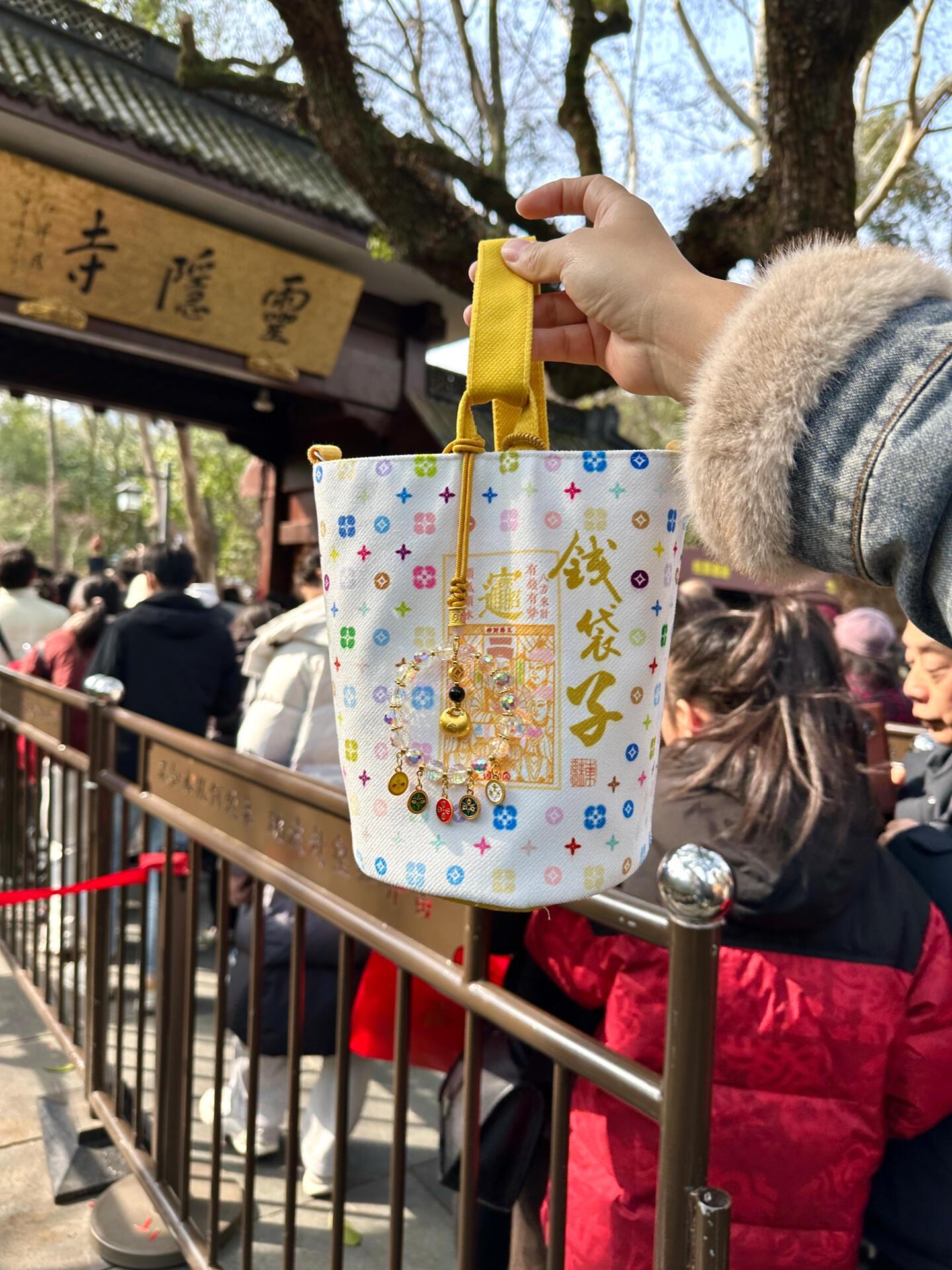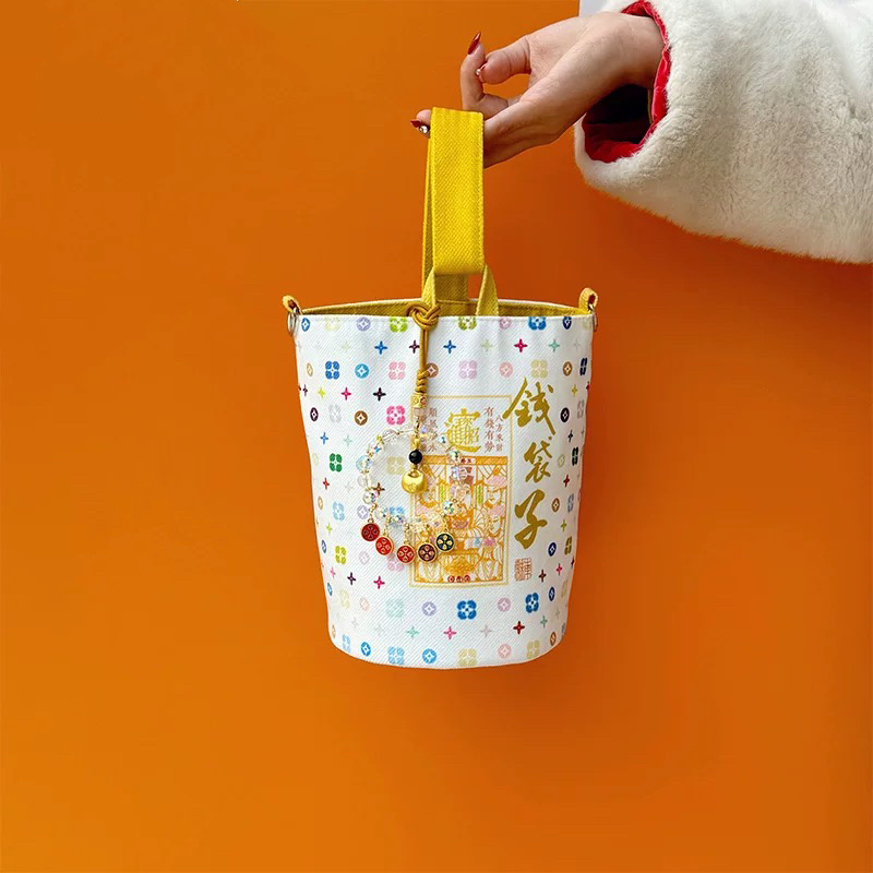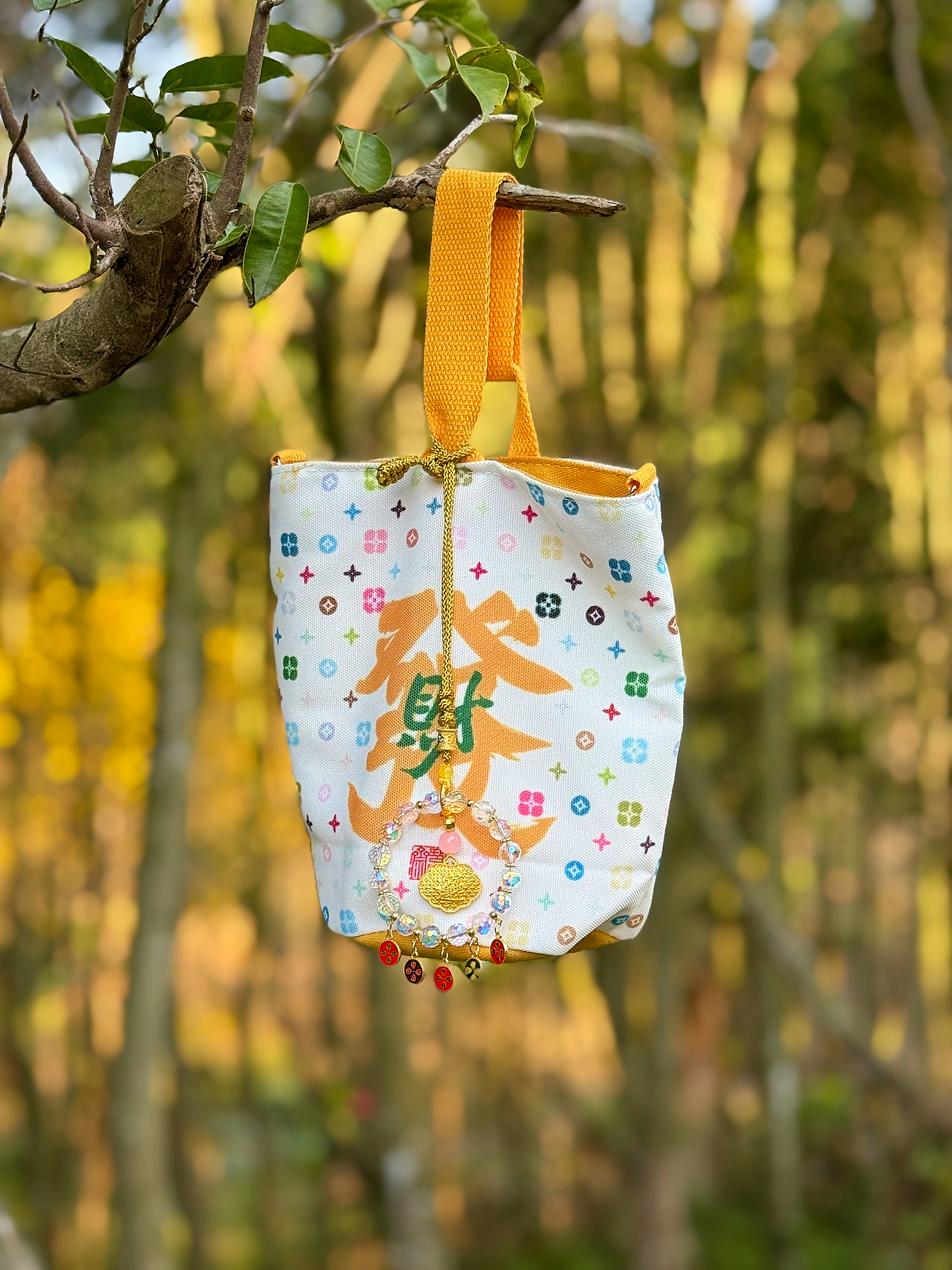 灵隐超火钱袋子【三彩招财钱袋子】老花包包 三种背法 可手提/斜挎/单肩 白三彩设计+五路图案