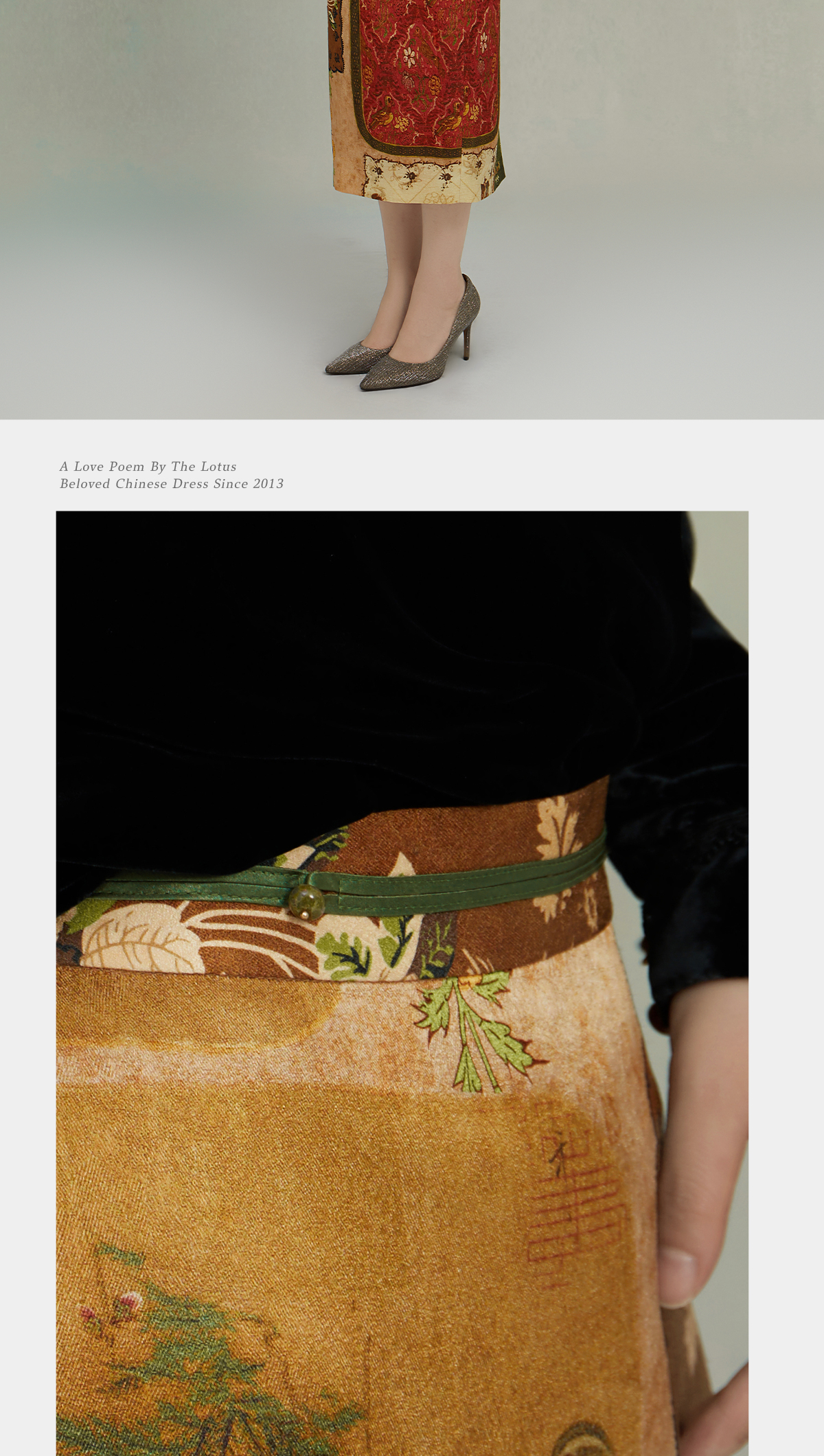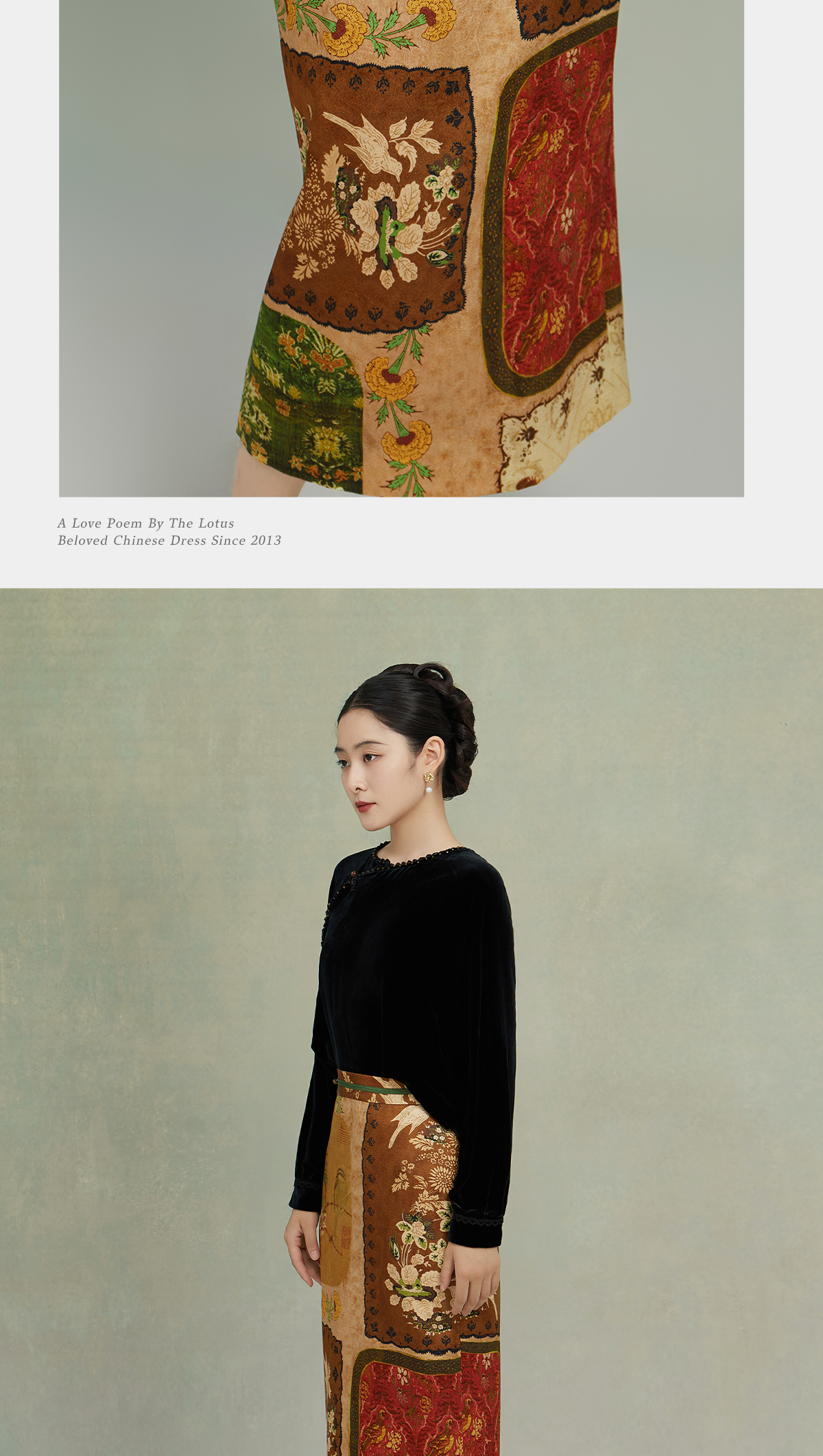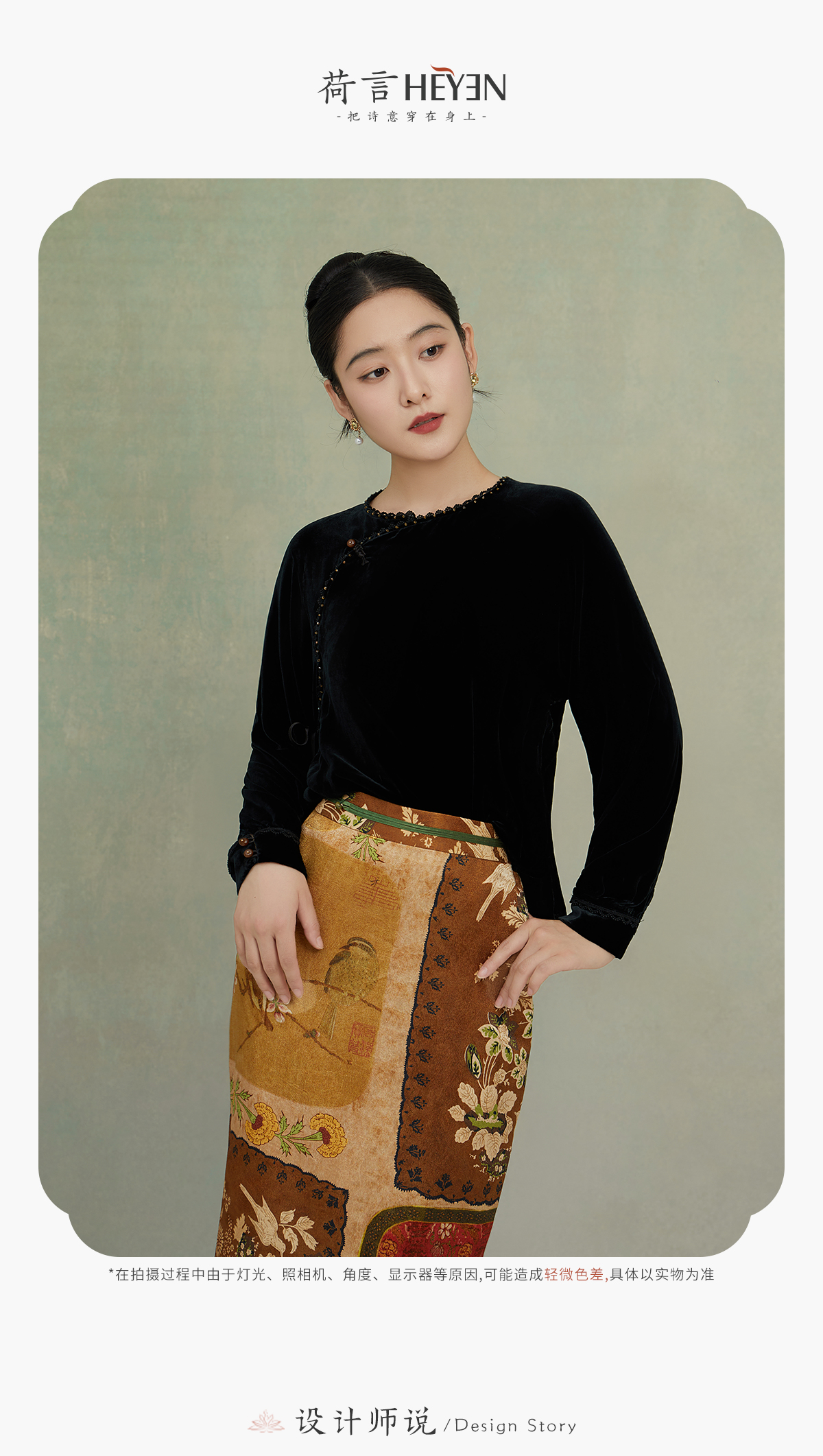 荷言GL 砚秋 复古丝毛印花半裙百搭拼布风柔爽舒适