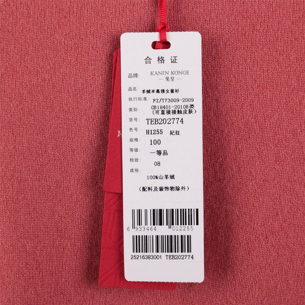 兔皇羊绒半高领女套衫TEB202774