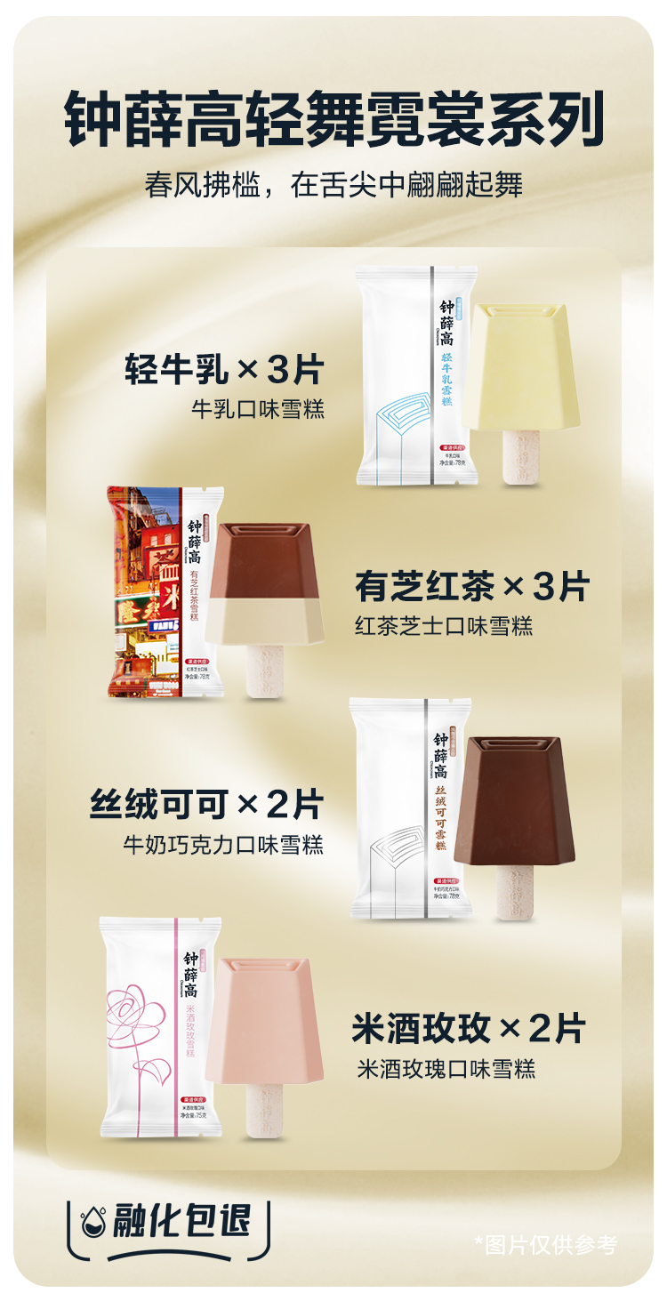 钟薛高 轻舞霓裳系列 轻牛乳*3有芝红茶*3丝绒可可*2米酒玫玫*2 雪糕冰淇淋[福利品]