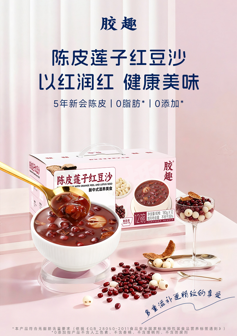 胶趣陈皮莲子红豆沙礼盒180g*12碗 5年新会陈皮红豆研磨成沙
