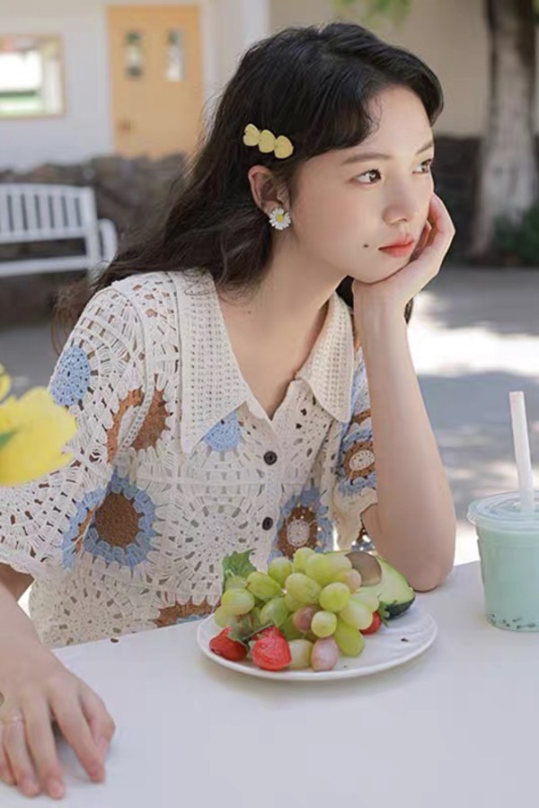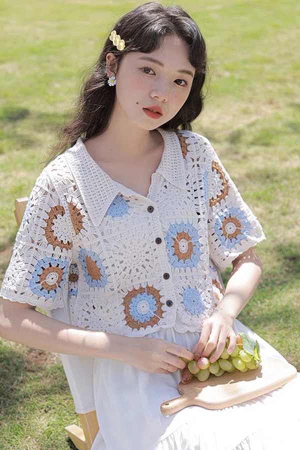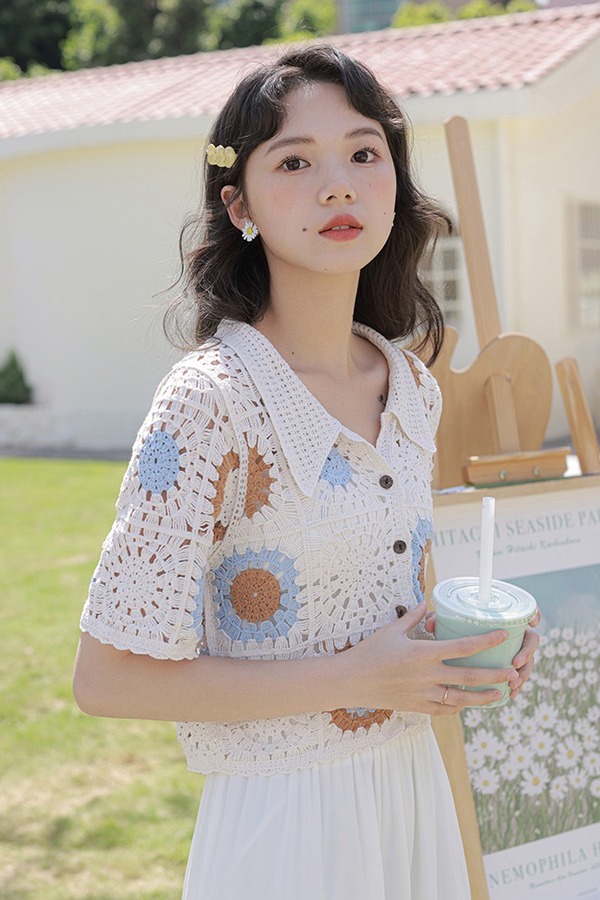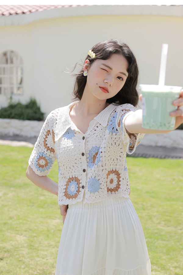 L.Fleuri 米色复古钩花镂空针织外套 16743