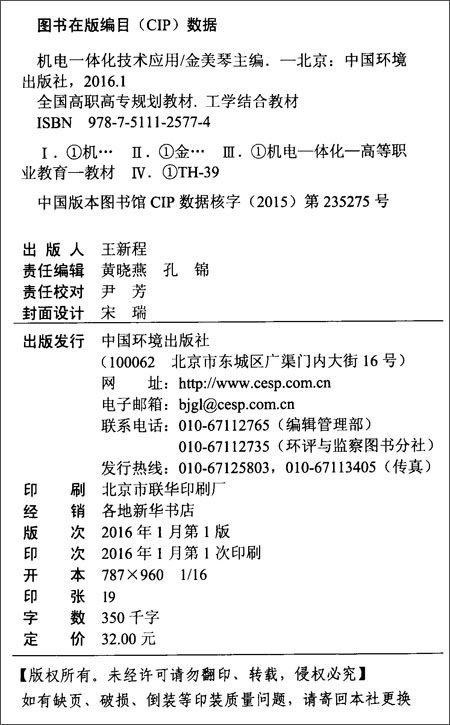 机电一体化技术应用 全国高职高专规划教材·工学结合教材 金美琴 环境保护 9787511125774