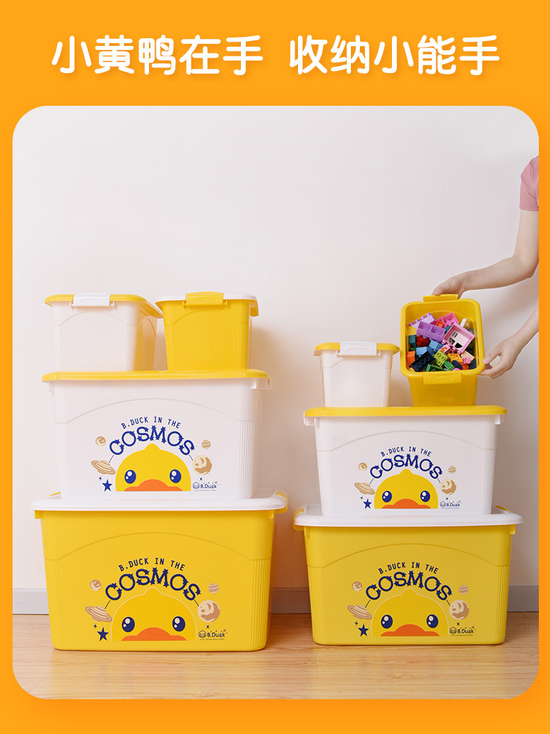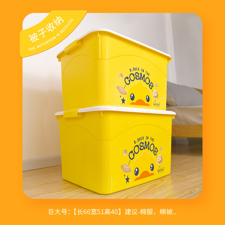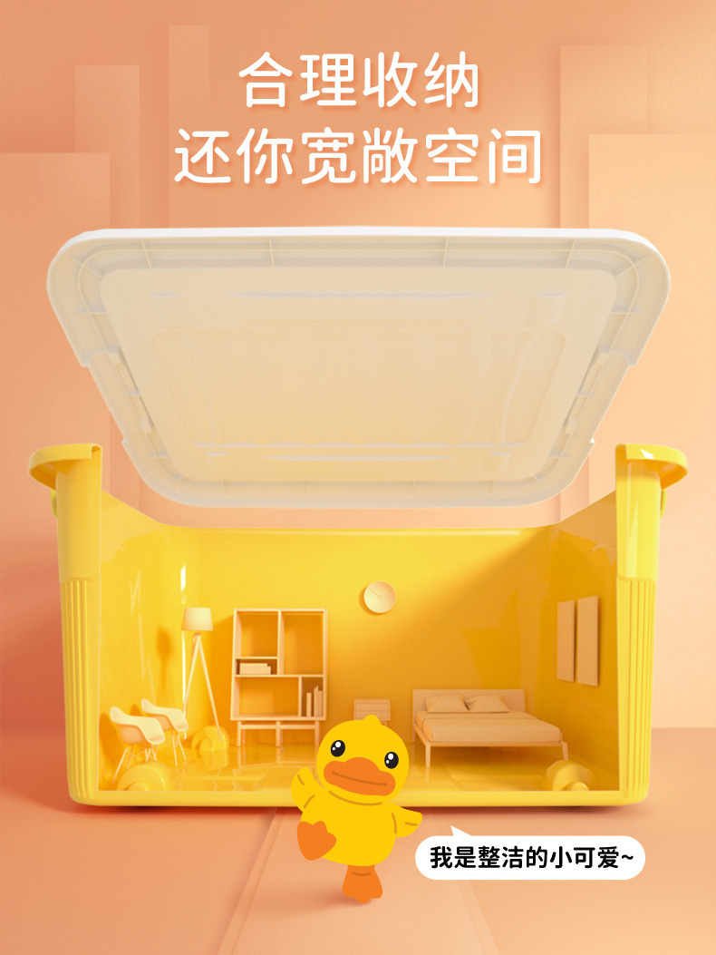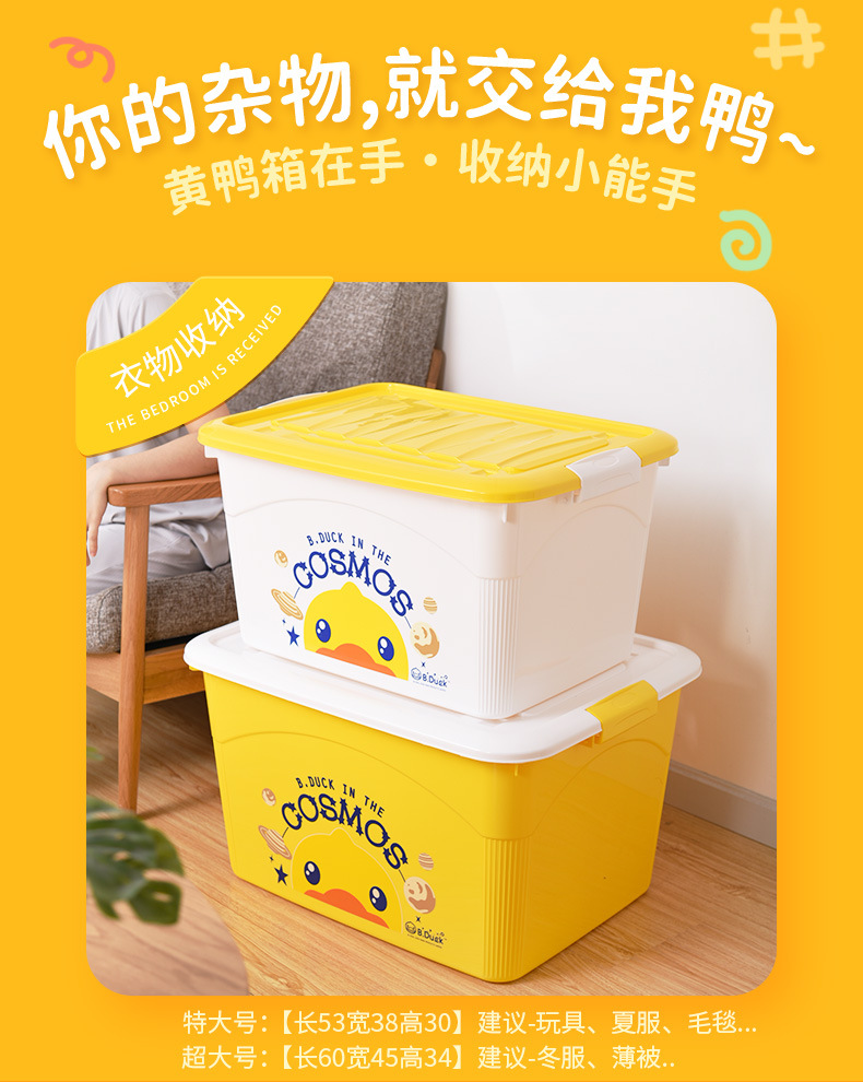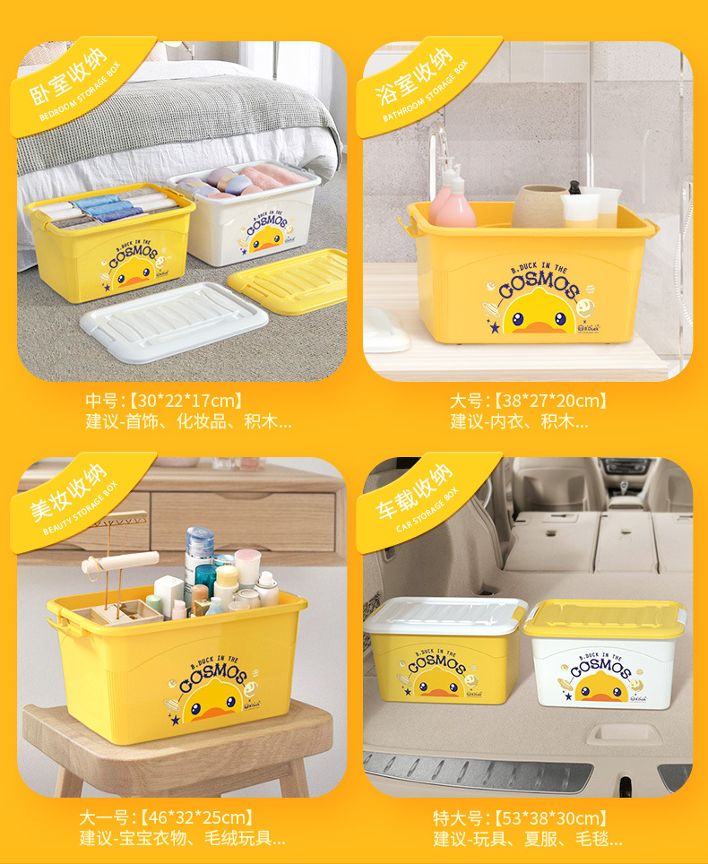 【小黄鸭收纳箱 收纳小能手】多用塑料收纳箱 萌趣衣服储物盒 零食玩具整理箱 学生书籍收纳箱子衣柜