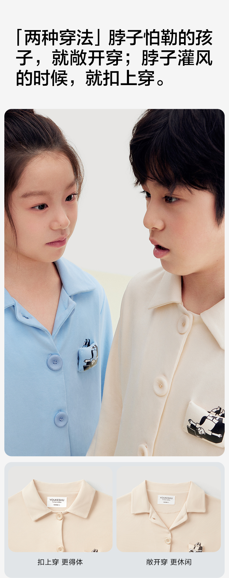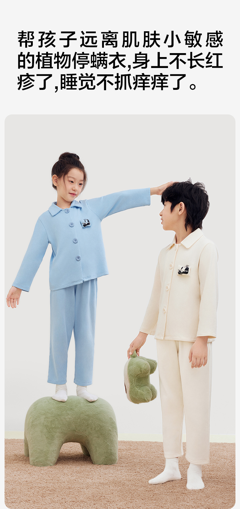 有棵树植物停螨衣翻领可外穿儿童家居服-CP1022