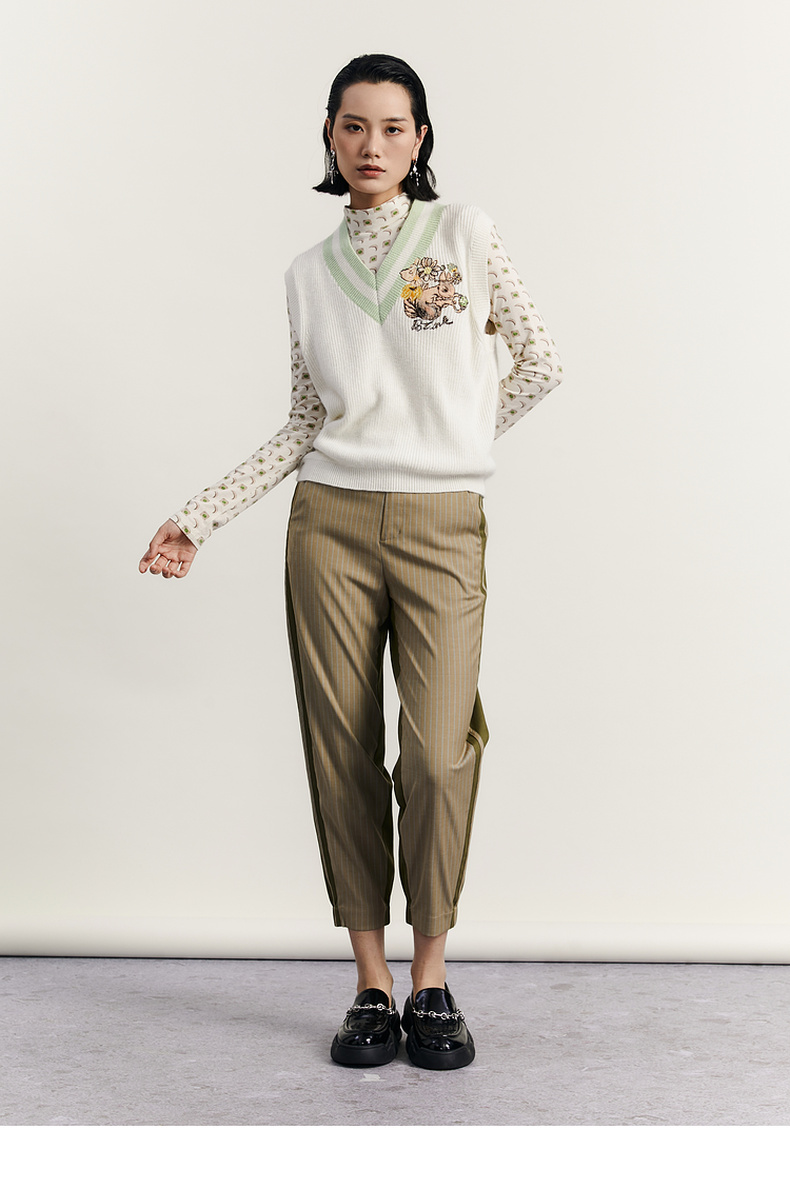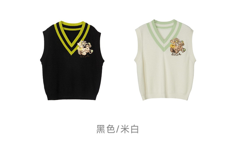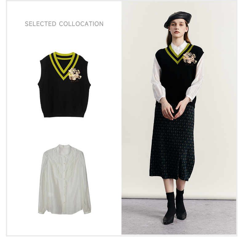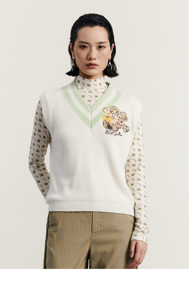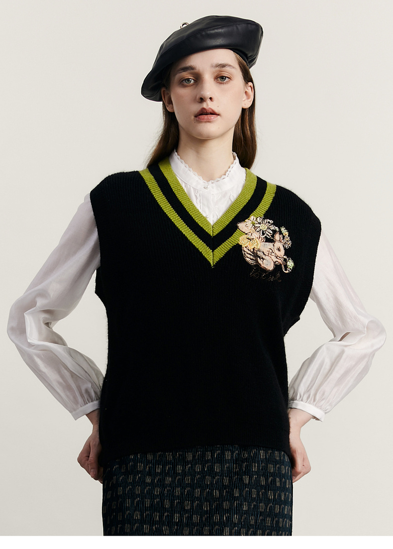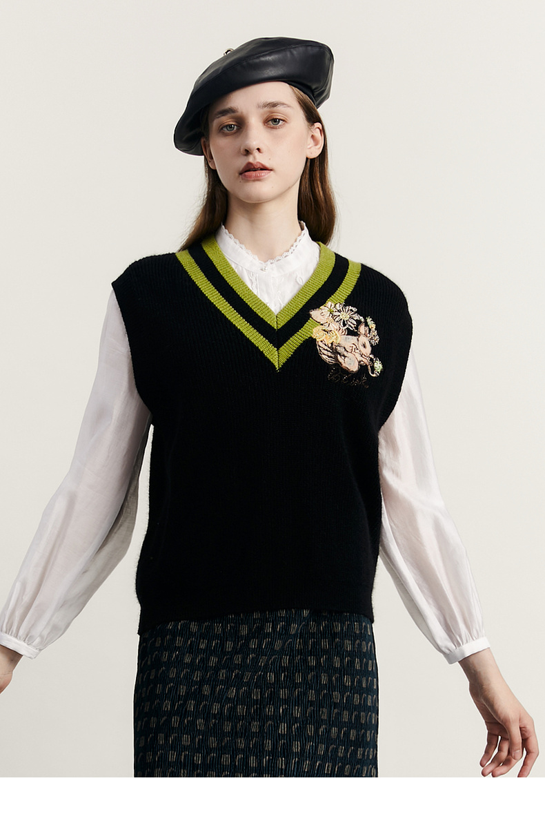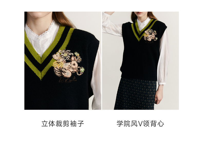 谜底V领套头针织背心女2023秋季新款复古学院风百搭毛衫233MZ1276