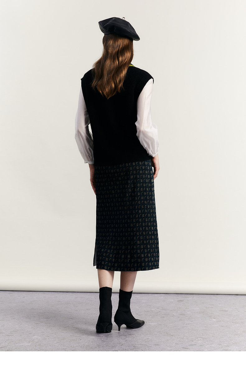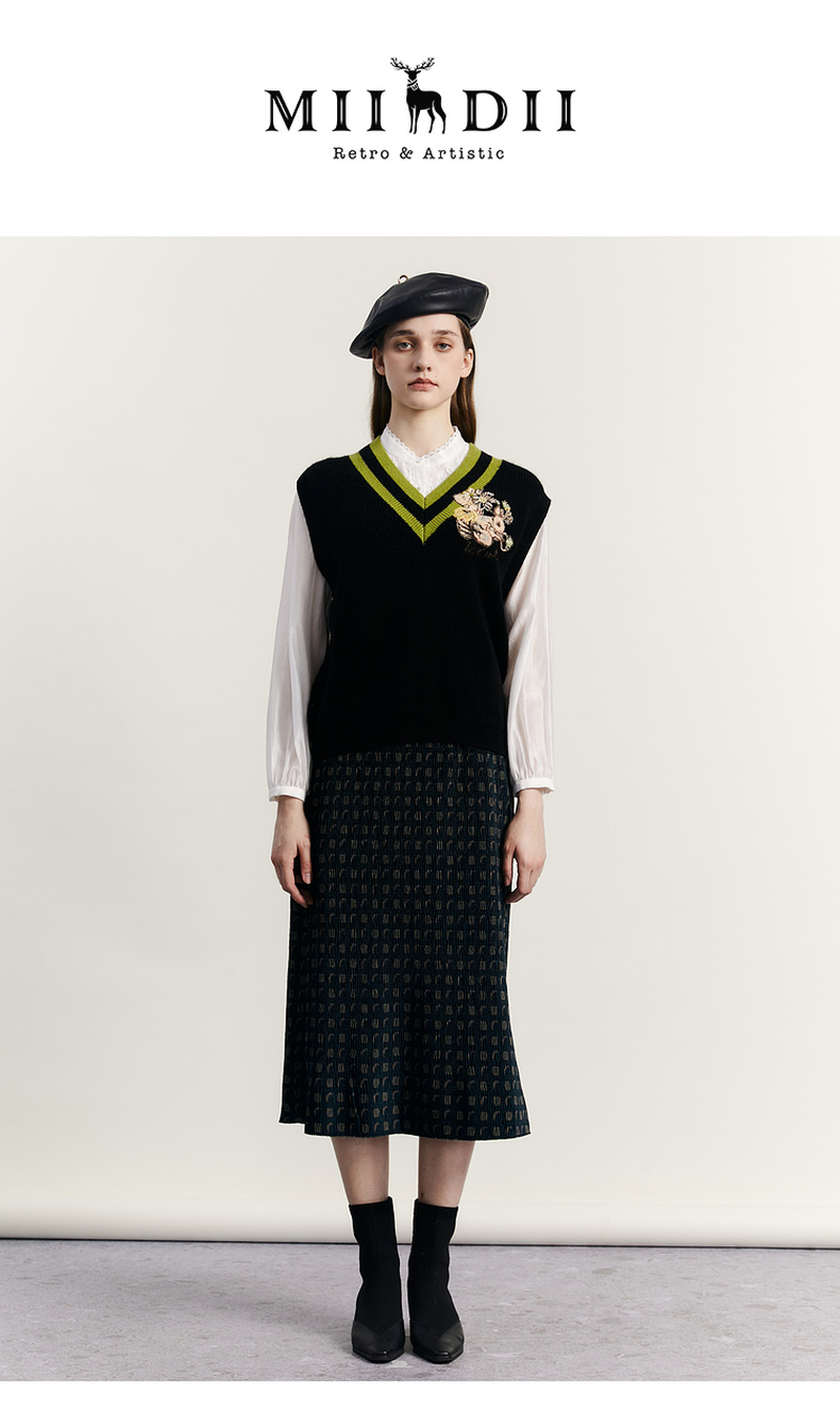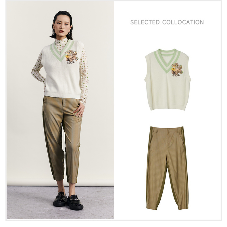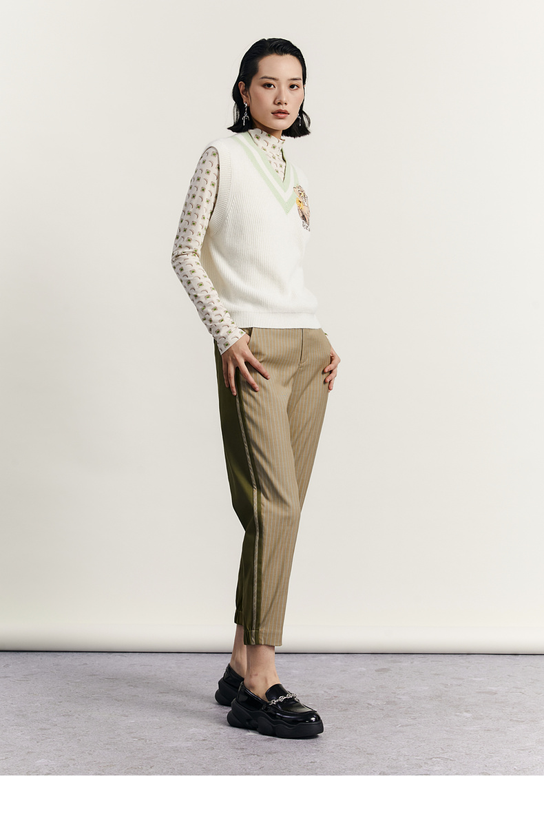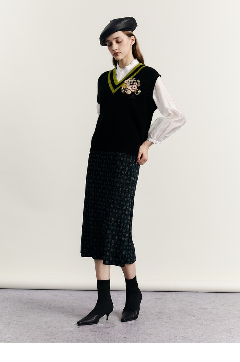 谜底V领套头针织背心女2023秋季新款复古学院风百搭毛衫233MZ1276