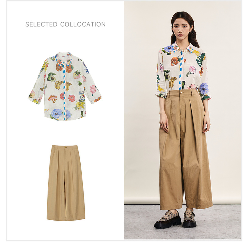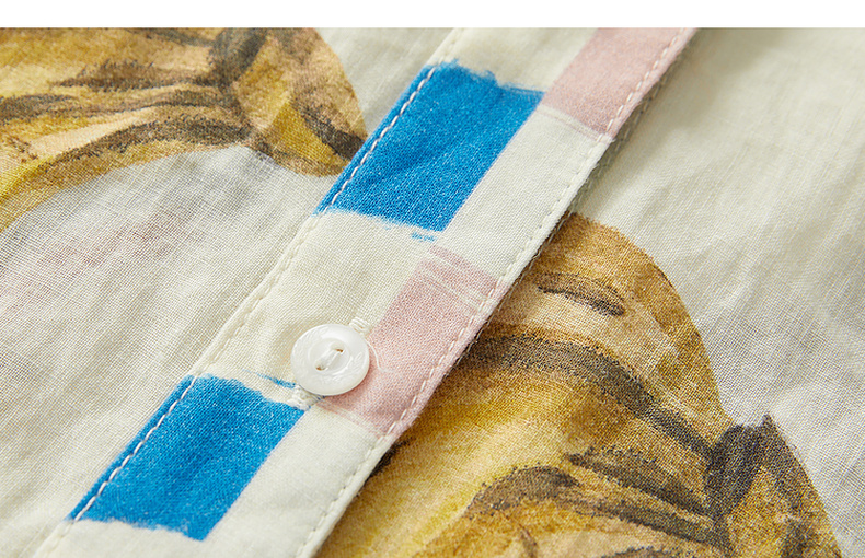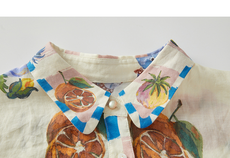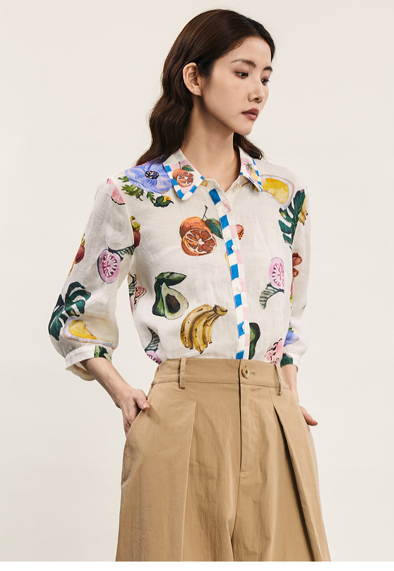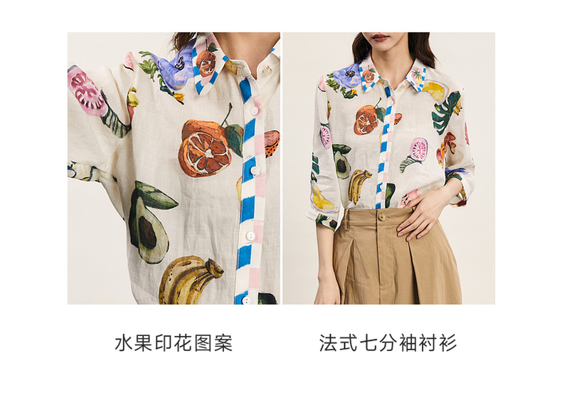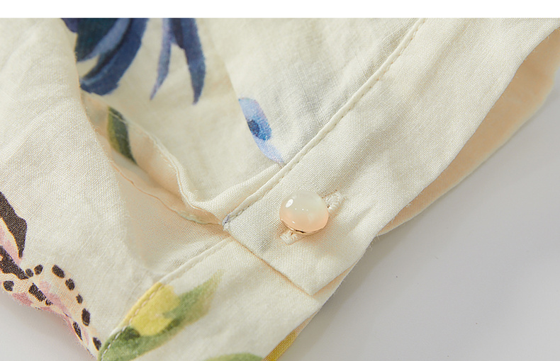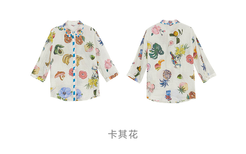 谜底花色衬衫七分袖女2024年夏款复古优雅苎麻透气衬衣242MC0537