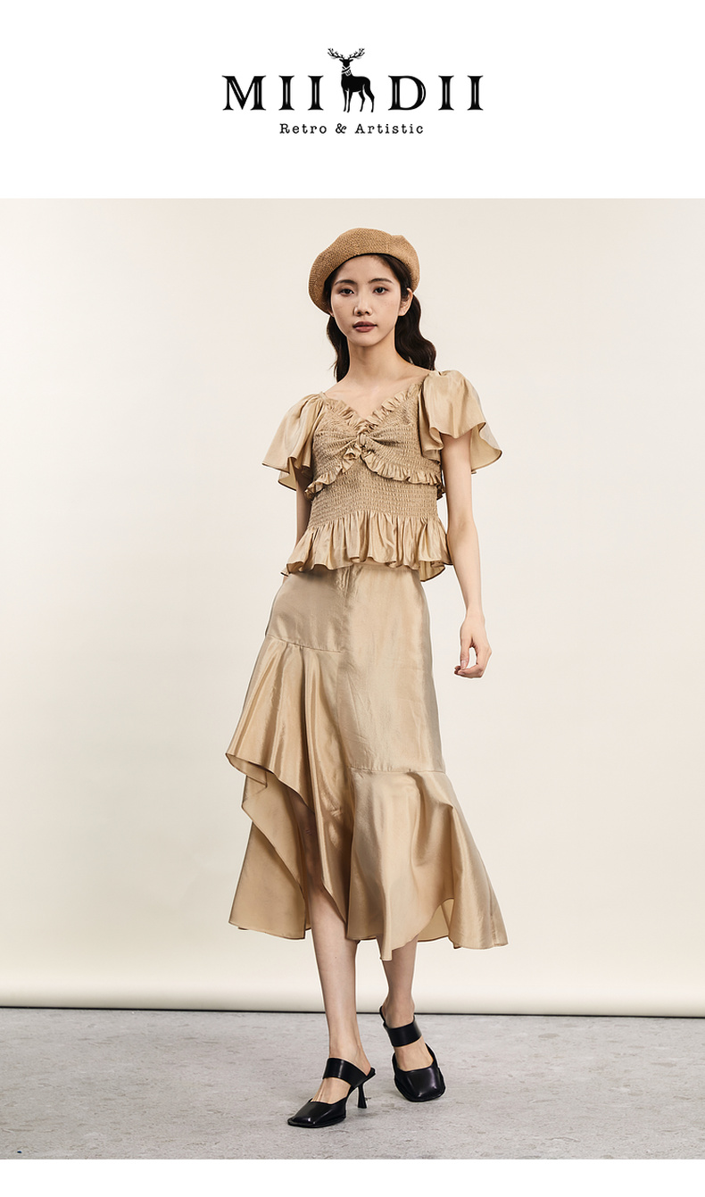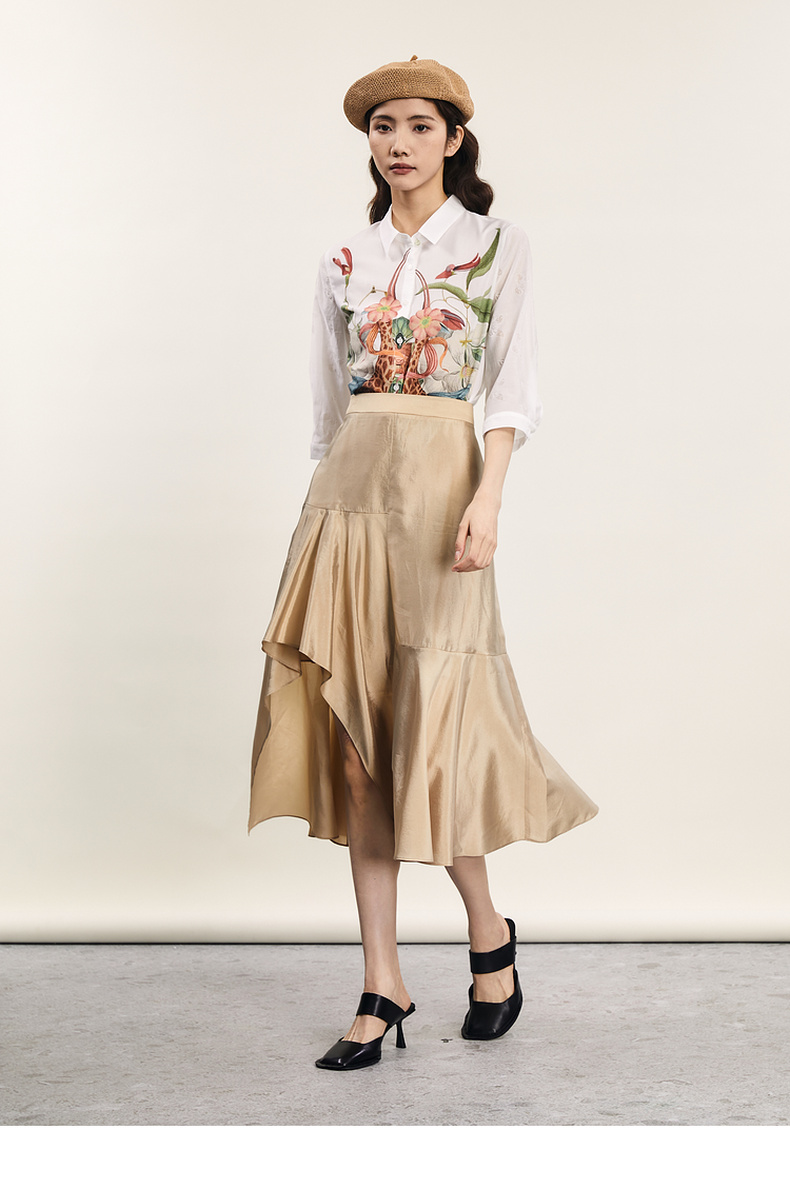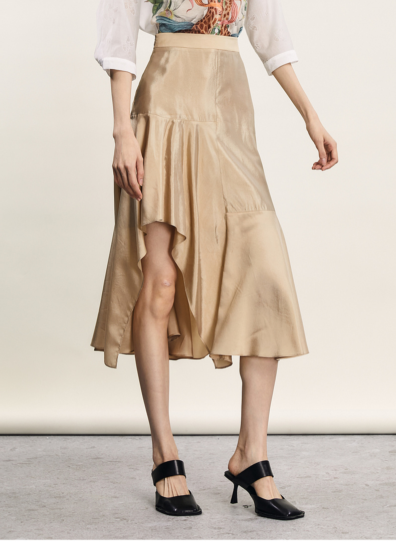 谜底不规则半身裙2024年夏季新品复古优雅亲肤A型长半裙242MB0600