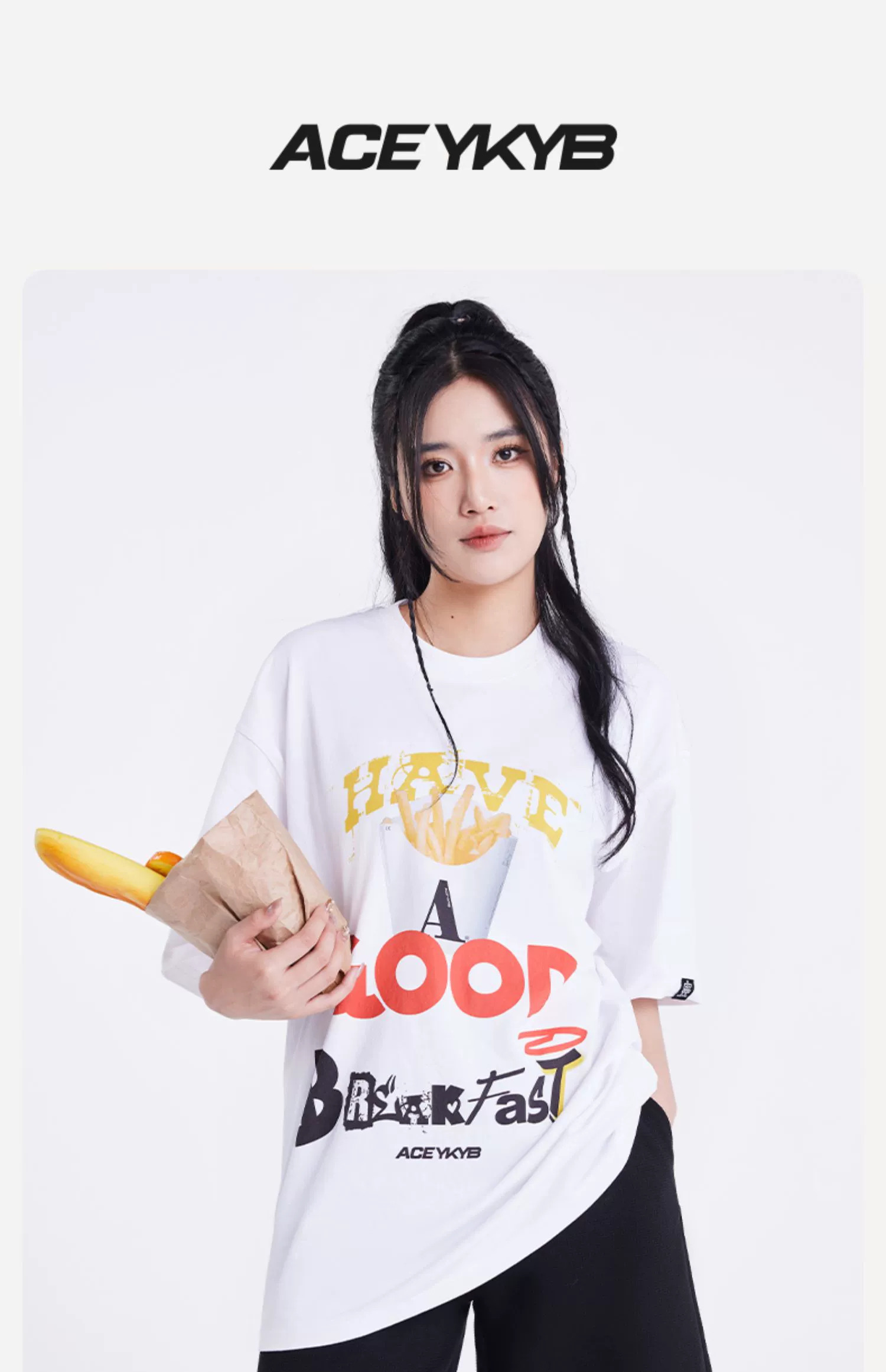 ACEYKYB黄子韬薯条印花T恤男女2025夏季新款美式宽松休闲短袖中性 商品图0