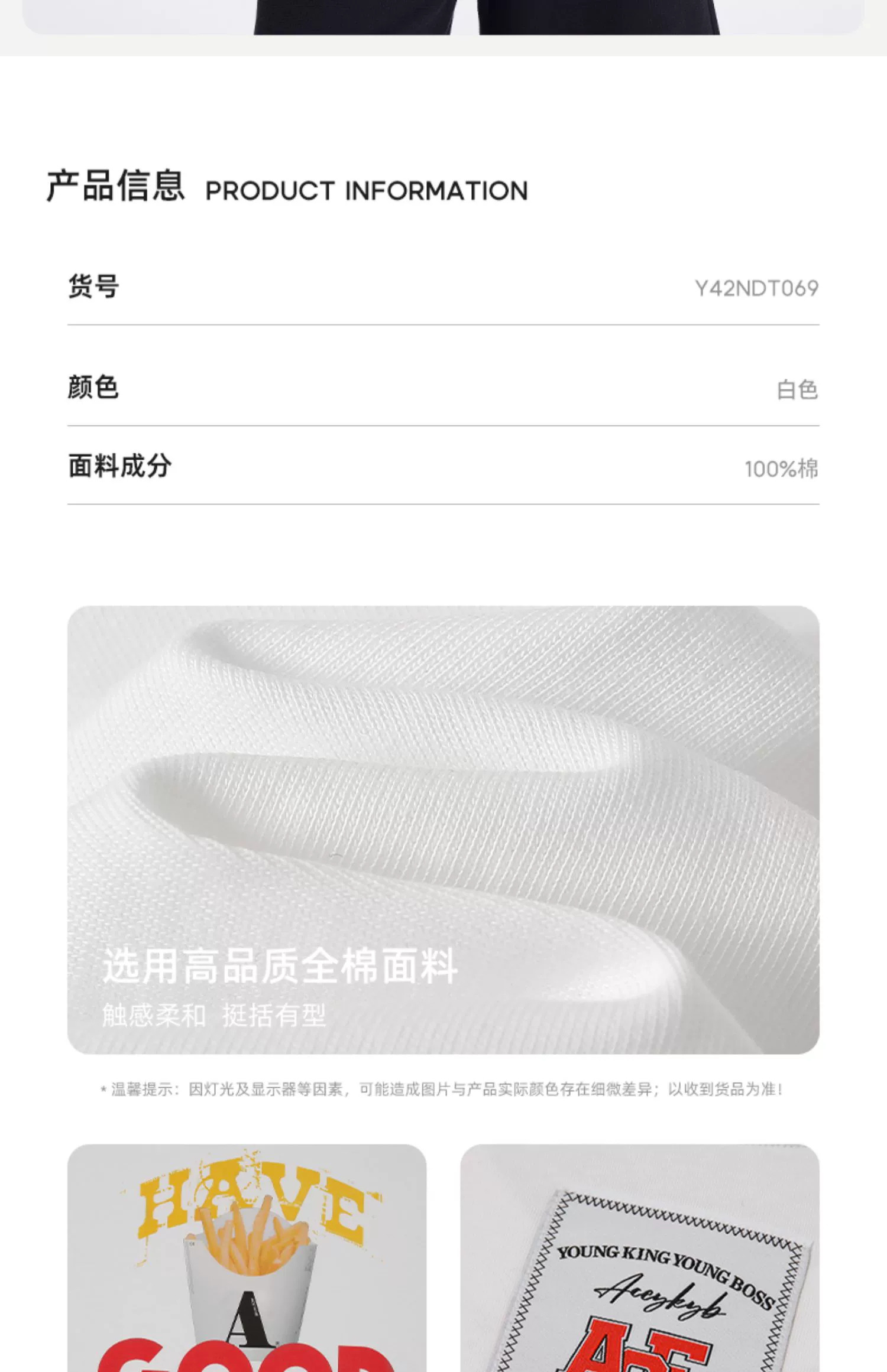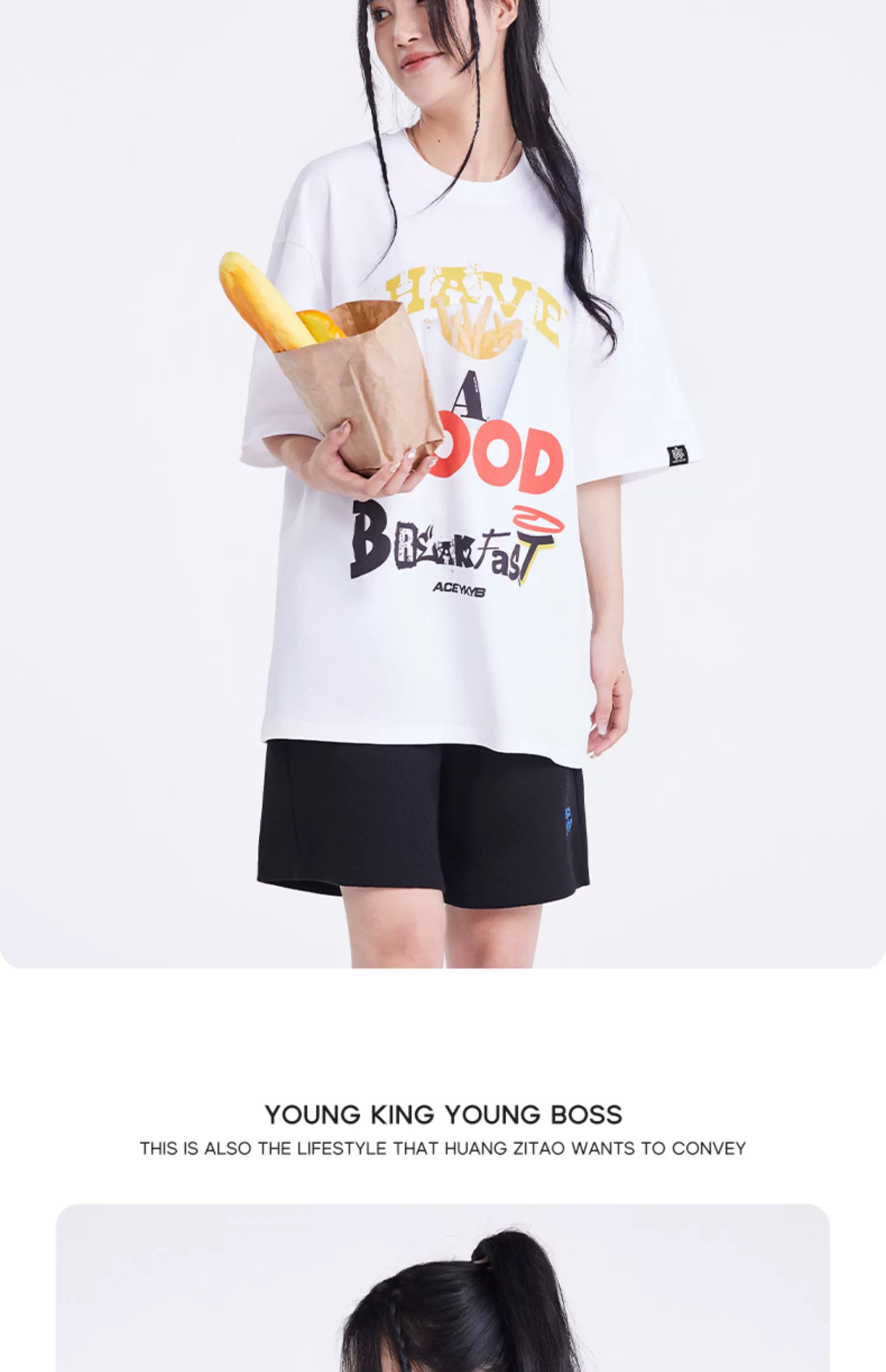 ACEYKYB黄子韬薯条印花T恤男女2025夏季新款美式宽松休闲短袖中性 商品图2