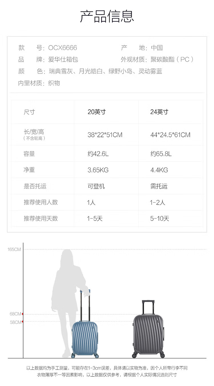 爱华仕 铝框行李箱24寸蓝色 OCX6666-24