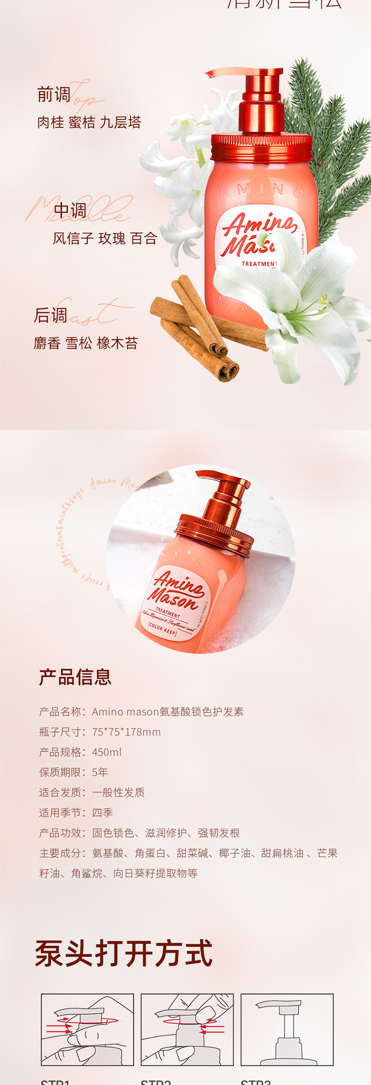 AminoMason阿蜜浓梅森 氨基酸锁色炫亮护发素450ml【保质期:2026年11月24日】