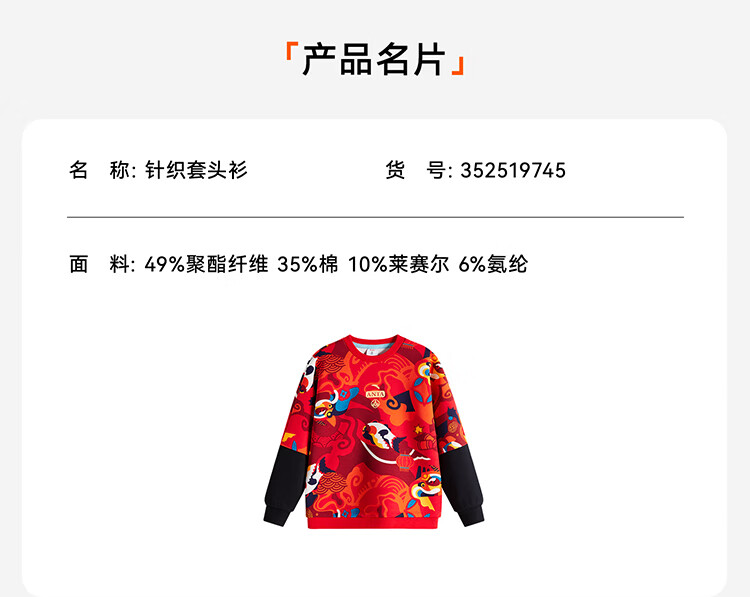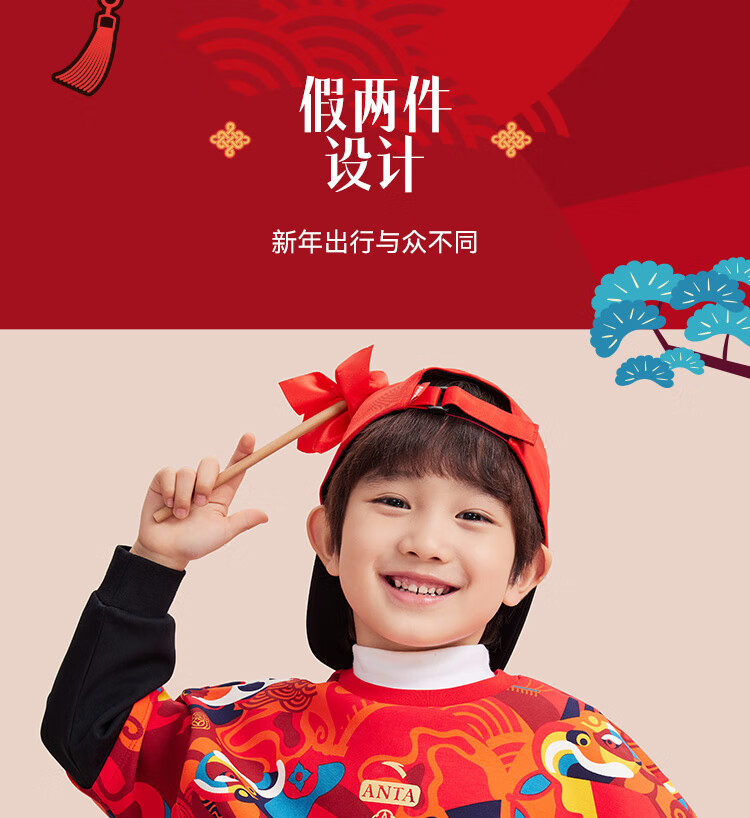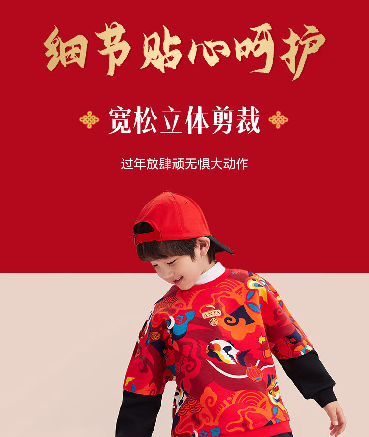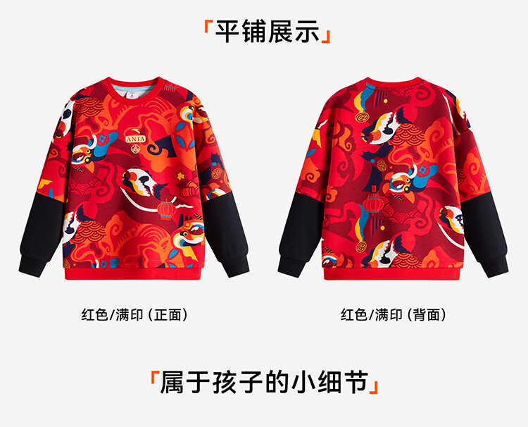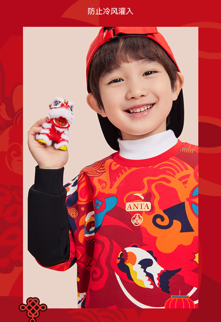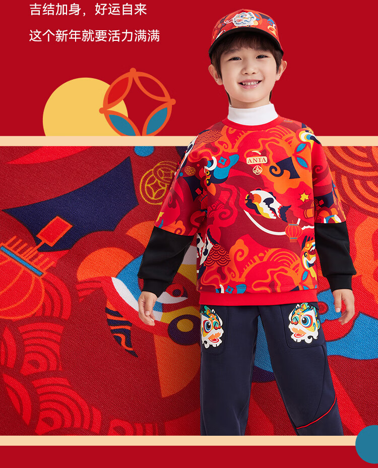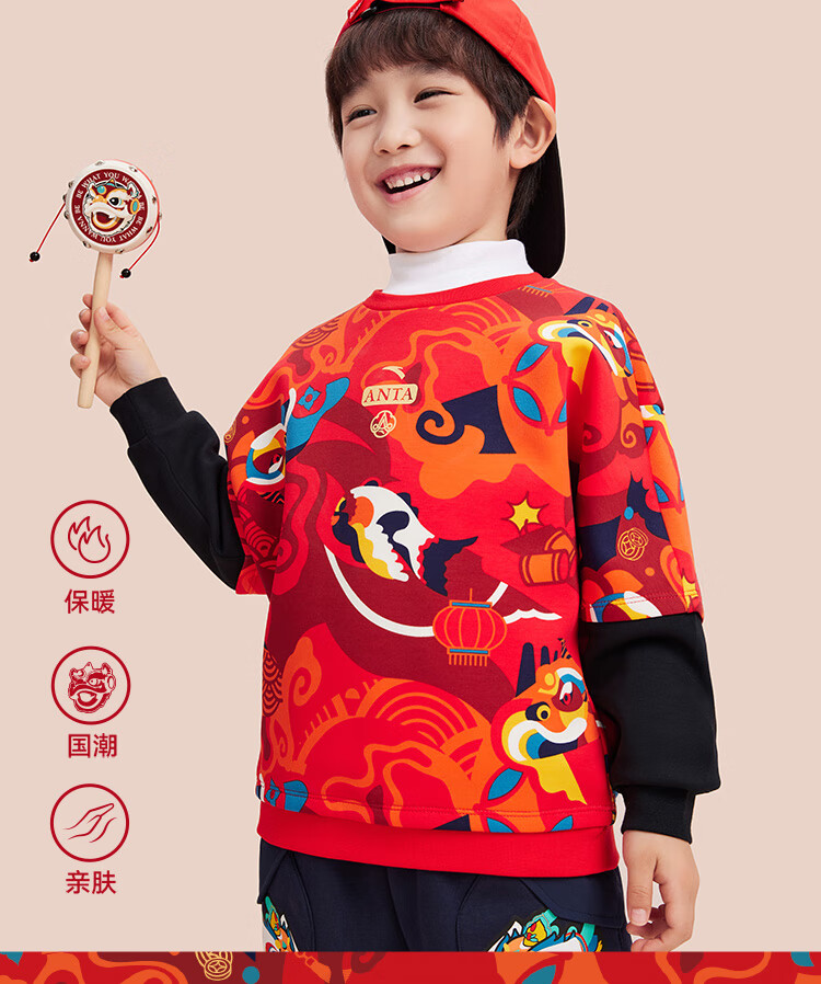 安踏儿童卫衣男童宝宝印花套头衫2025春季保暖上衣352519745