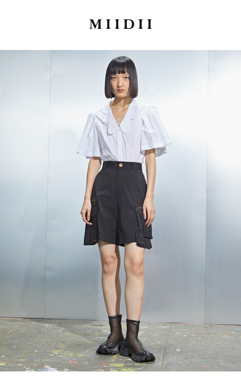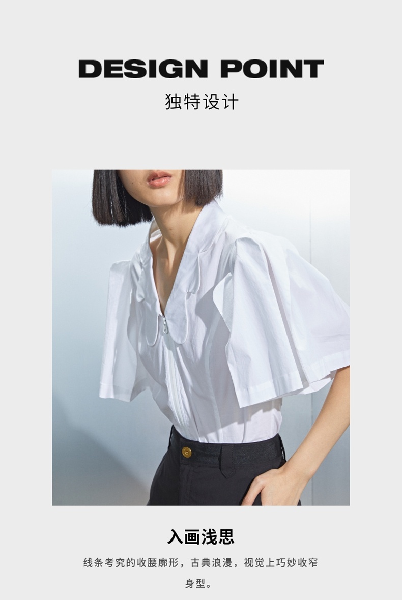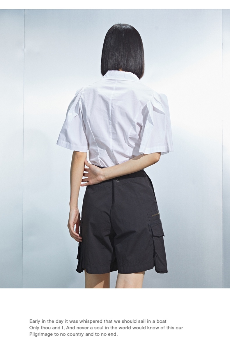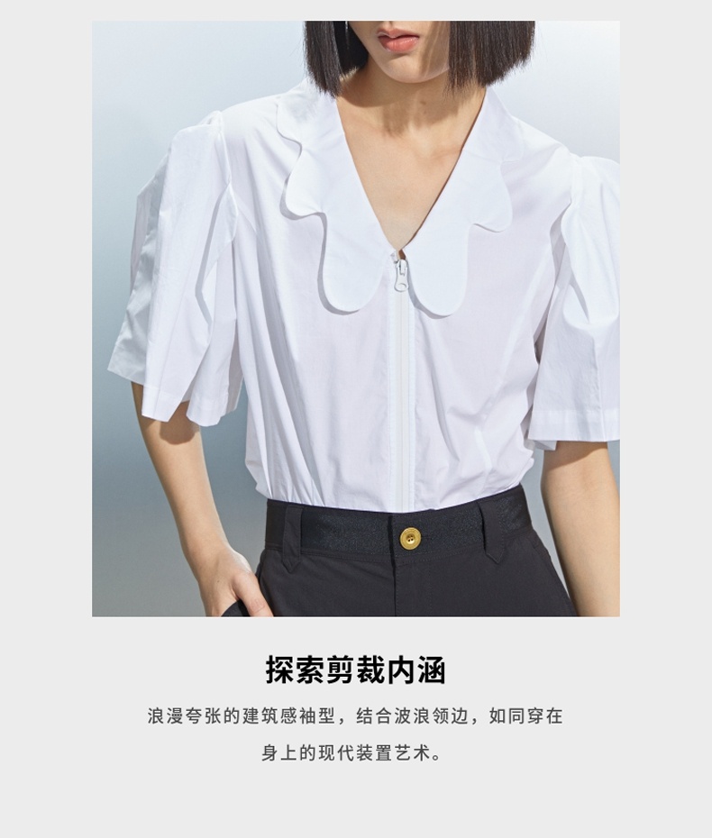 MIIDII/谜底21夏新品前卫时髦夸张灯笼袖收腰白衬衫女212MC0931