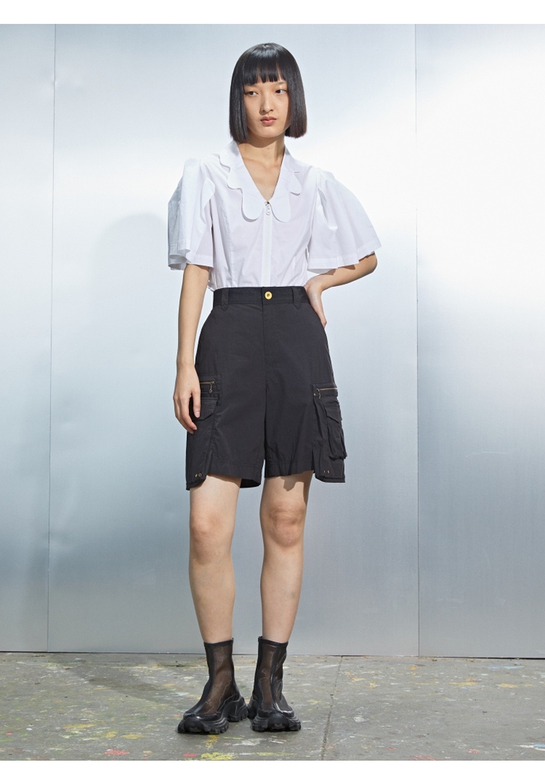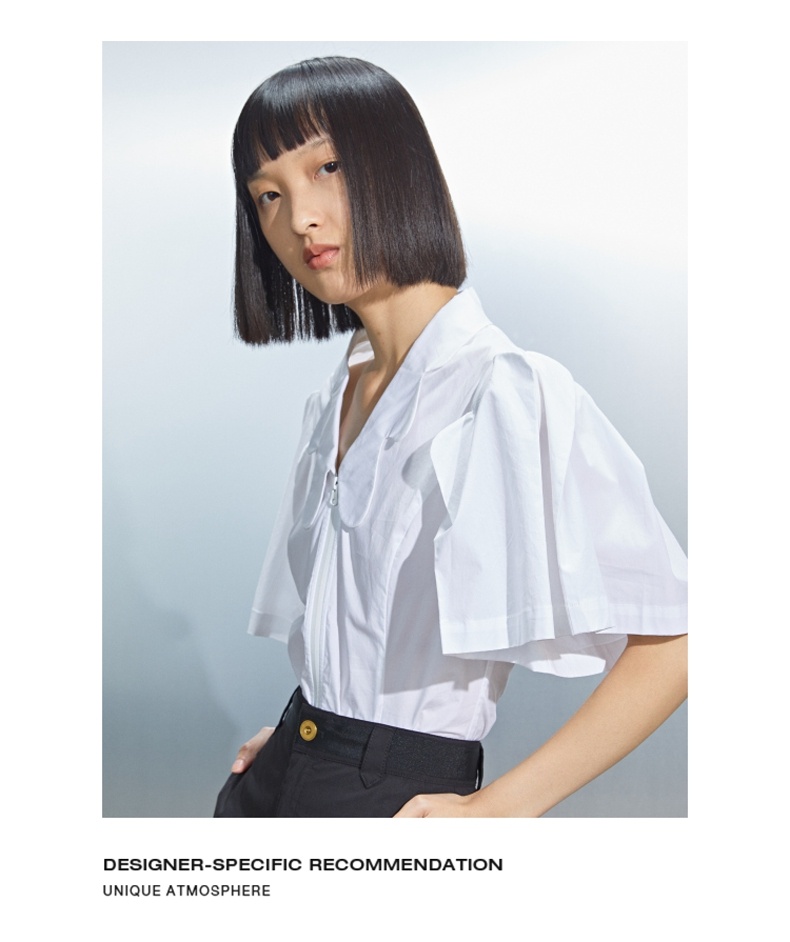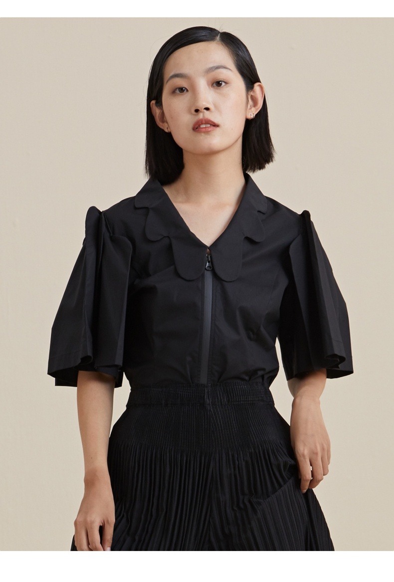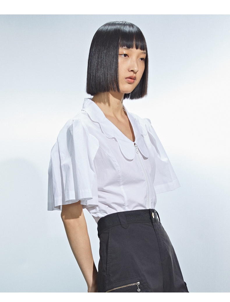 MIIDII/谜底21夏新品前卫时髦夸张灯笼袖收腰白衬衫女212MC0931