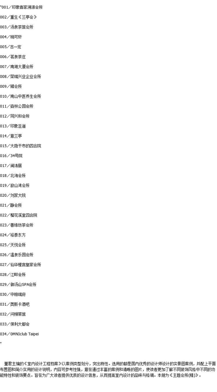 主题会所 室内设计工程档案 8980 室内设计装饰装修设计 中国林业出版社 畅销书