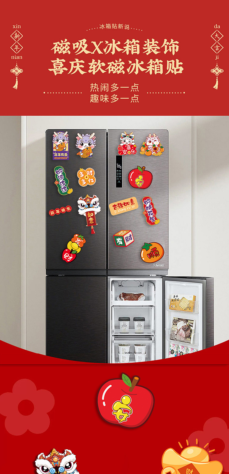 【家居电器均可贴❗️新年软磁创意冰箱贴】蛇年大吉,萌趣可爱,春节新年卡通图案,萌趣可爱蛇年特价