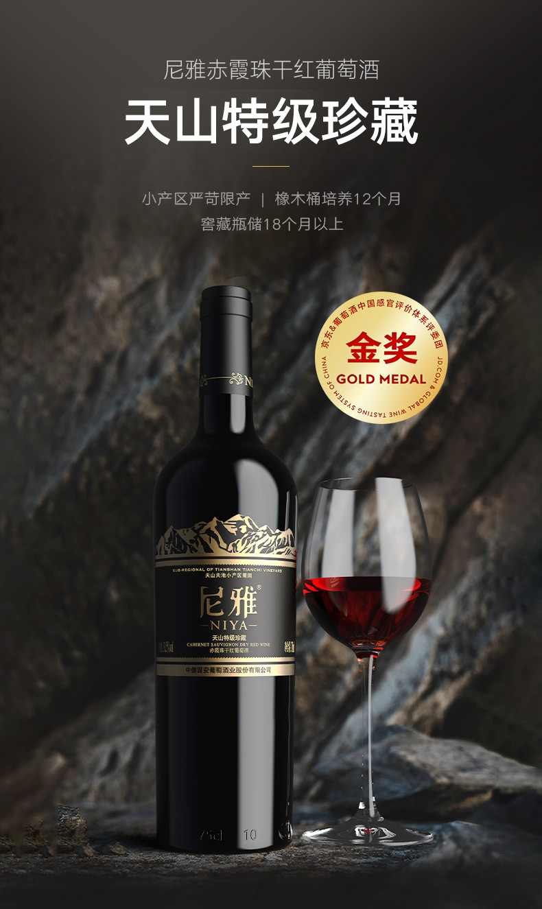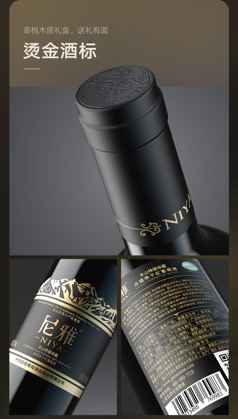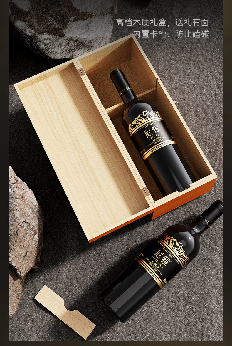 【热卖】尼雅天山干红珍藏 干红葡萄酒 木盒包装单只 750ml
