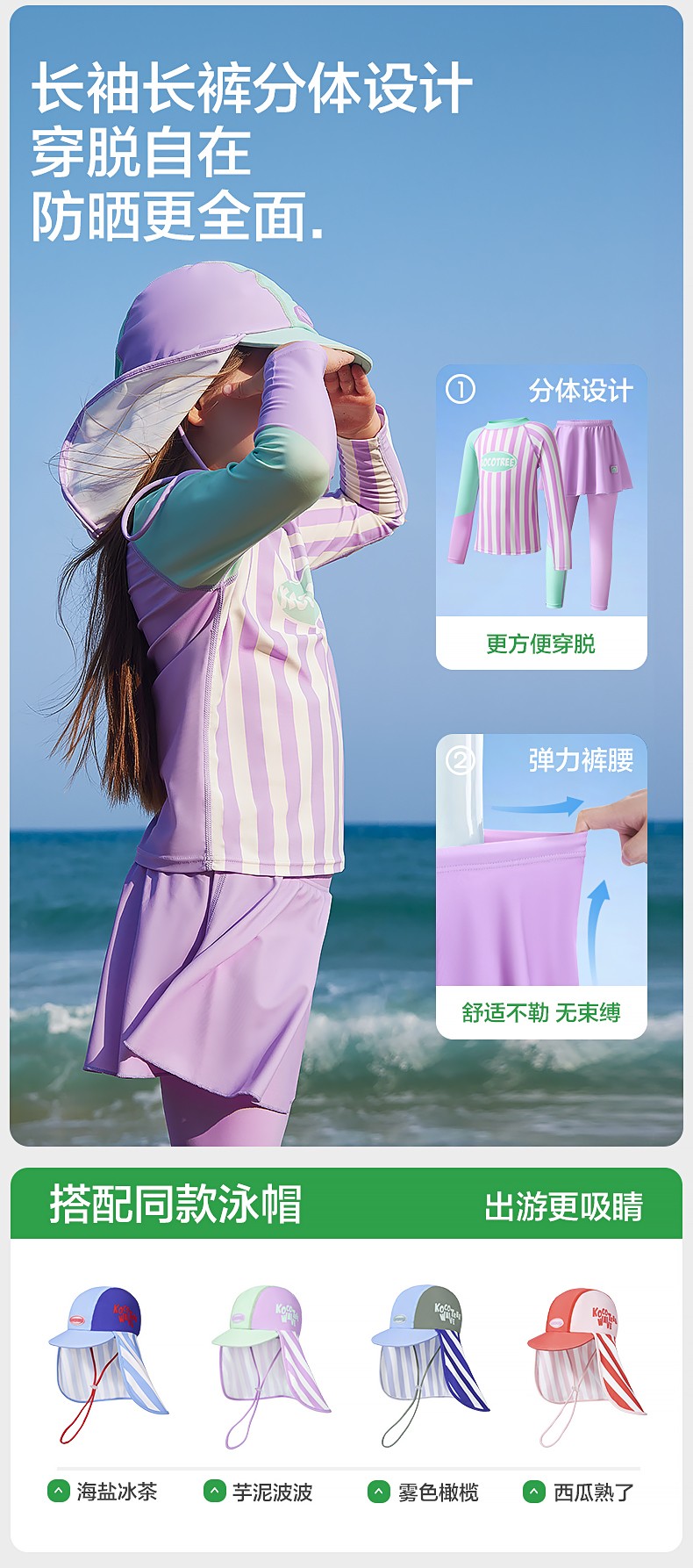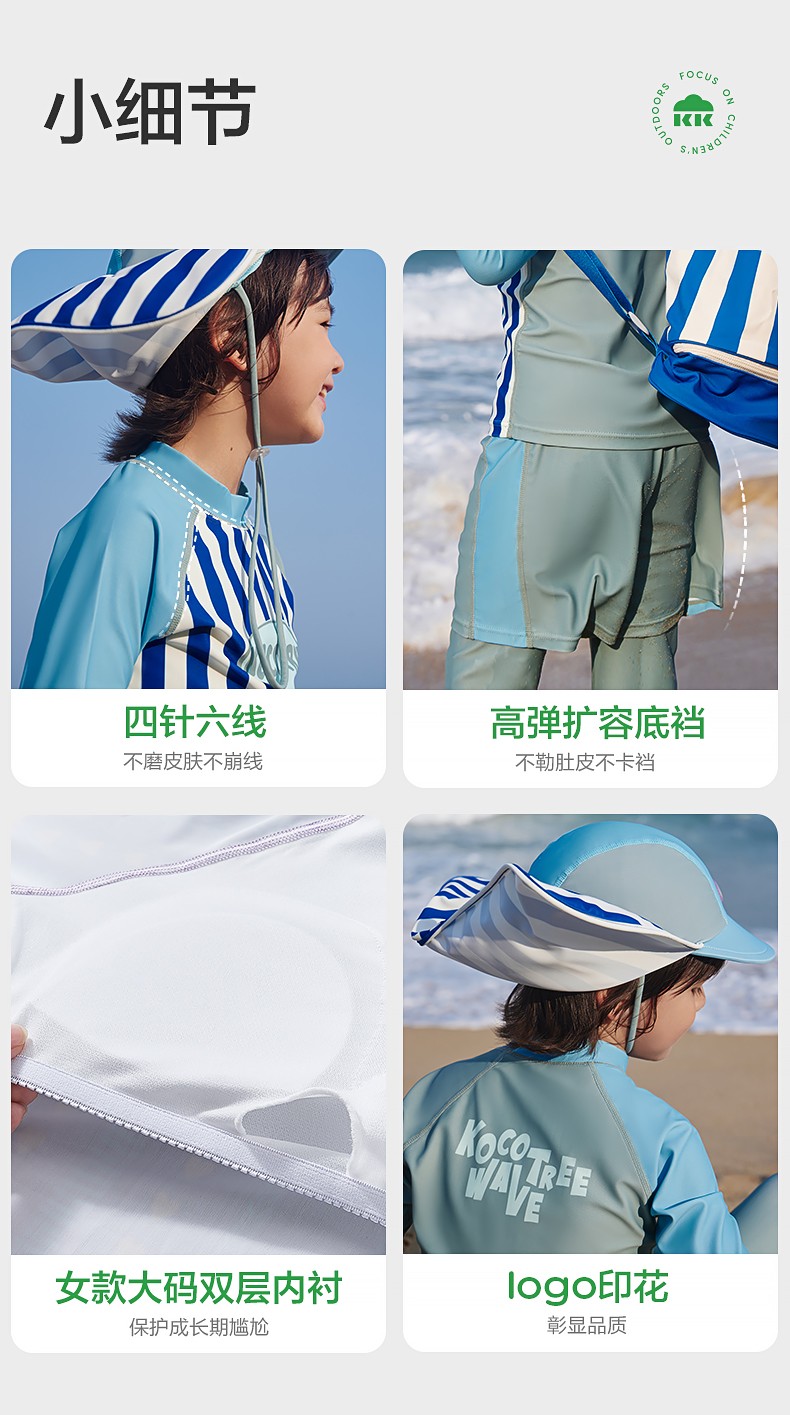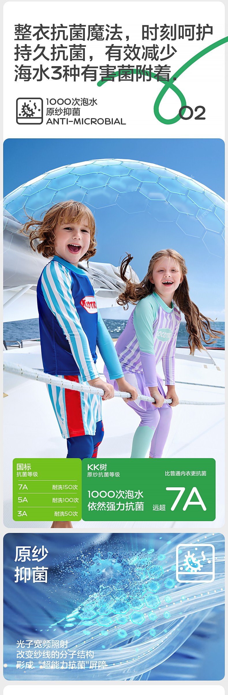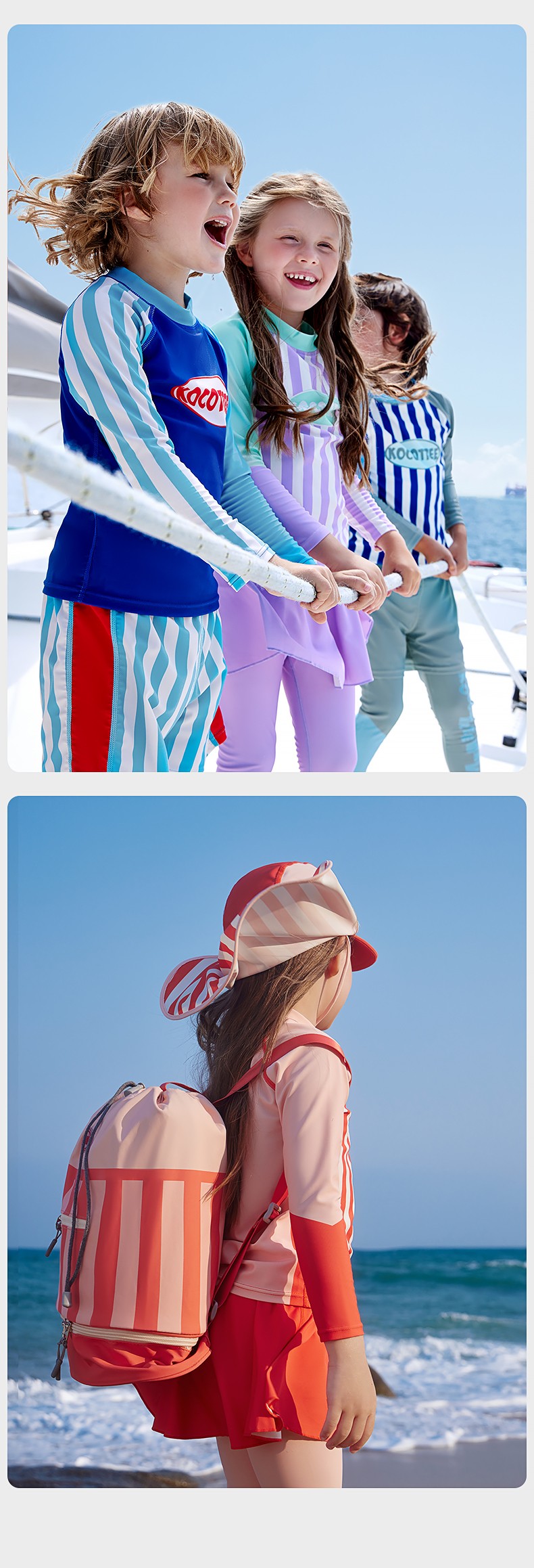优选丨KK树儿童泳衣裤女孩分体泳衣a类男童女童游泳长袖防晒中大童泳装伦敦海港条纹长袖防晒泳衣