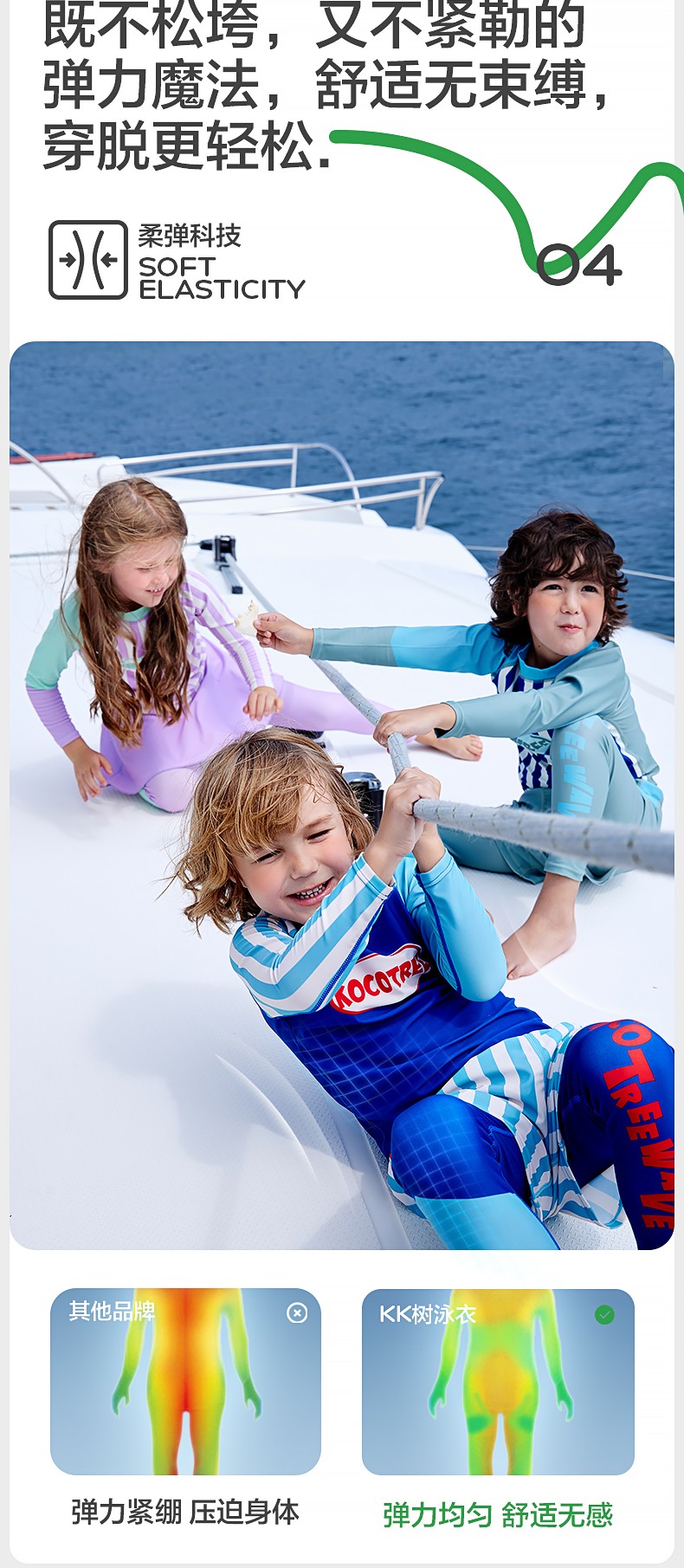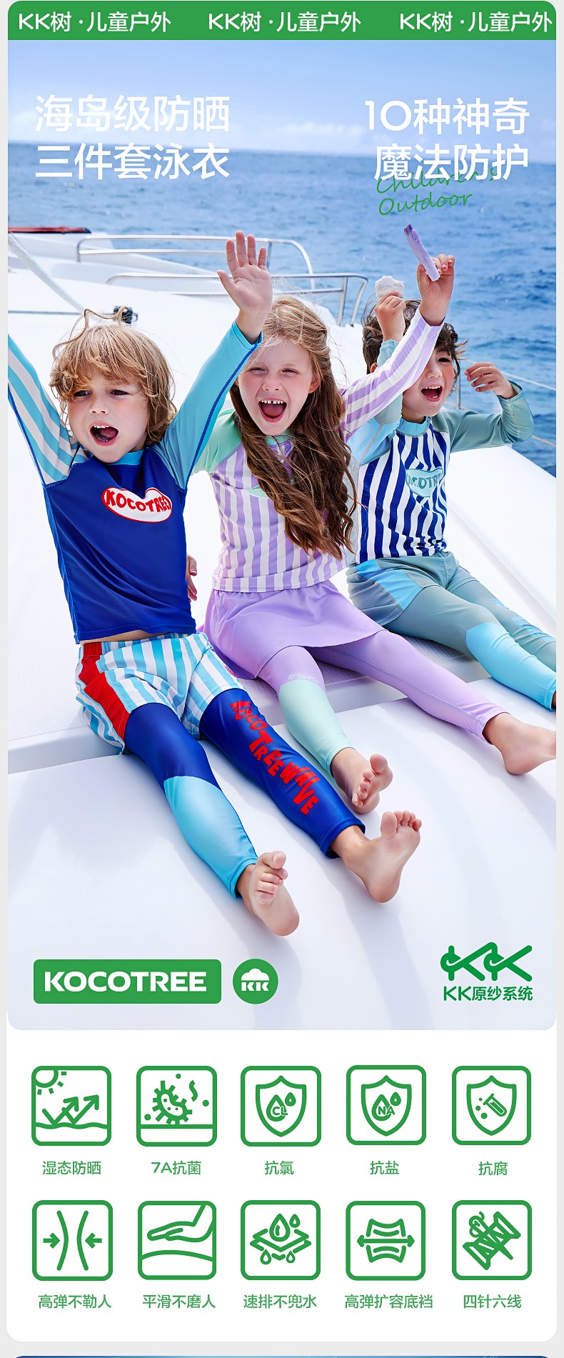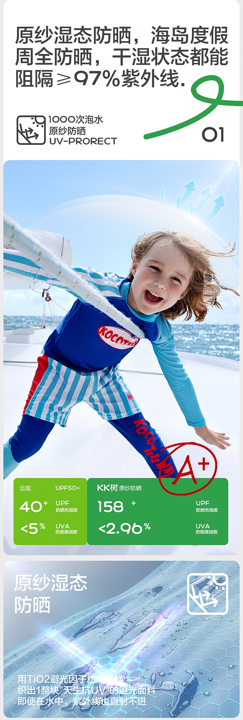 优选丨KK树儿童泳衣裤女孩分体泳衣a类男童女童游泳长袖防晒中大童泳装伦敦海港条纹长袖防晒泳衣