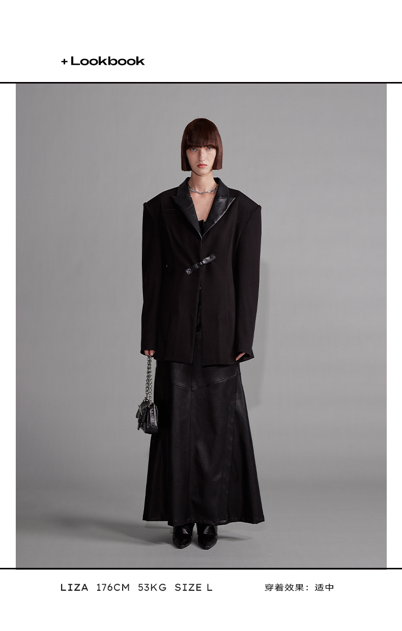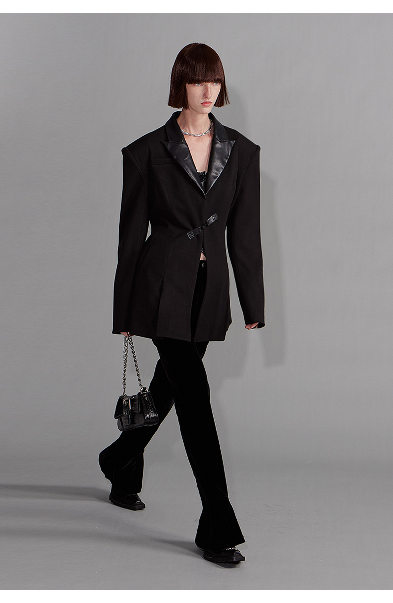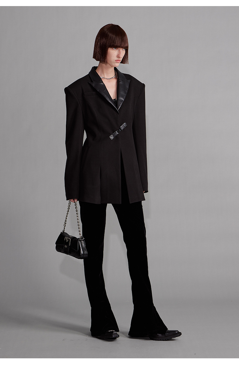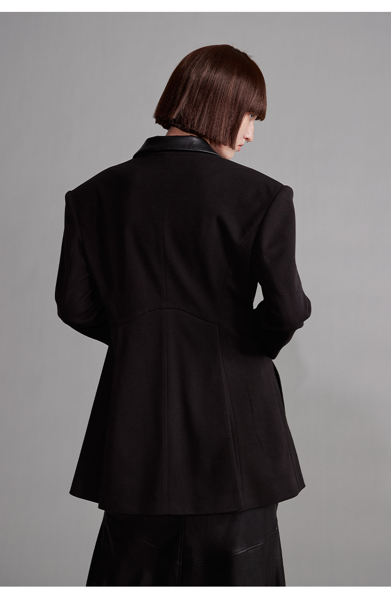 NUTH“征象背后”|黑色拼皮西装收腰修身设计西装外套