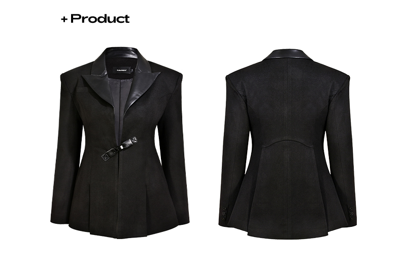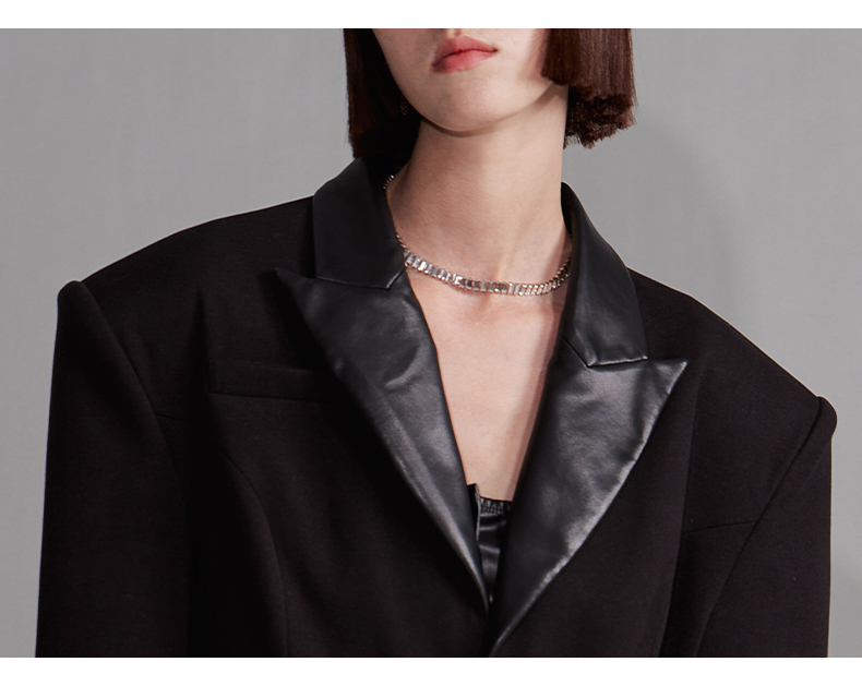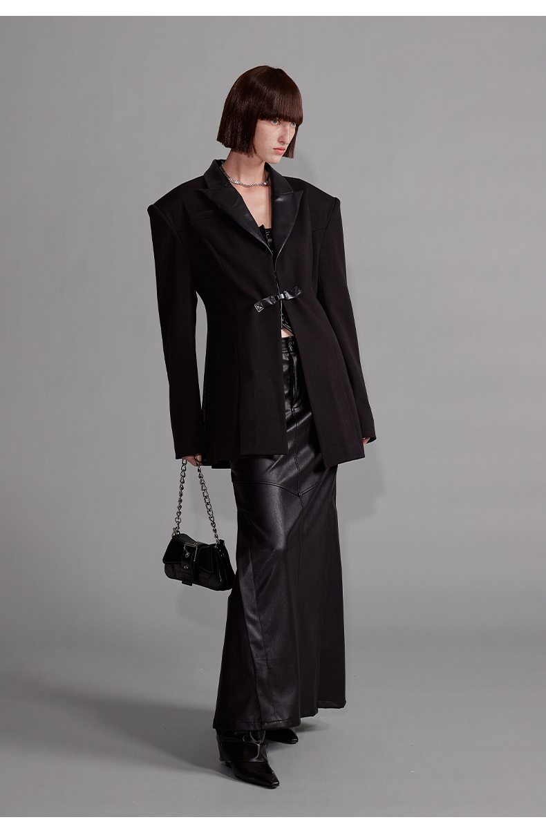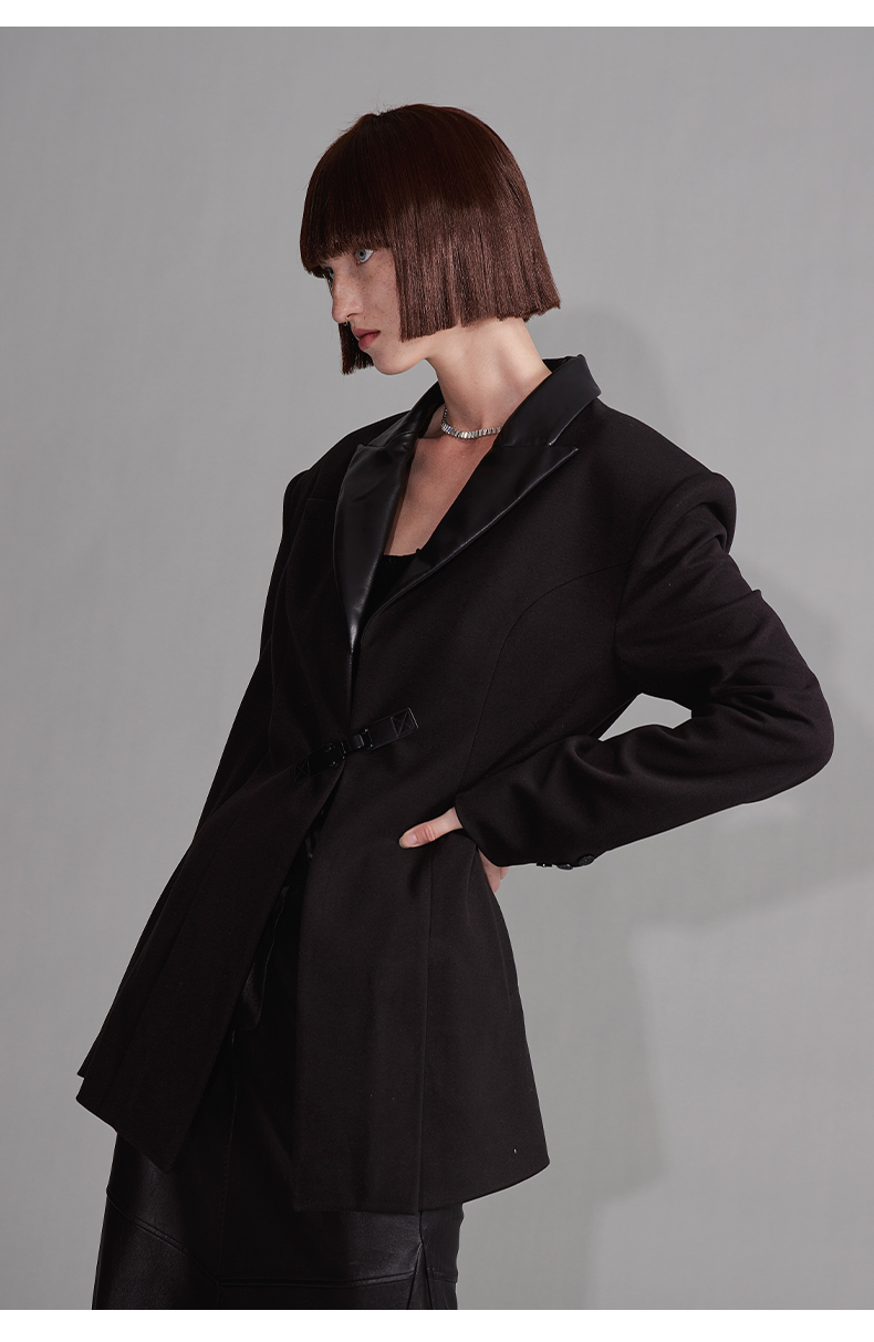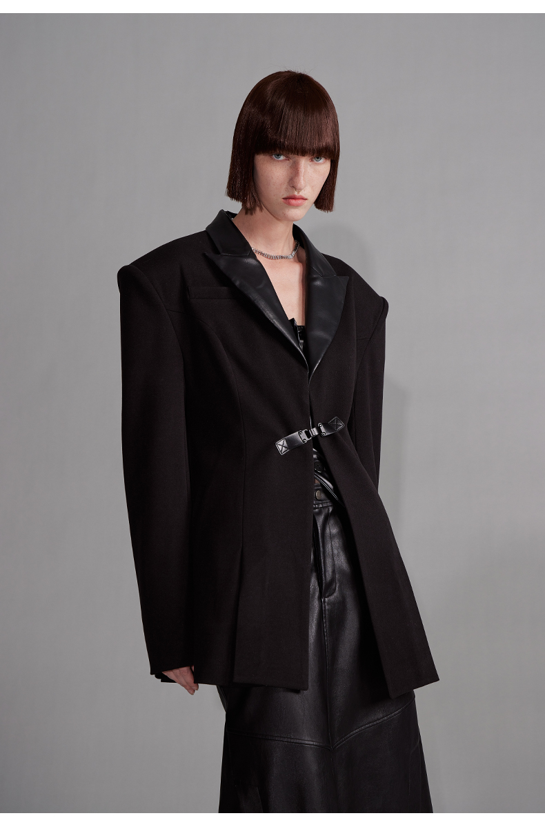 NUTH“征象背后”|黑色拼皮西装收腰修身设计西装外套