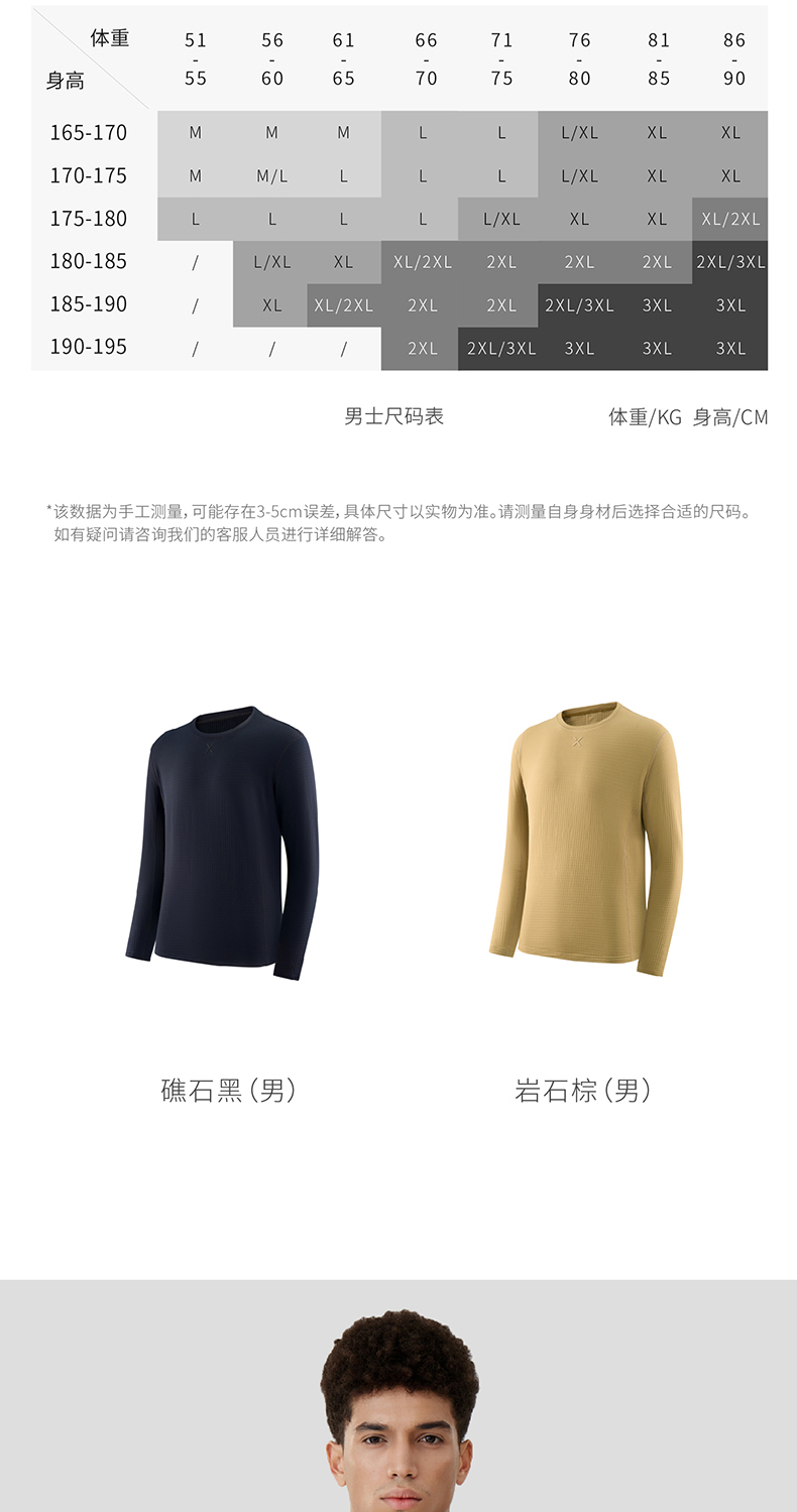 TAGX探观鲸吸纱男款圆领打底衫春季新款圆领修身保暖运动上衣
