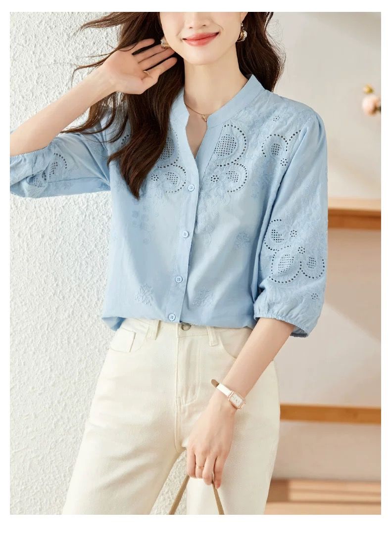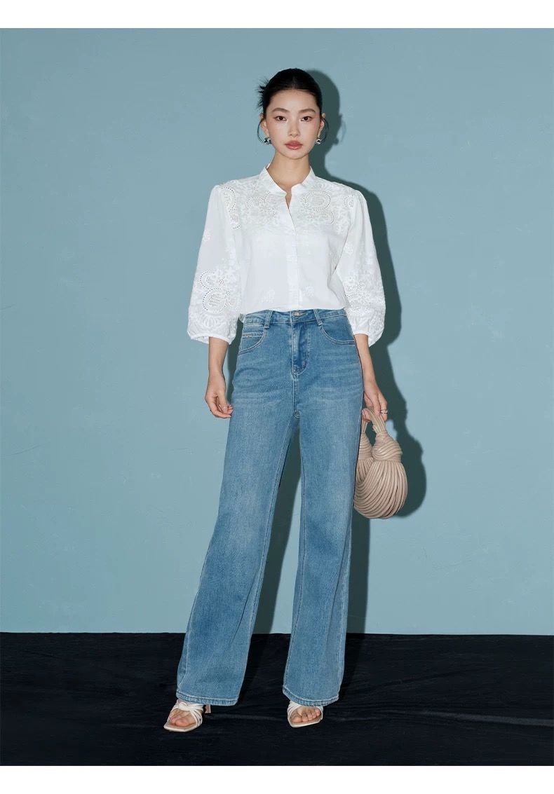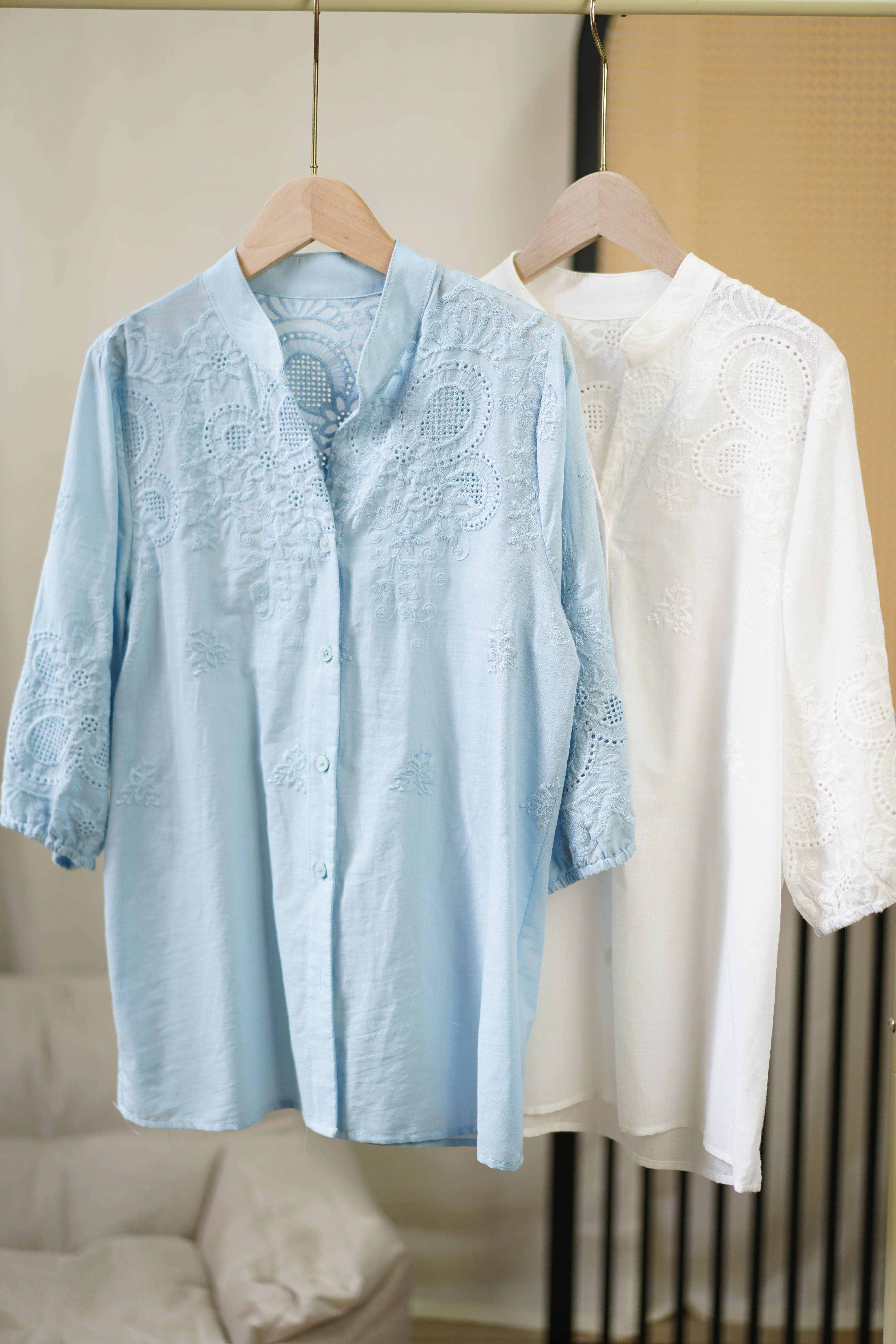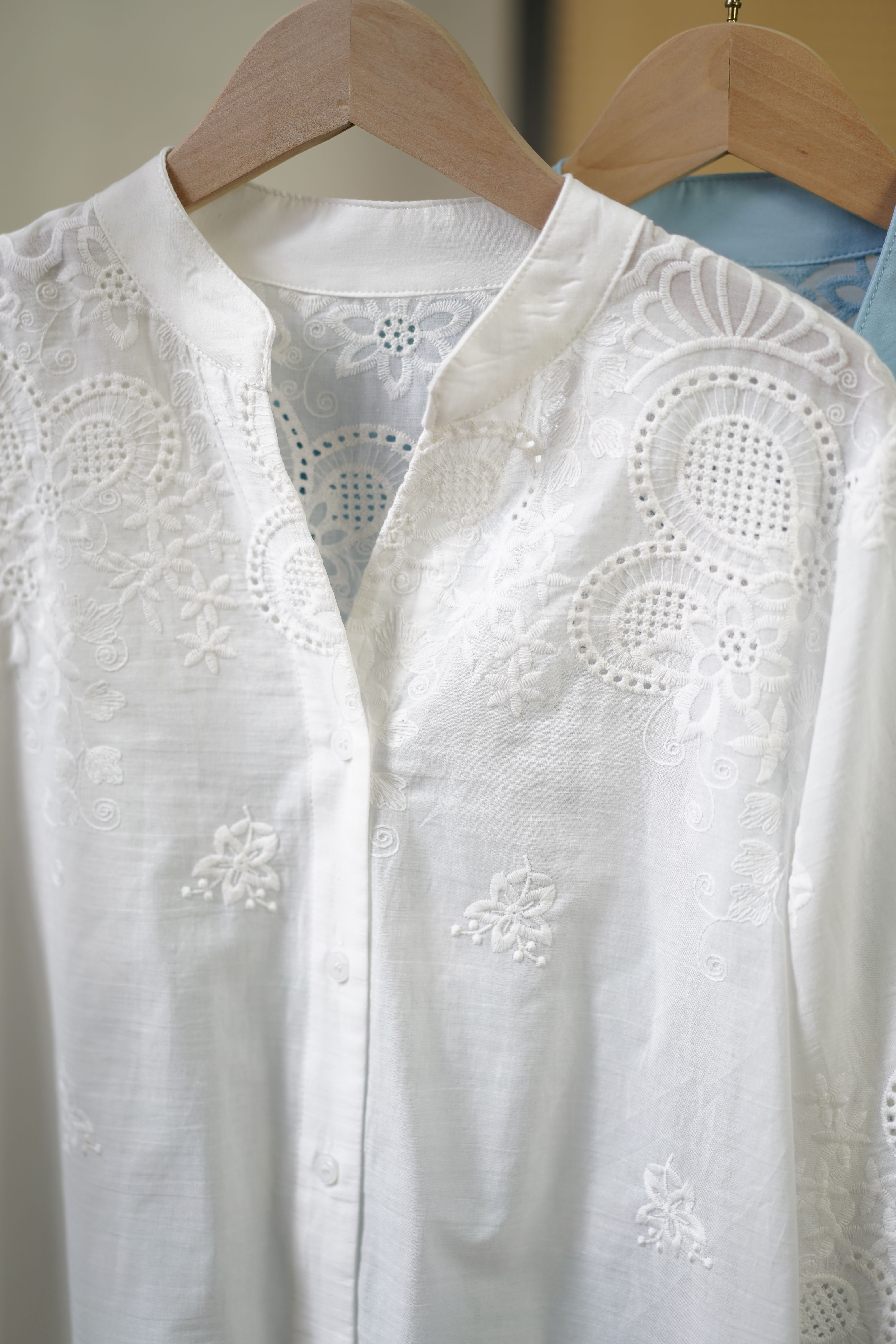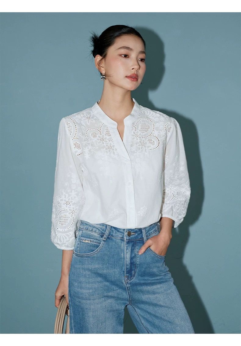 ORIGNAL&CO纯棉缕空刺绣V领衬衫【下单前100名,即送白色吊带内搭】