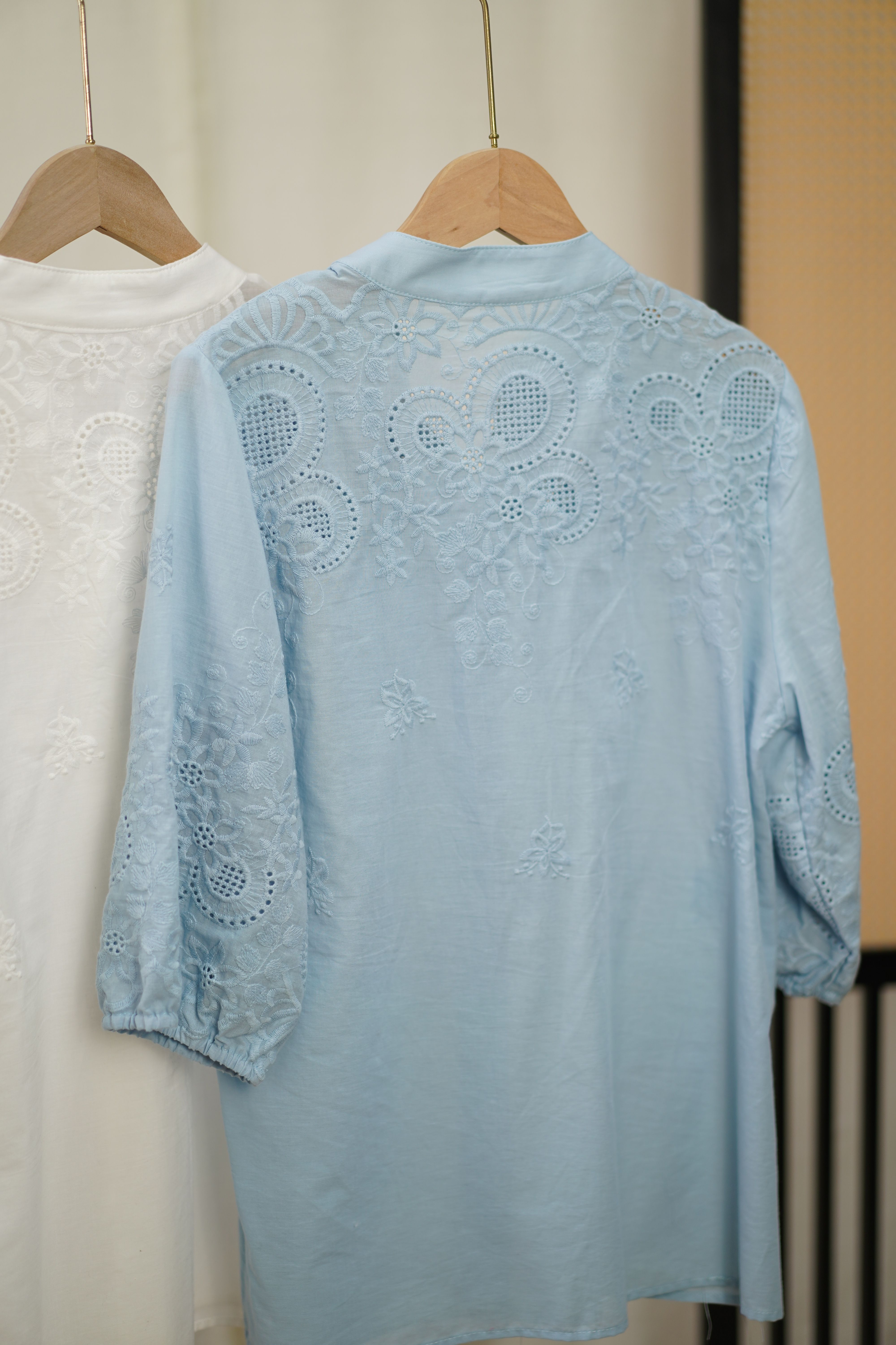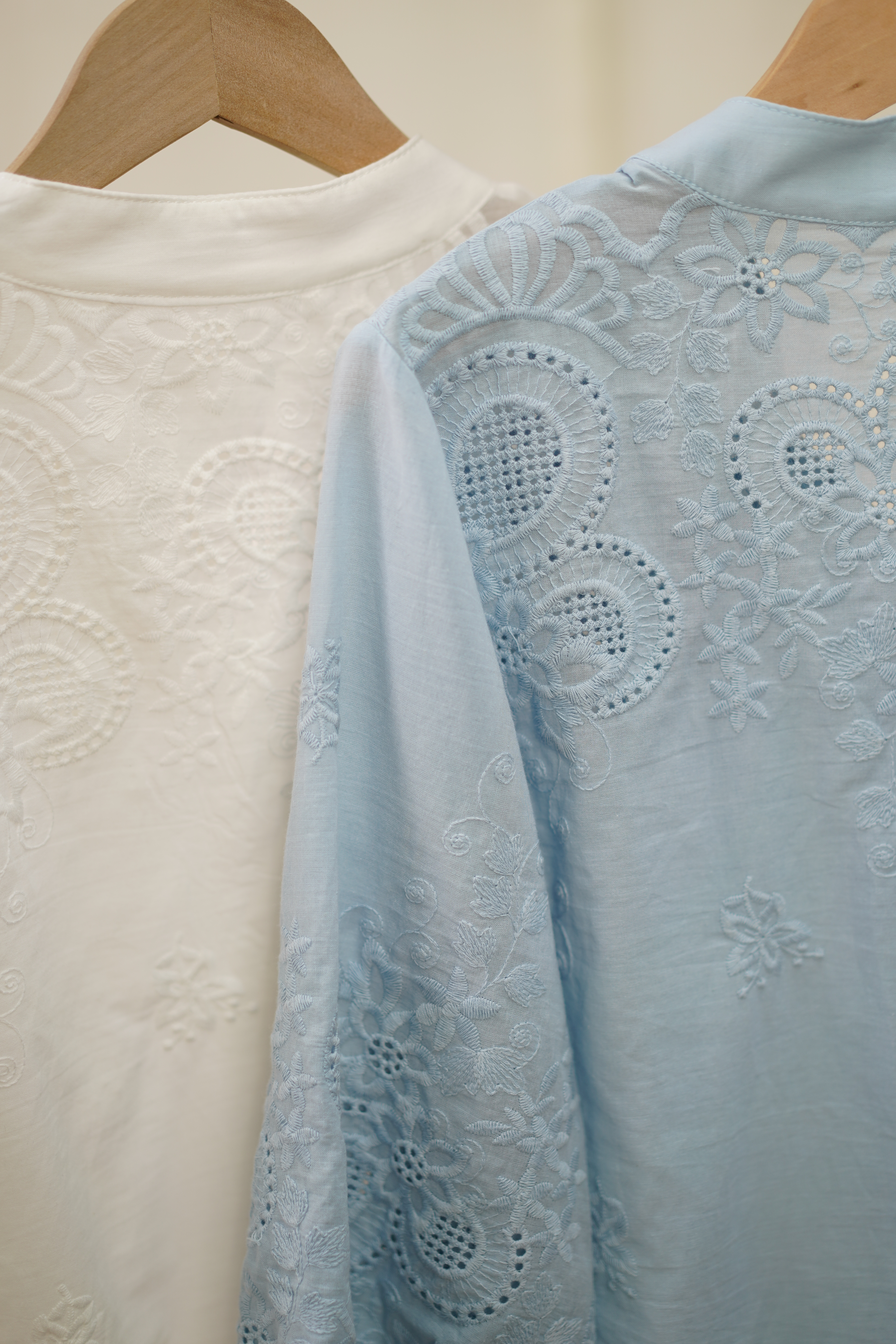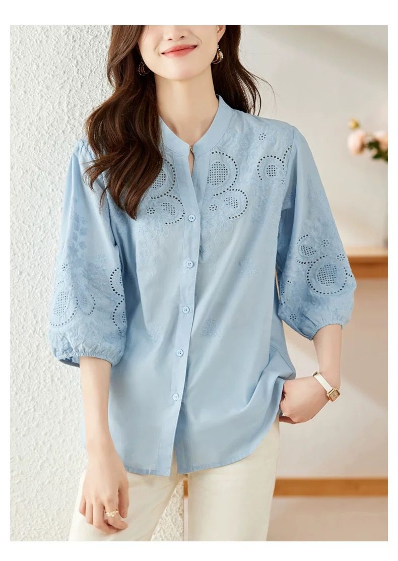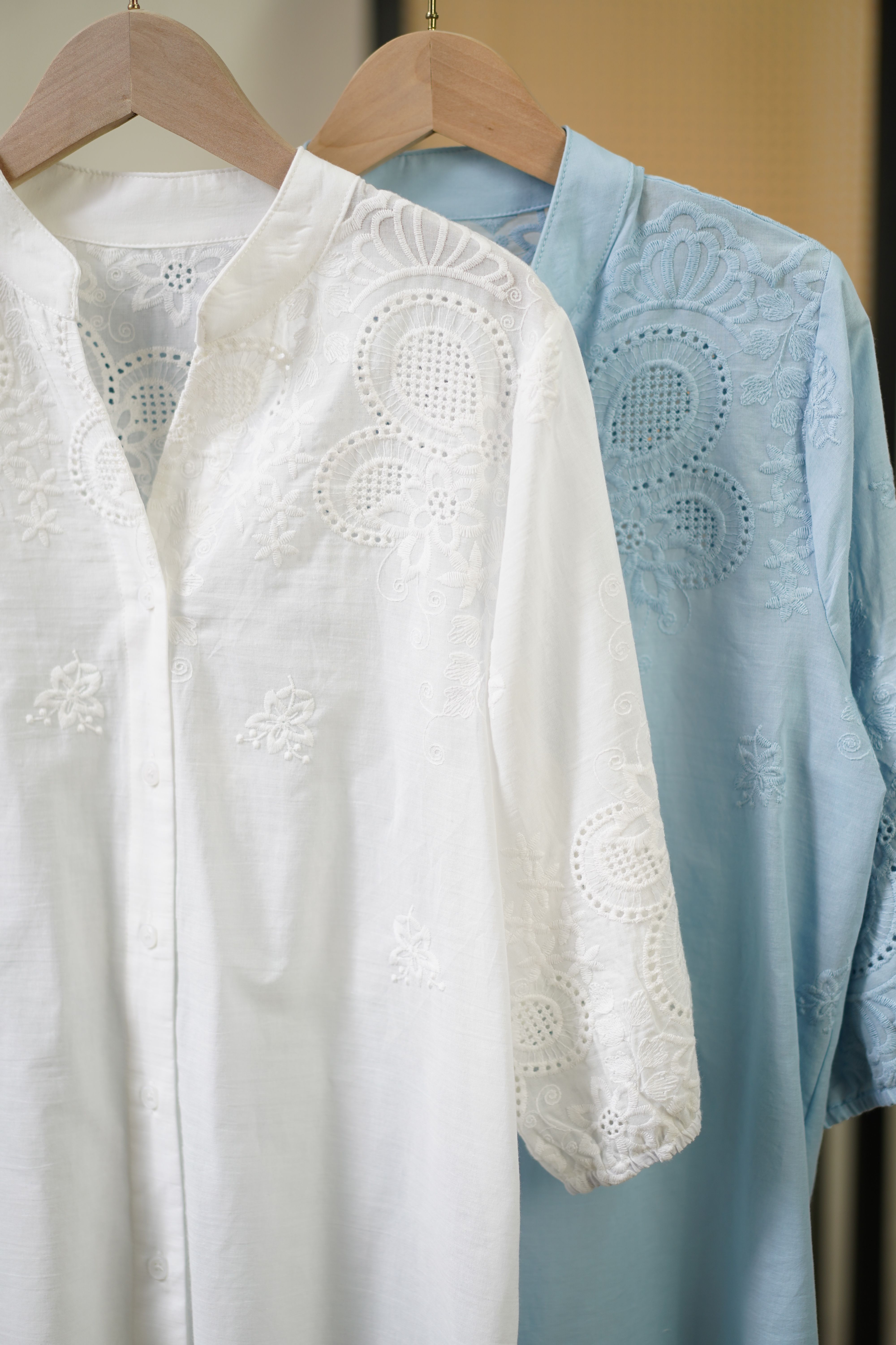 ORIGNAL&CO纯棉缕空刺绣V领衬衫【下单前100名,即送白色吊带内搭】