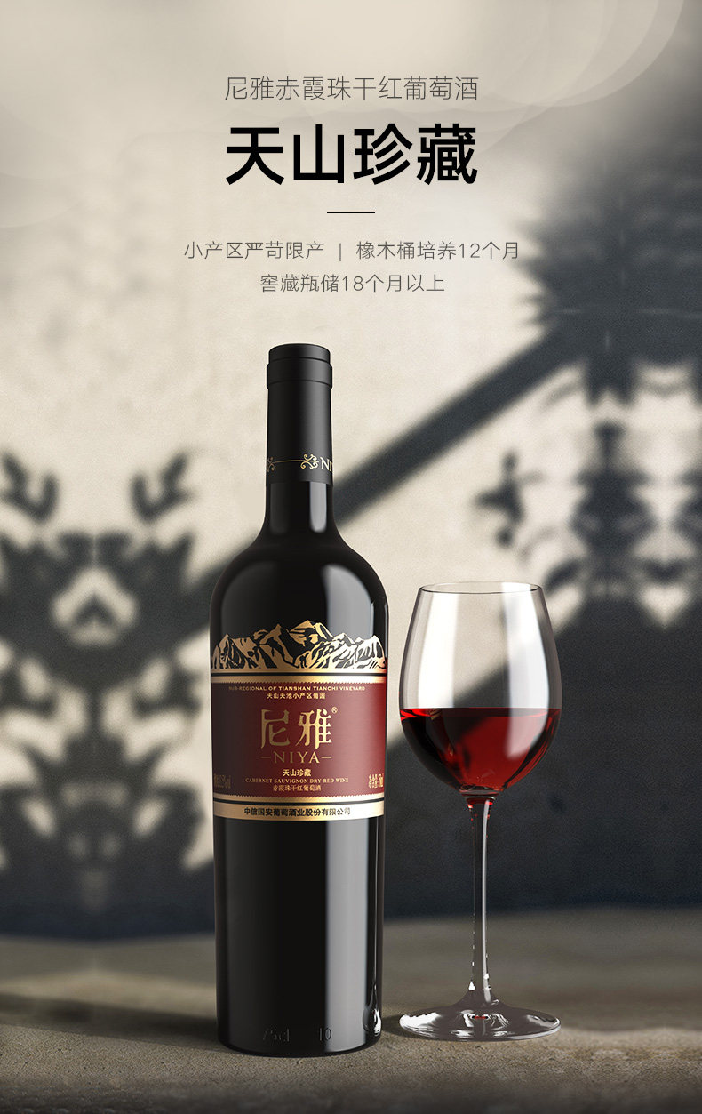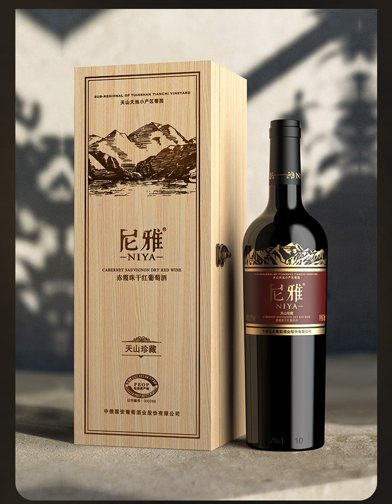 【热卖】尼雅天山干红珍藏 干红葡萄酒 木盒包装单只 750ml