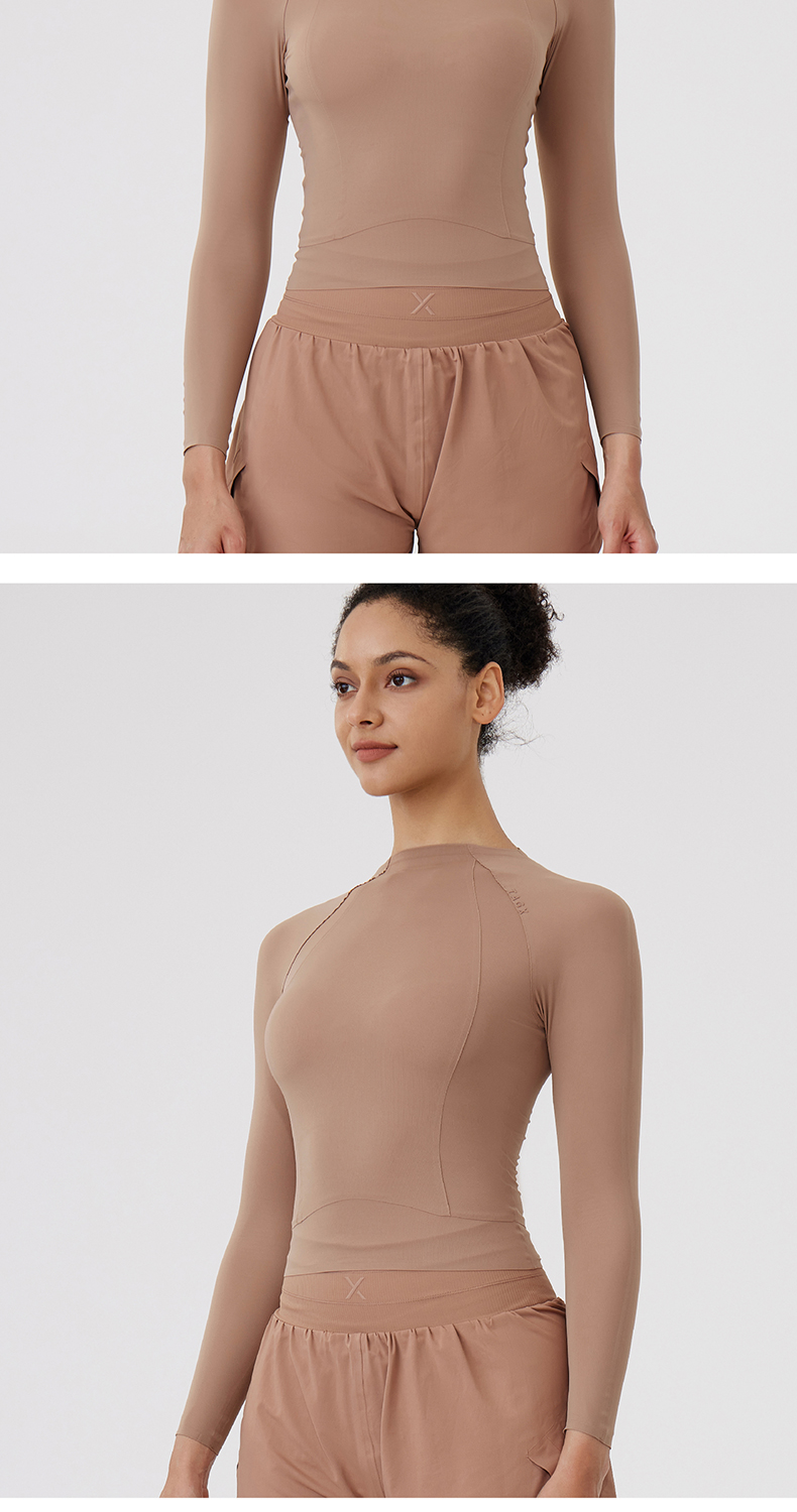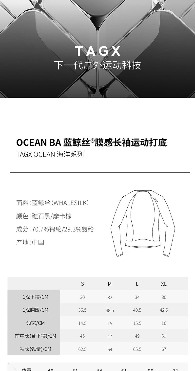 TAGX探观蓝鲸丝运动长袖打底早春新款圆领修身运动时尚上衣