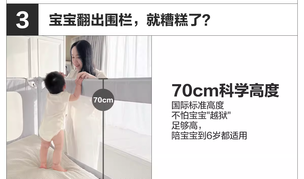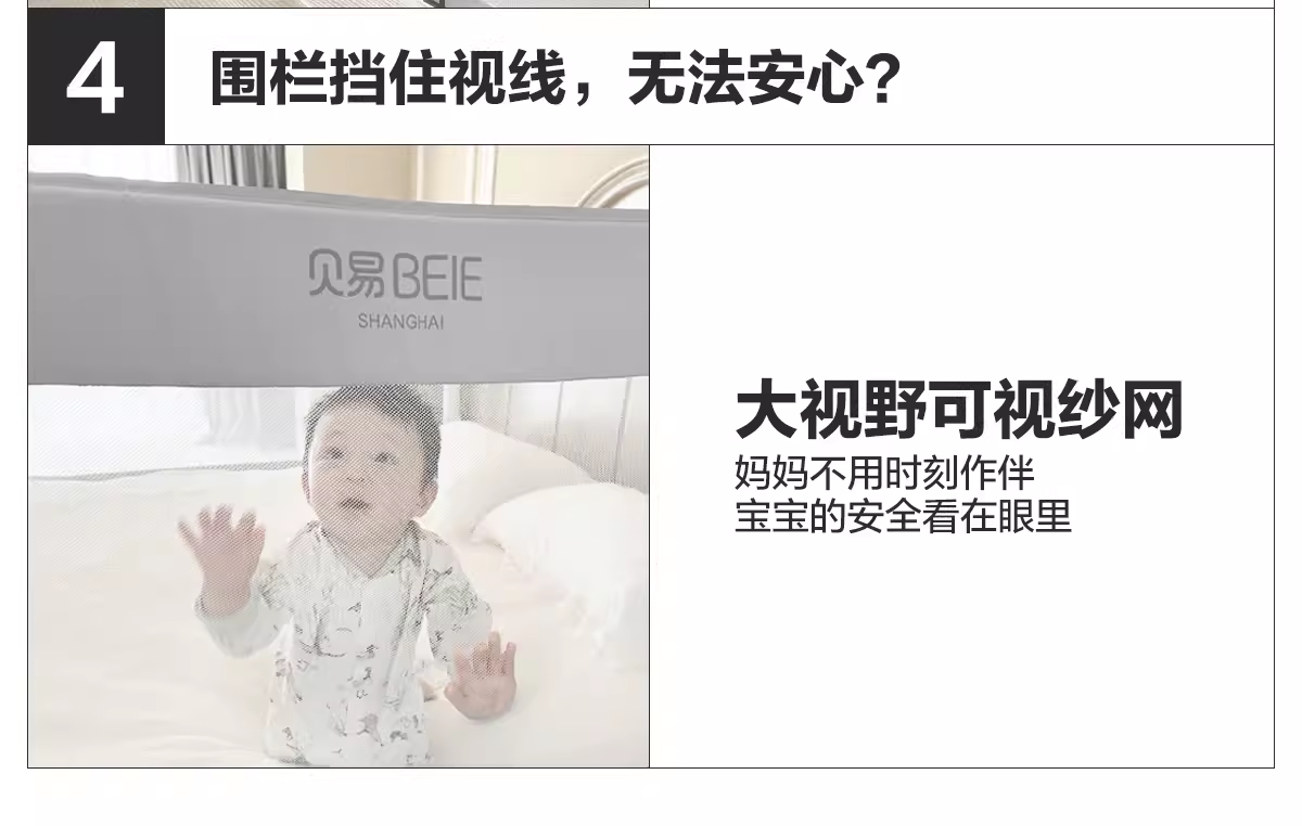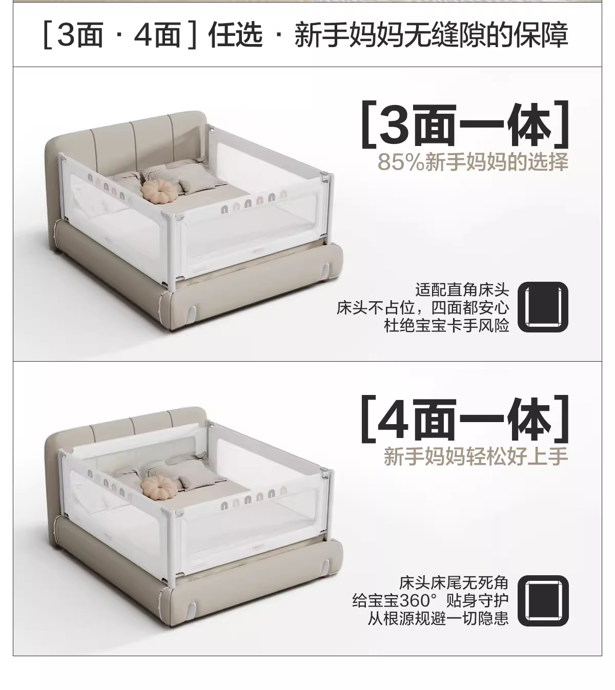 贝易床围栏宝宝防摔防护栏床边挡板婴儿防护一体床围栏床上免打孔