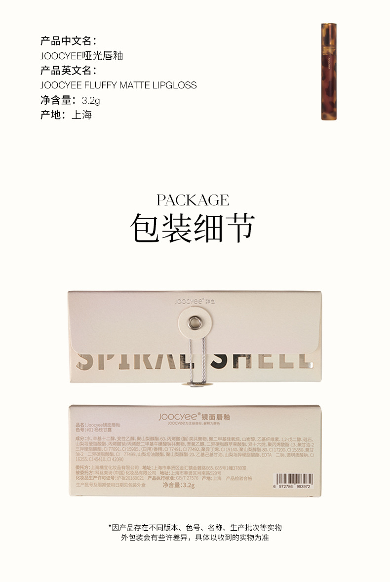 Joocyee酵色贝壳琥珀镜面唇釉哑光唇釉唇泥丝绒显白口红唇釉 心选到家