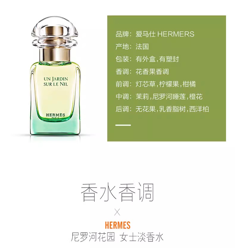 【爱马仕尼罗河香水】柔和自然清新淡雅 30ml/瓶
