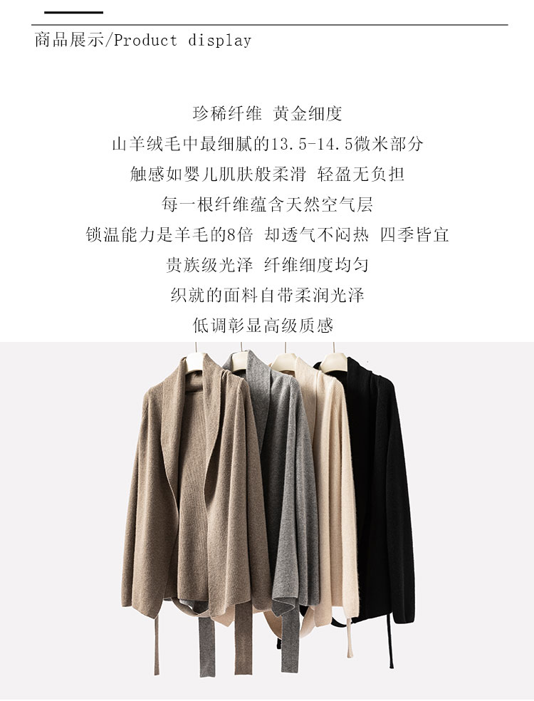 100%Baby小山羊绒~青果领加厚羊绒开衫系带外套BABY250472