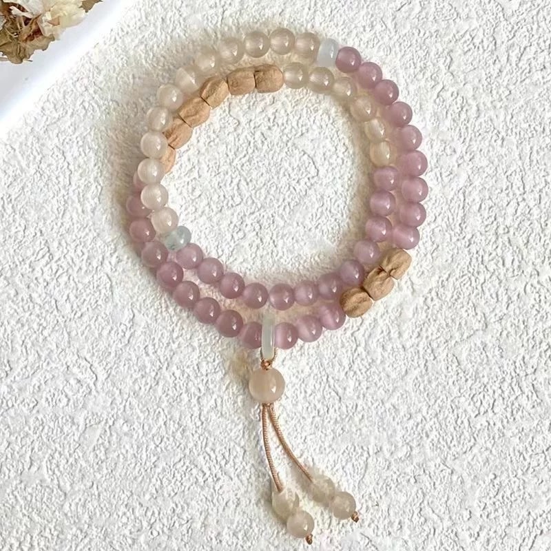 【松雾蔷薇·猫眼百香籽双圈手串】敦煌小众香槟紫猫眼百香籽手串 复古国风新中式手串双圈