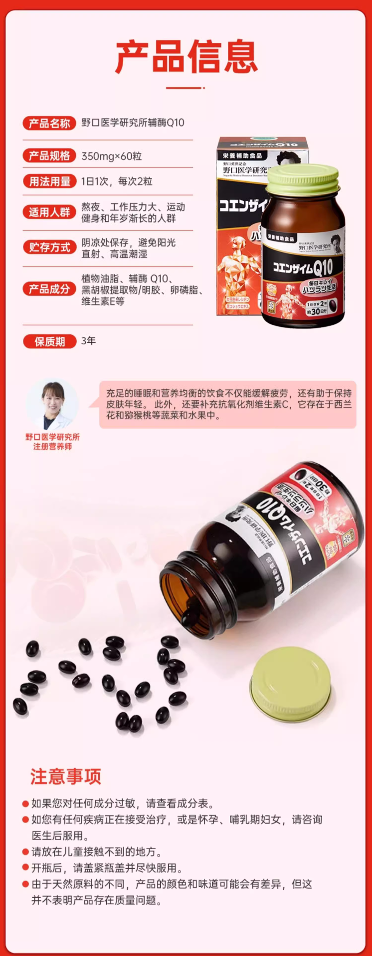 【日本直邮】Noguchi 野口医学研究所 高分散心肌辅酶Q10软胶囊 60粒