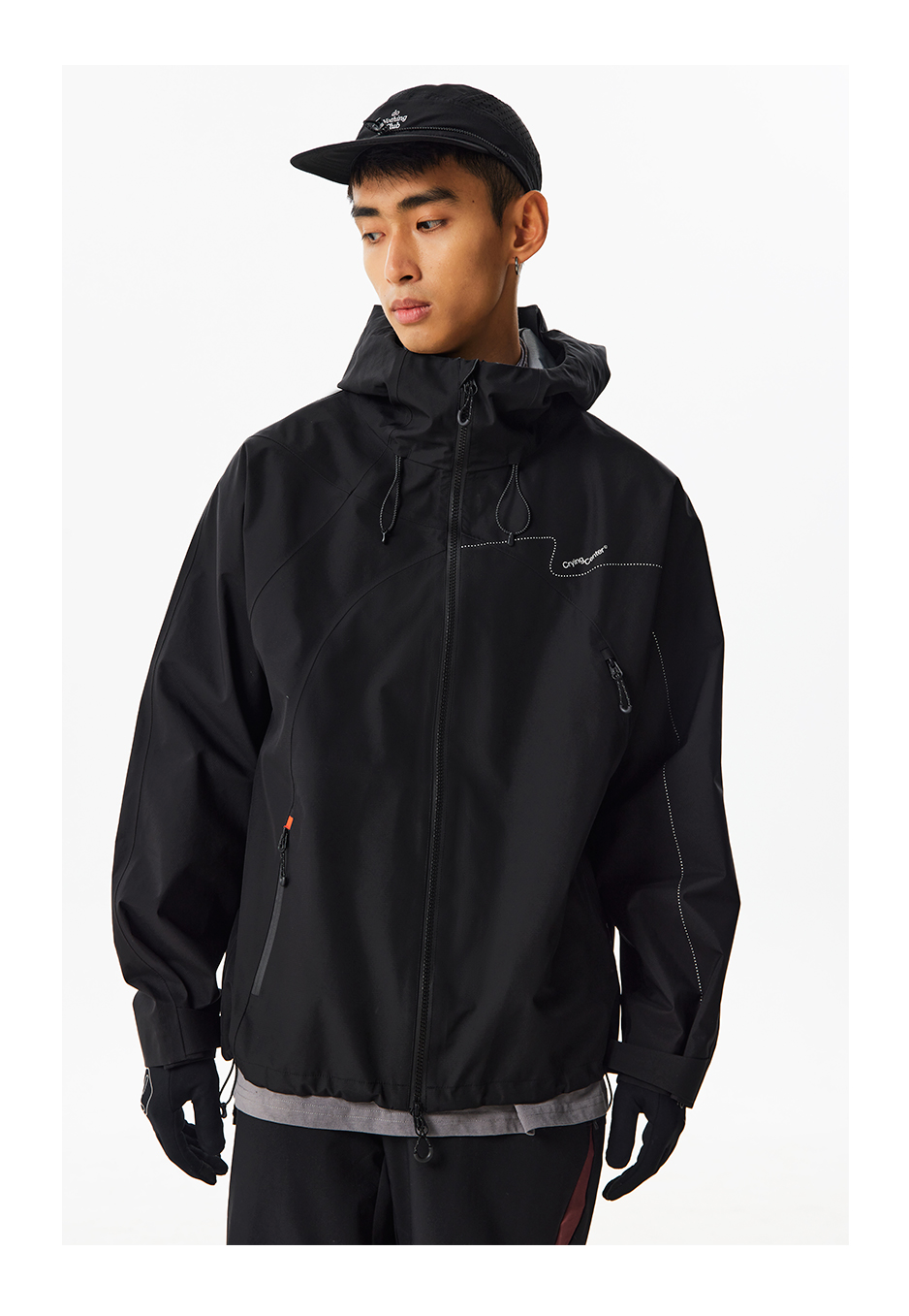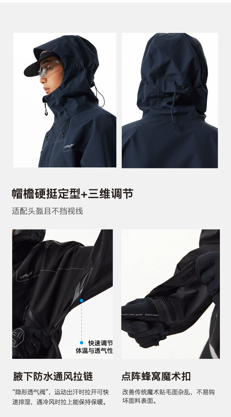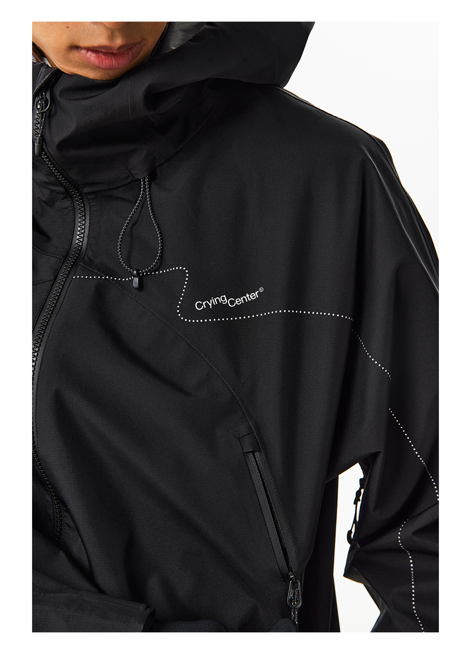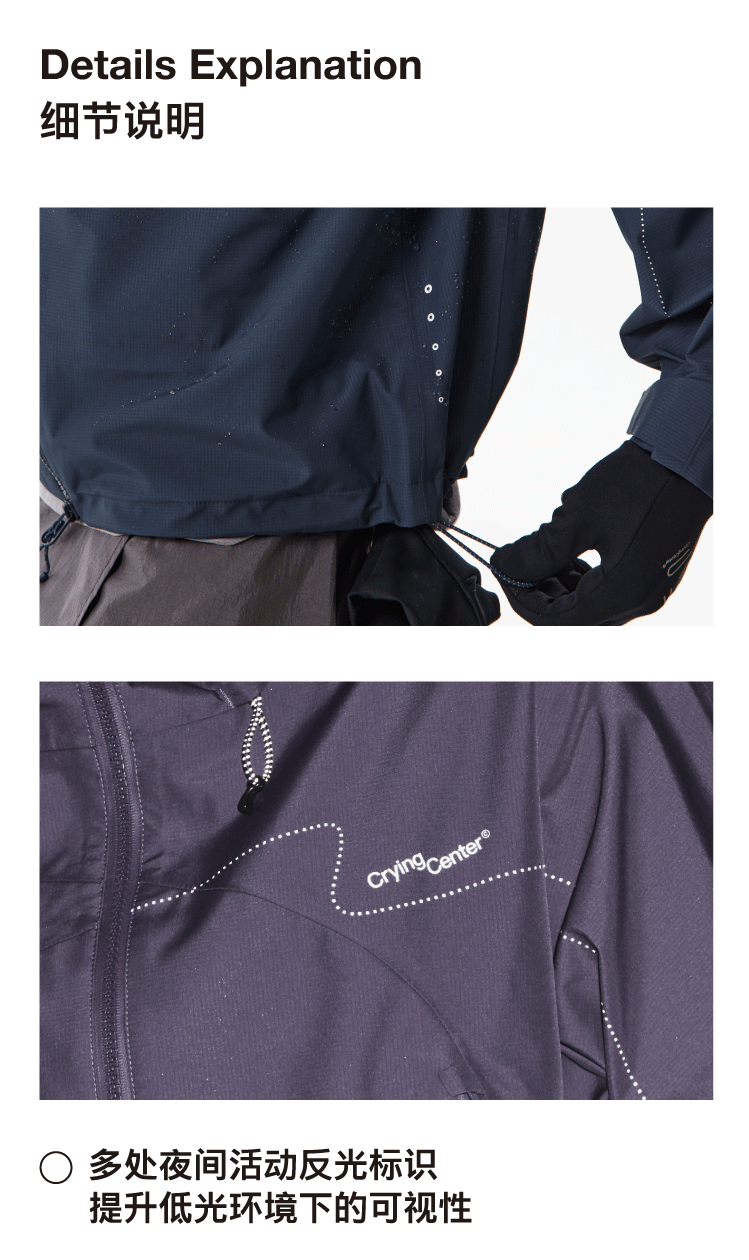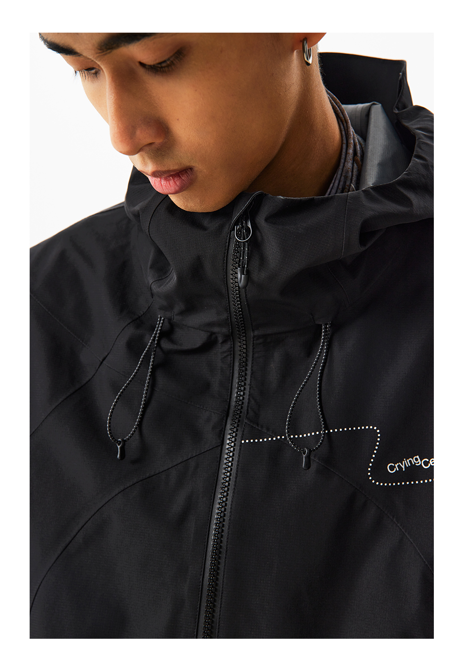 CryingCenter户外防水硬壳压胶反光冲锋衣连帽夹克外套徒步 长款