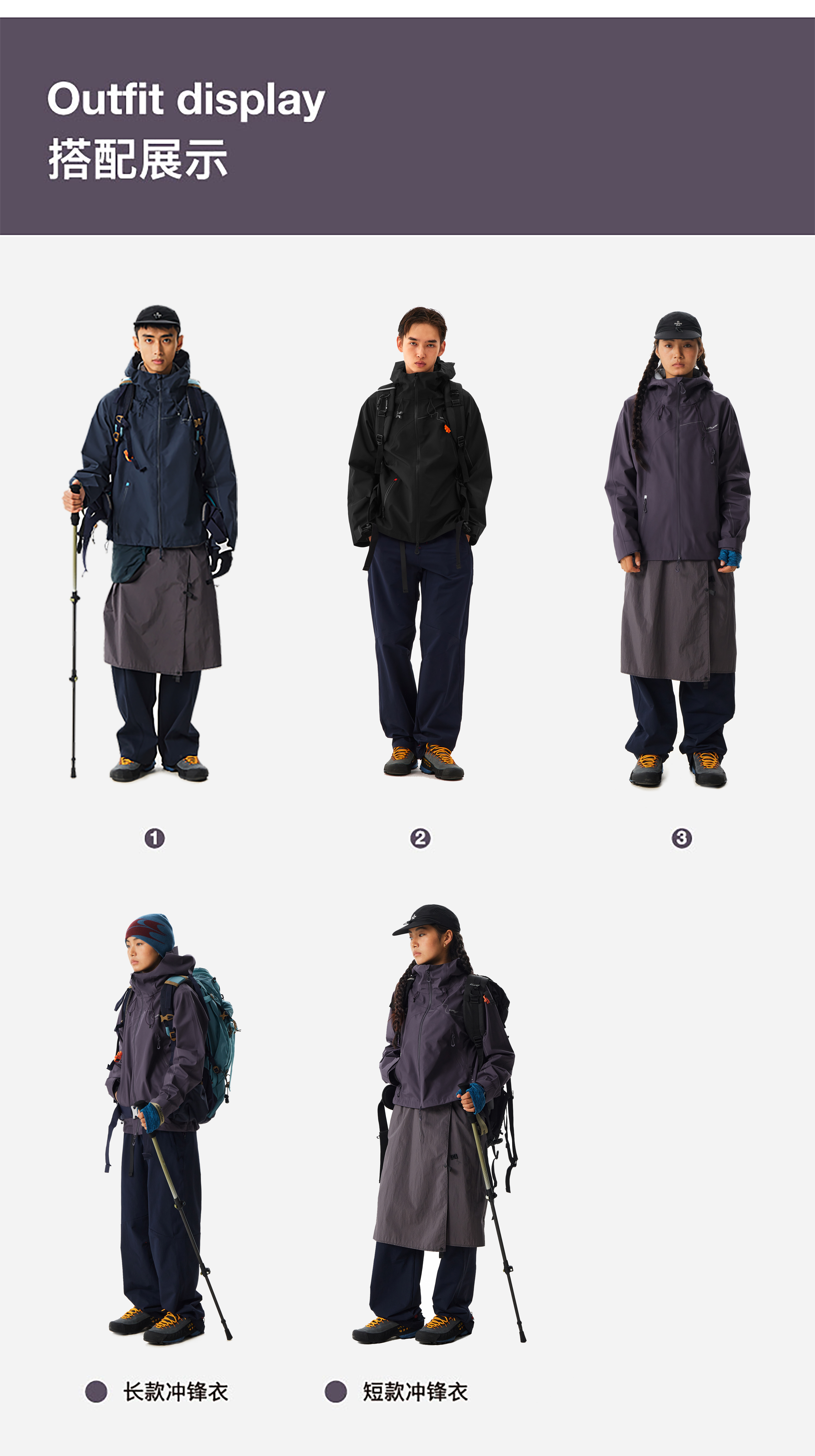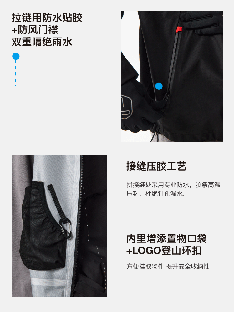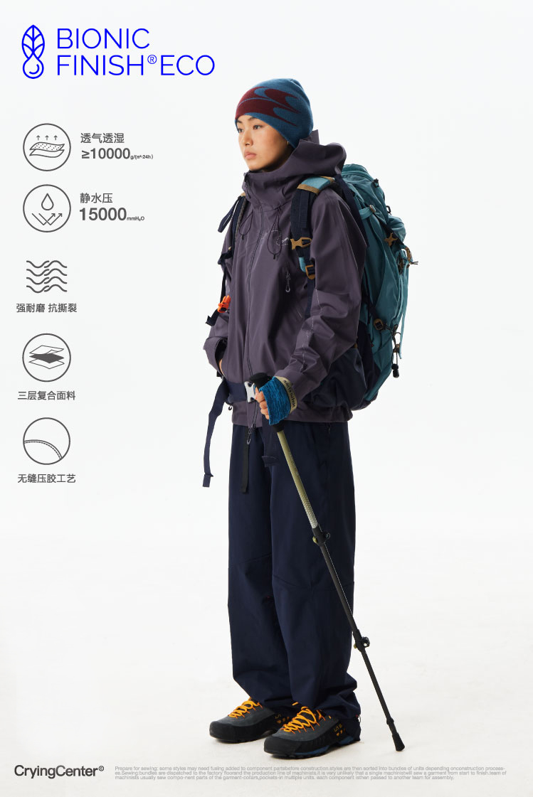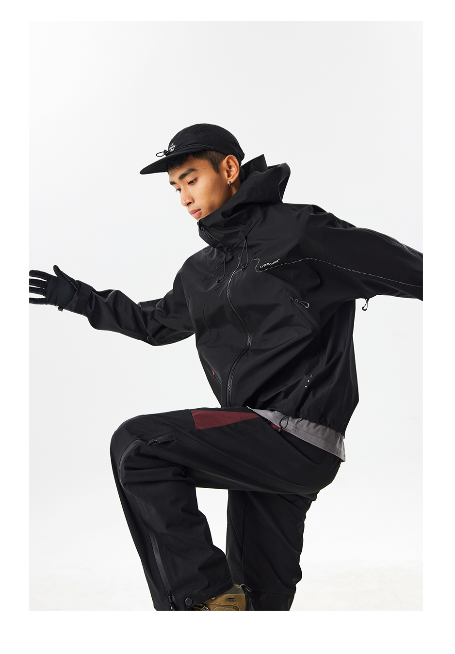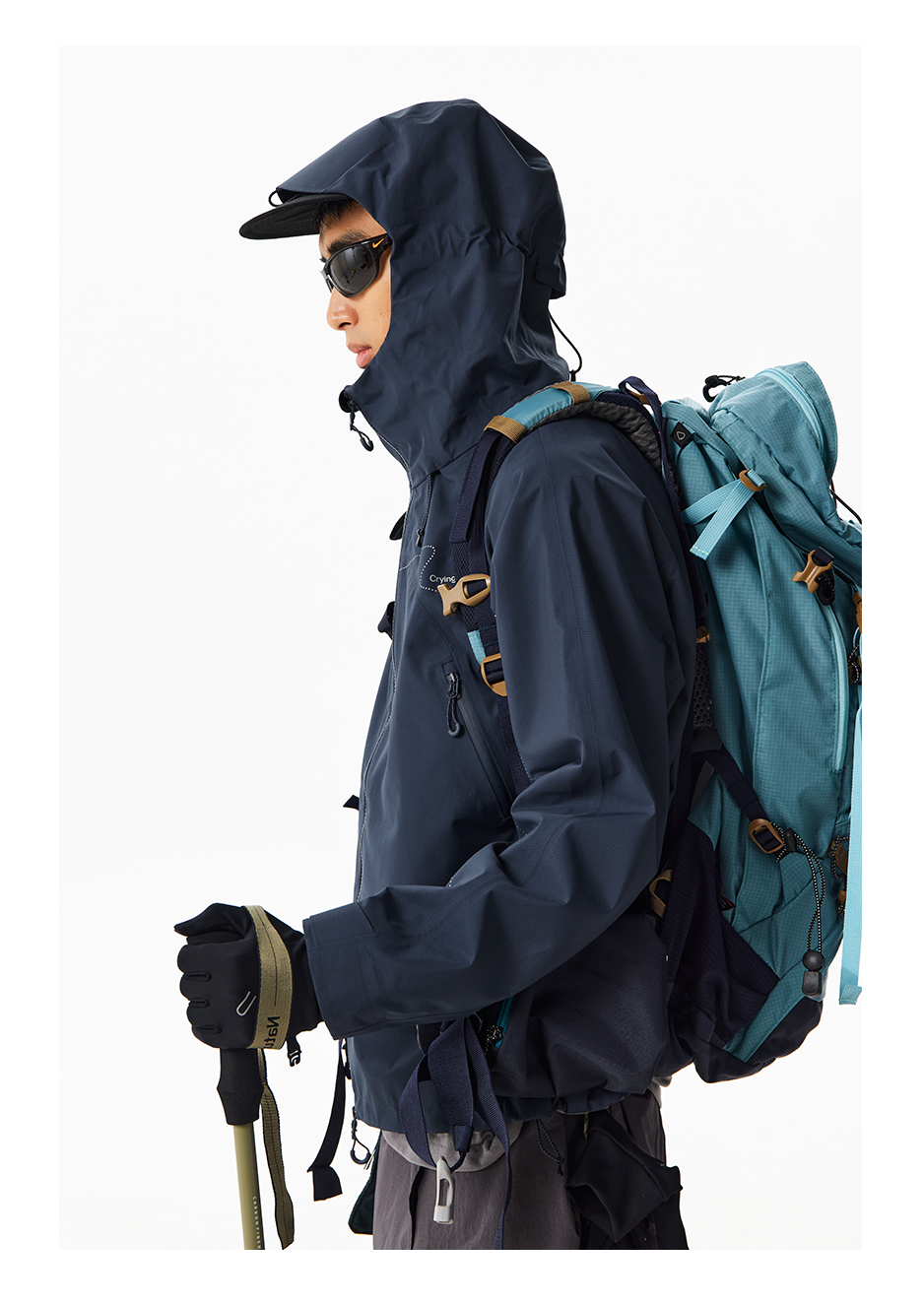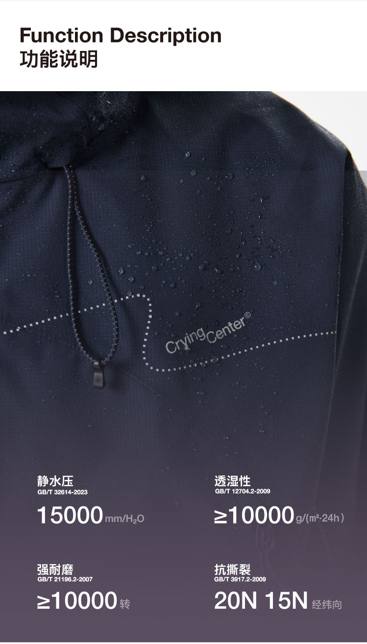 CryingCenter户外防水硬壳压胶反光冲锋衣连帽夹克外套徒步 长款